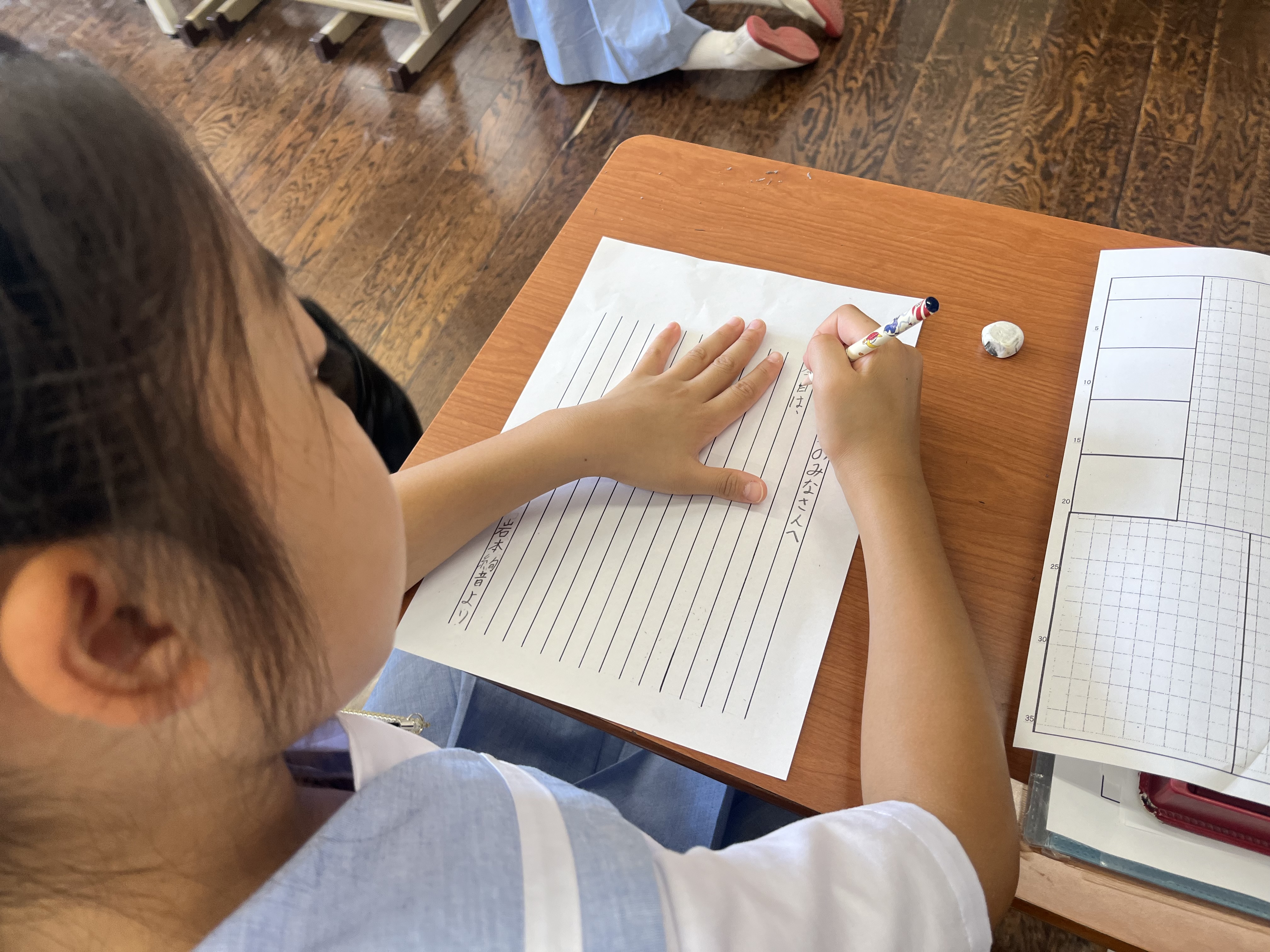 帰ってきて5時間目はふりかえりを兼ねて、東工場の方々にお手紙を書きました。またお家の方にも見ていただきます。