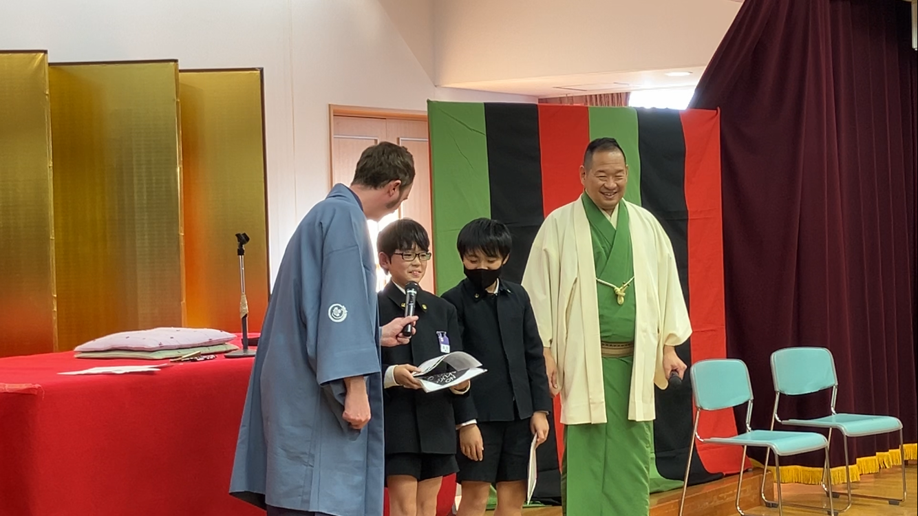 12月4日(月)、落語家の桂かい枝さんと桂福龍さんをお招きして6年生対象の英語落語鑑賞会を行いました。