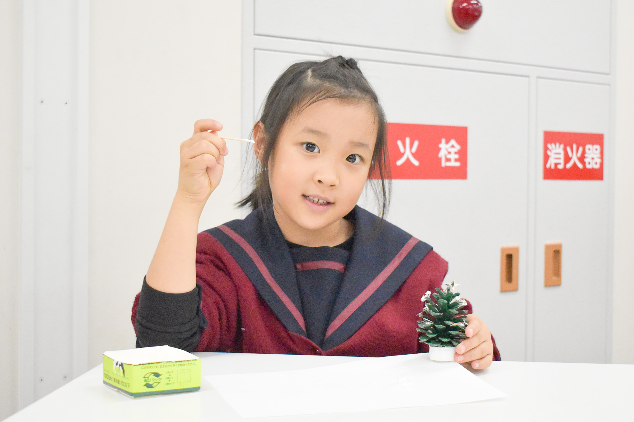 先週の工作の時間にはまつぼっくりを用いてミニクリスマスツリーを飾り付けました。