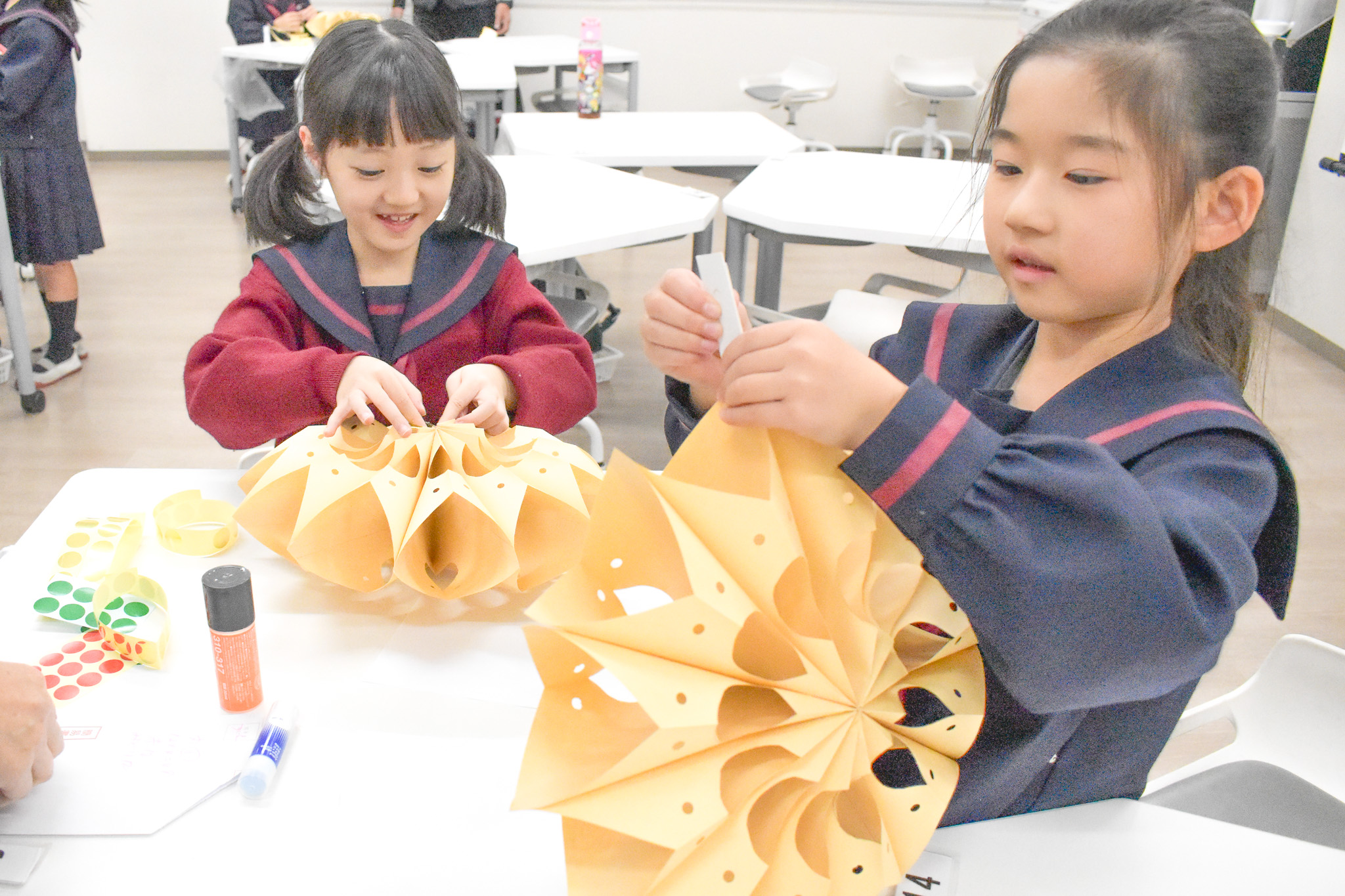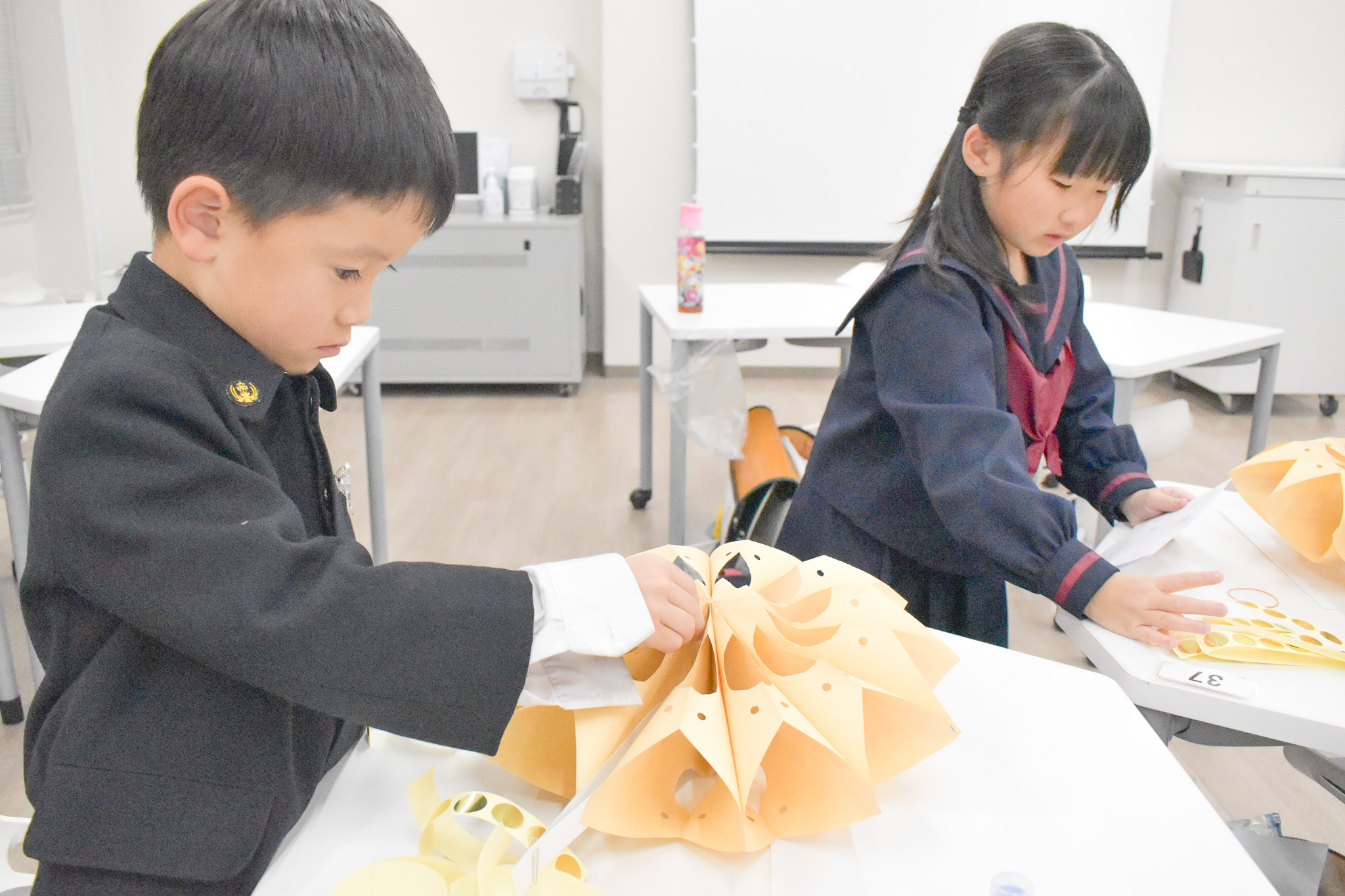 完成したリースを広げたときの子どもたちの笑顔が輝いていました。