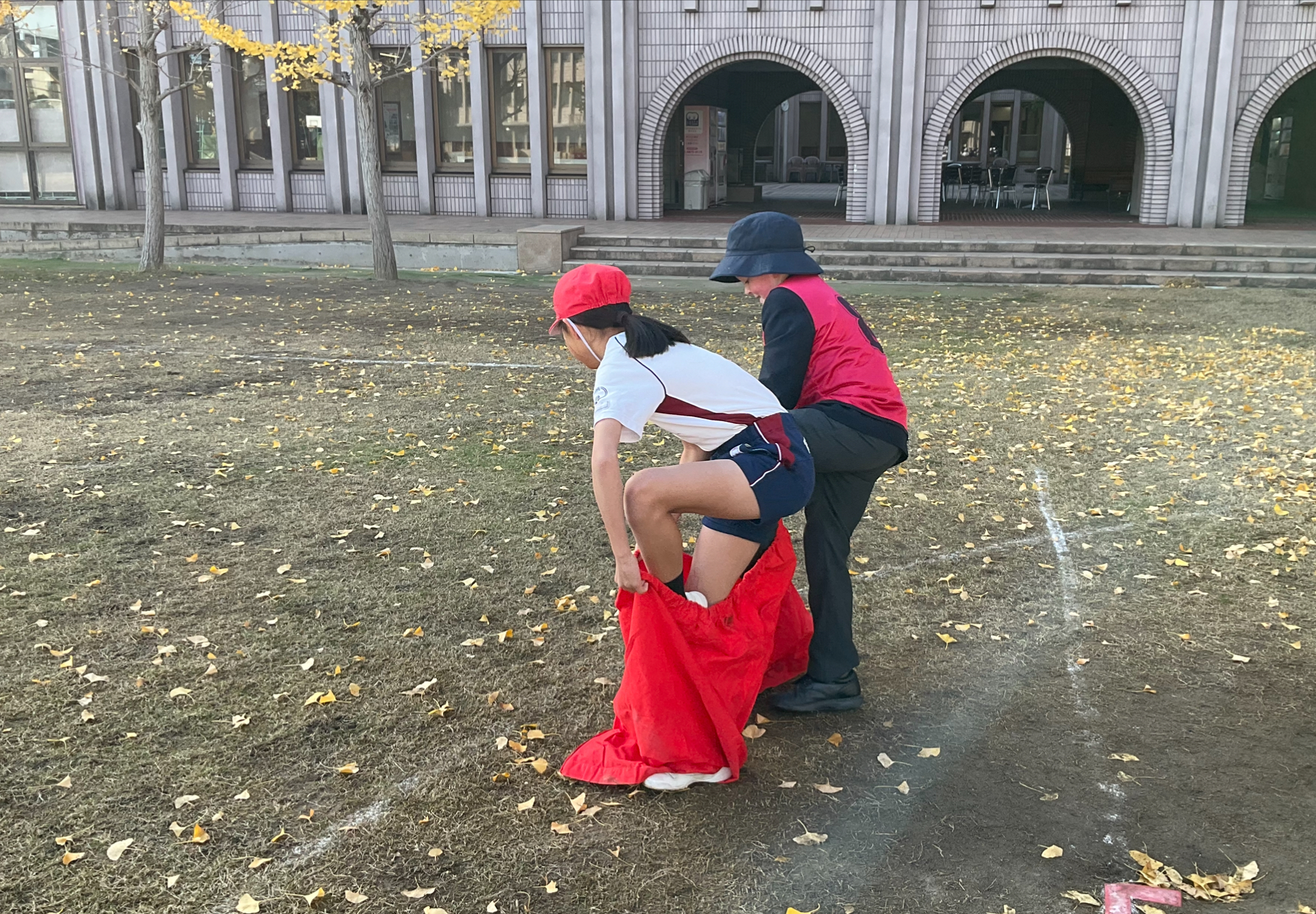 大なわとび、玉入れ、台風の目、デカパンリレー。どの種目も全力で楽しみました。