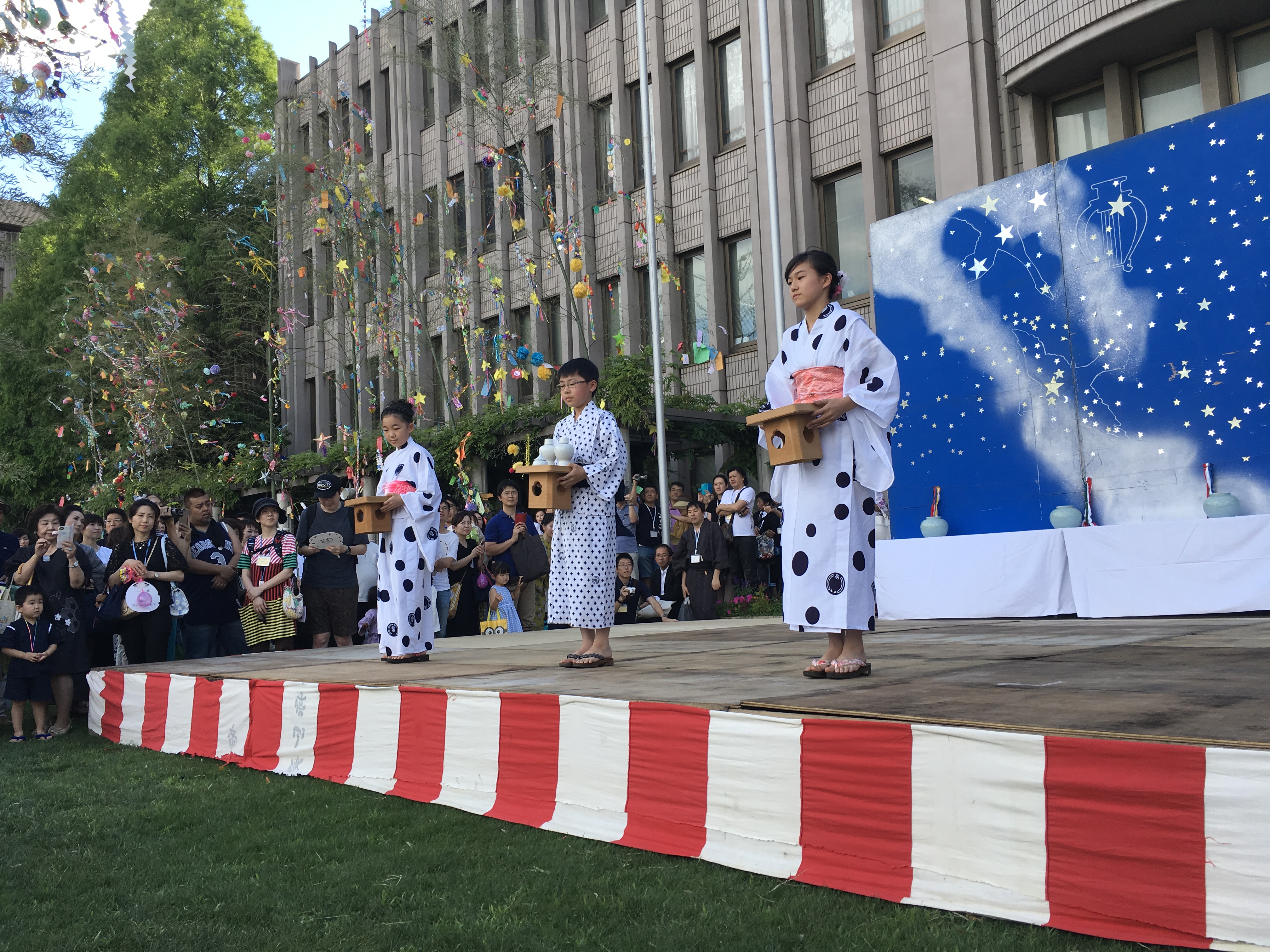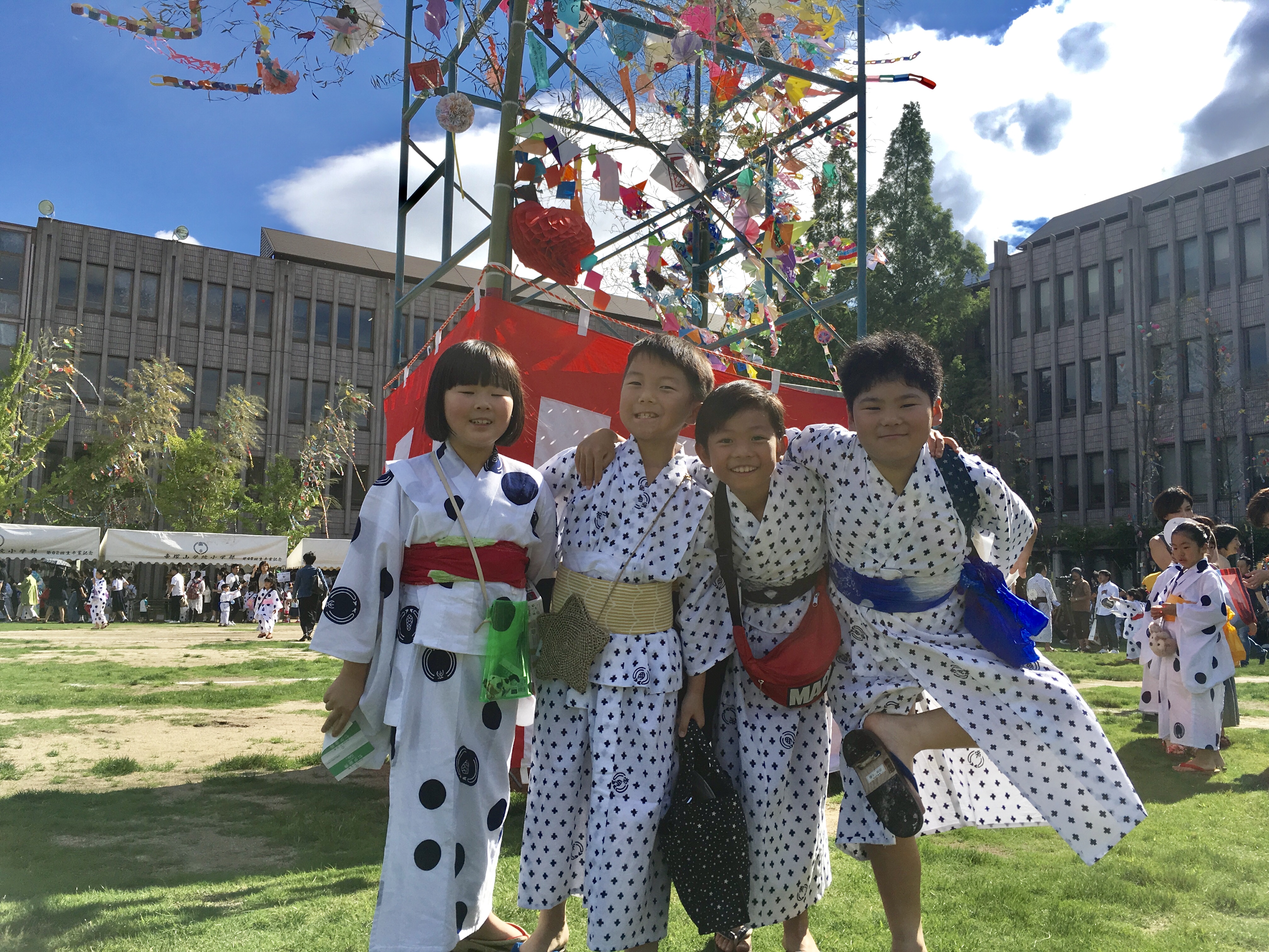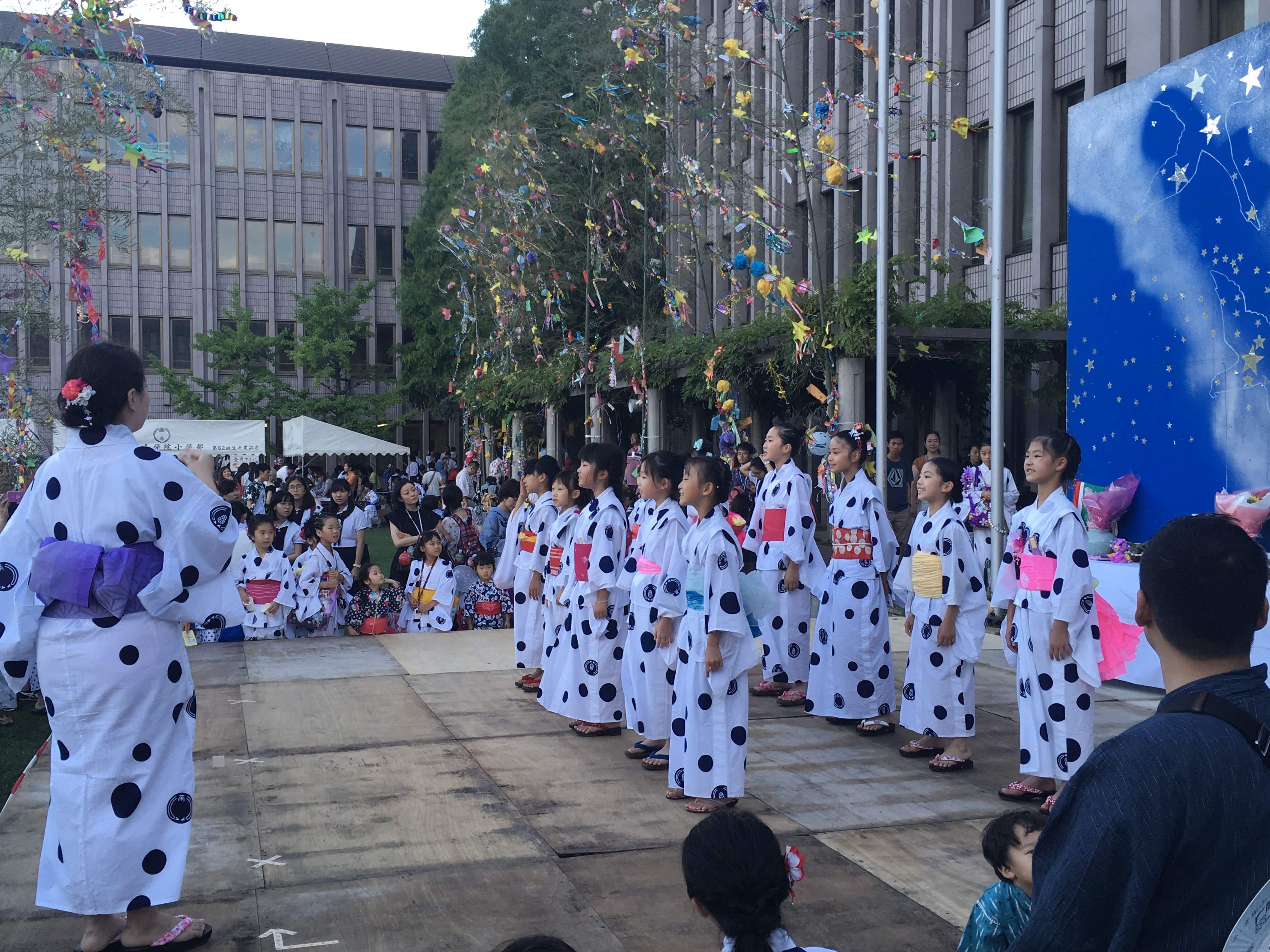その後の、七夕おどりでは、教員・児童が揃いの浴衣で学院音頭・七夕音頭を踊りました。