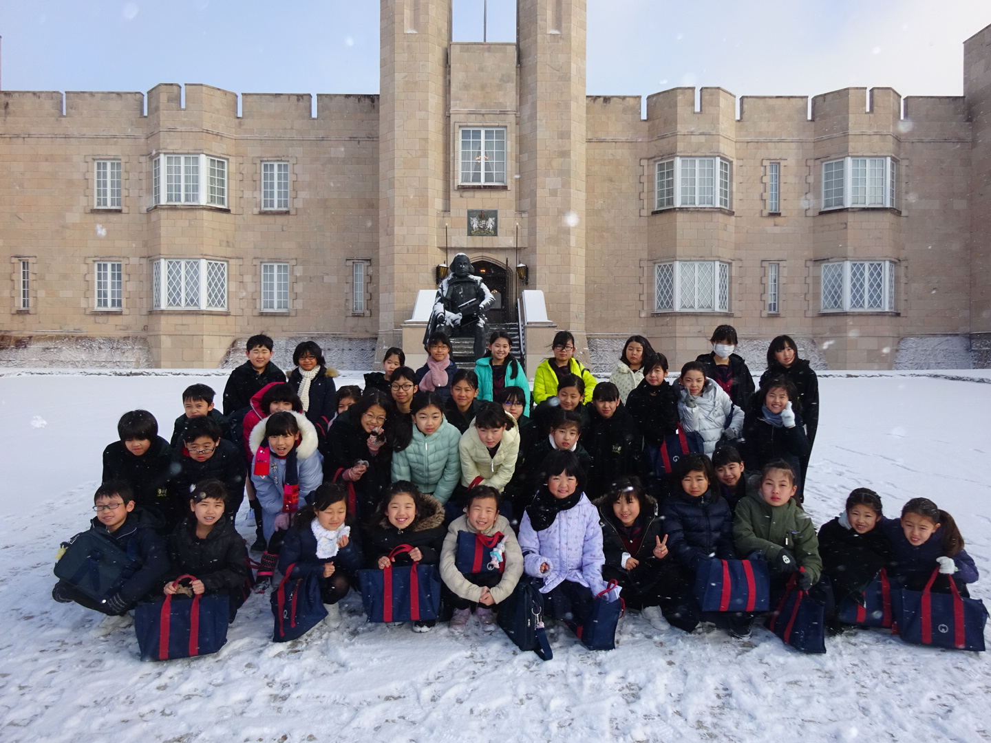 一晩の間に雪が降り積もり、今朝は目を覚ますと辺り一面の雪化粧に児童たちは驚きながらも、嬉しそうでした。積雪はわずかなので、雪遊びをするほどではなさそうですが、大阪では見られない景色を楽しんでいます。