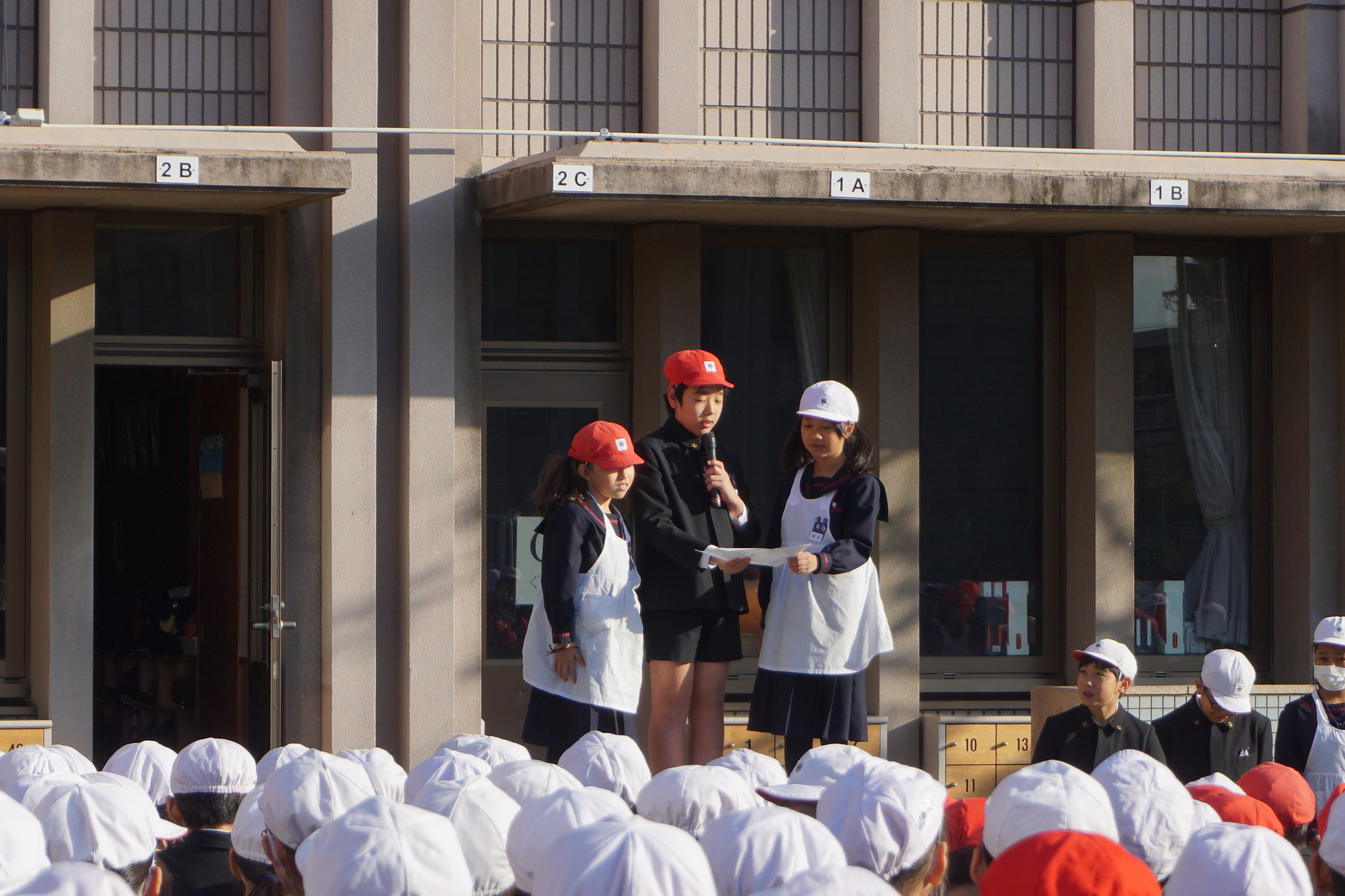 子ども達には「学院小学校のお友だちを増やそう」というテーマで近くの人と手遊びをしたり、歌ったりしました。