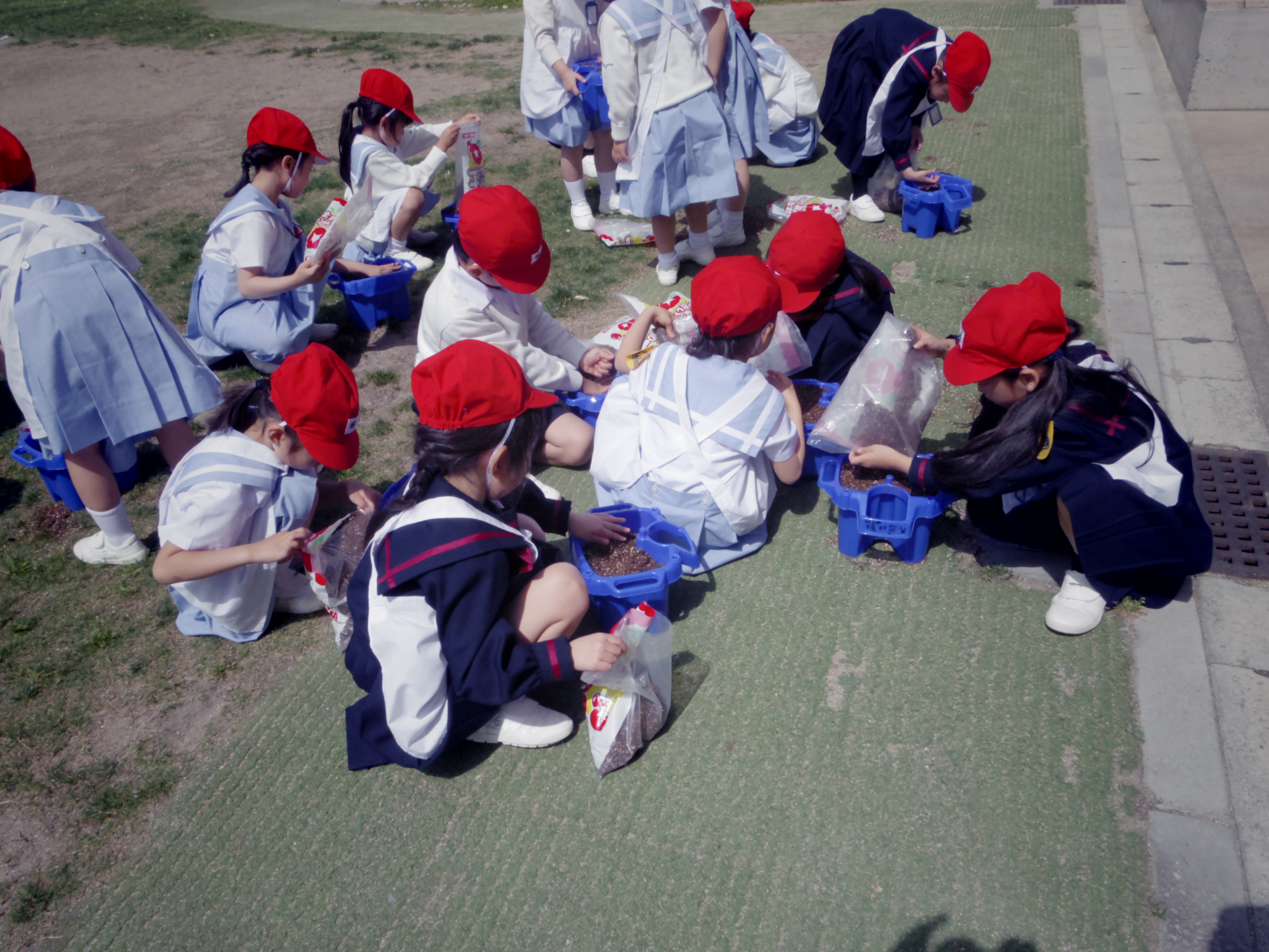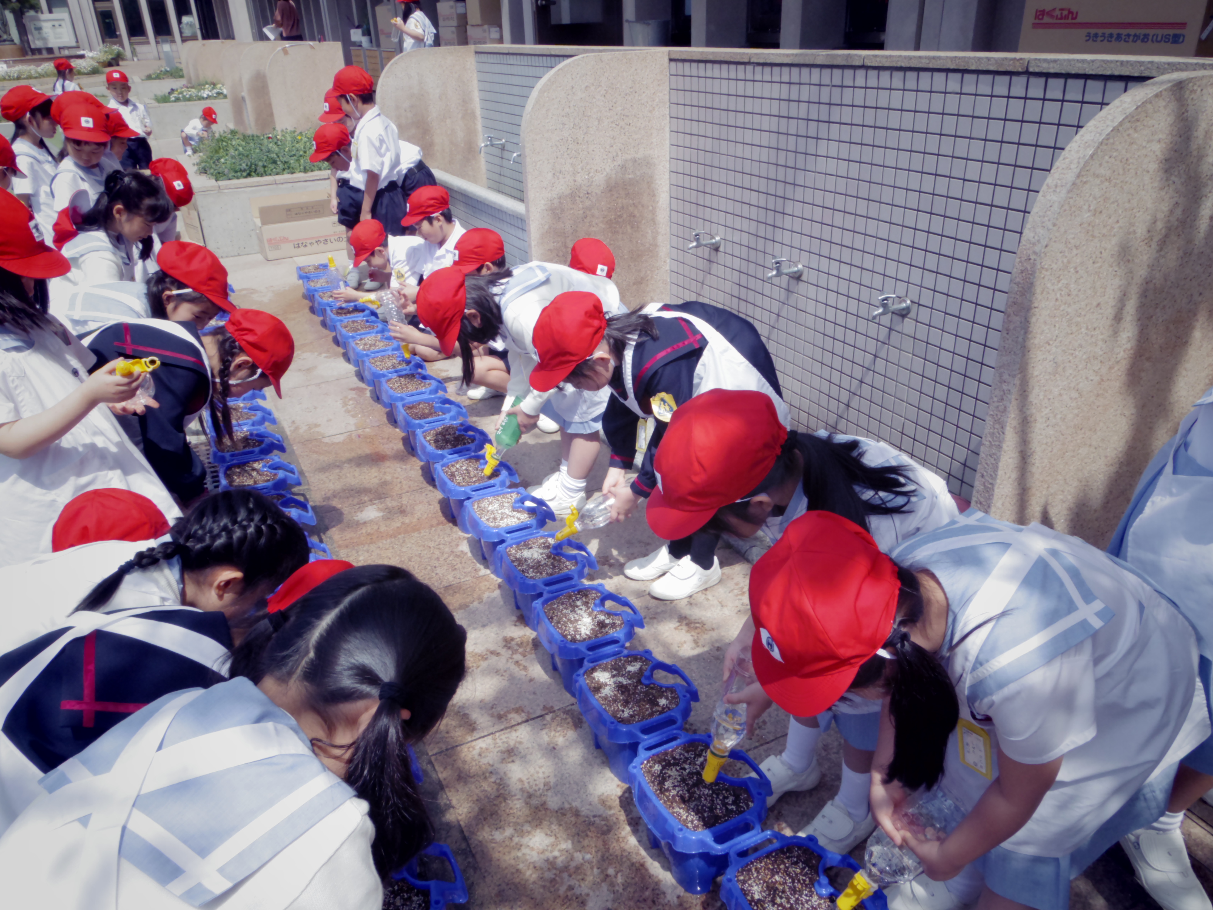子どもたちは「おおきくなーれ、きれいなお花咲いてね」と目を輝かせながら活動していました。