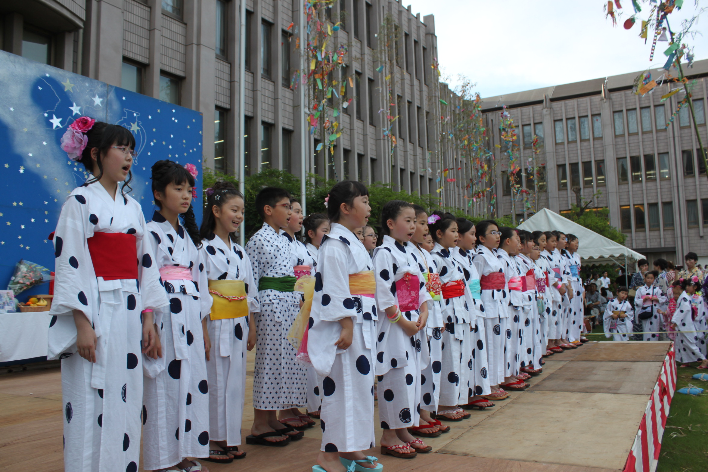 その後の、七夕おどりでは、教員・児童が揃いの浴衣で学院音頭・七夕音頭を踊りました。