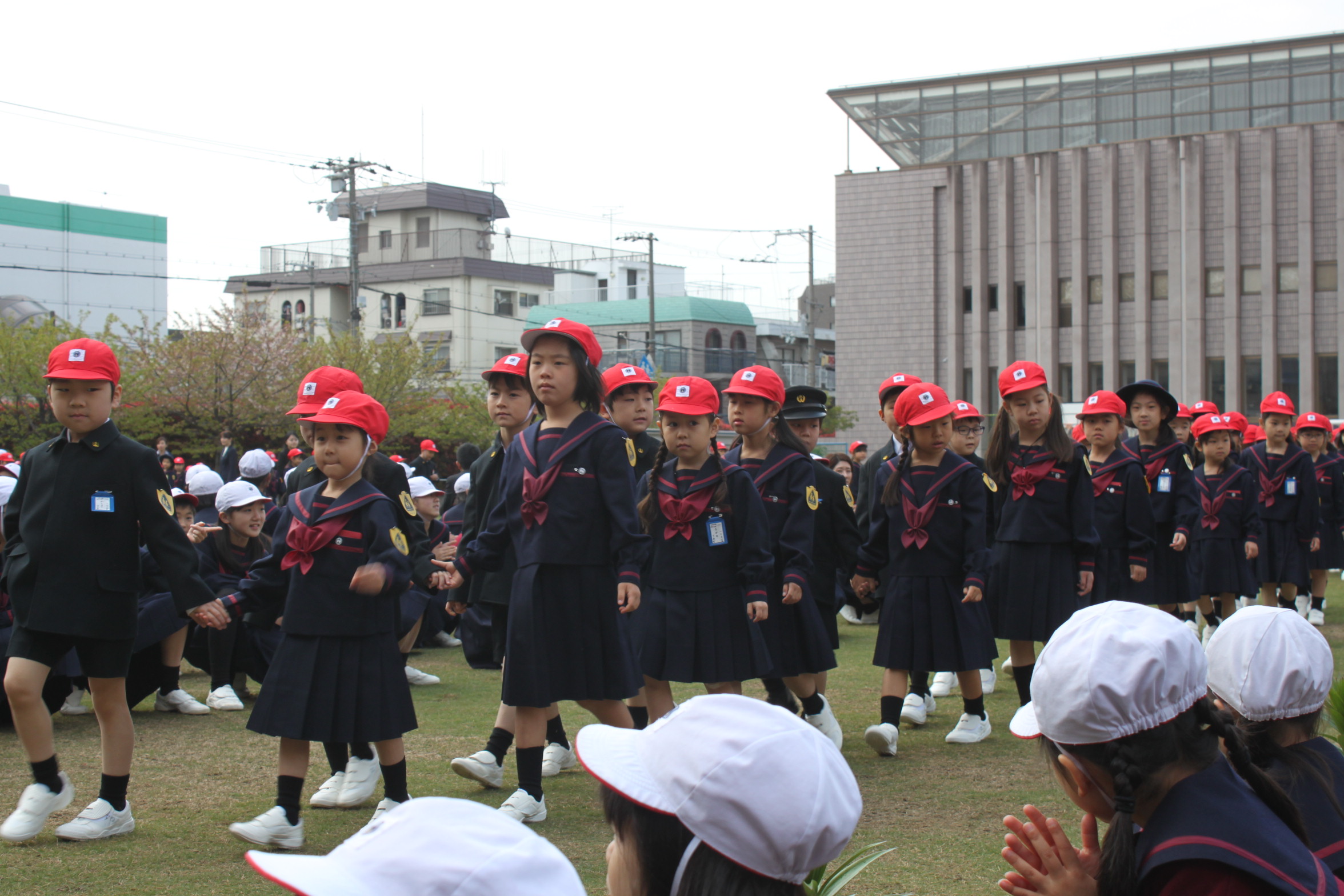 始業式では、みんなの元気な挨拶が運動場に響き渡りました。