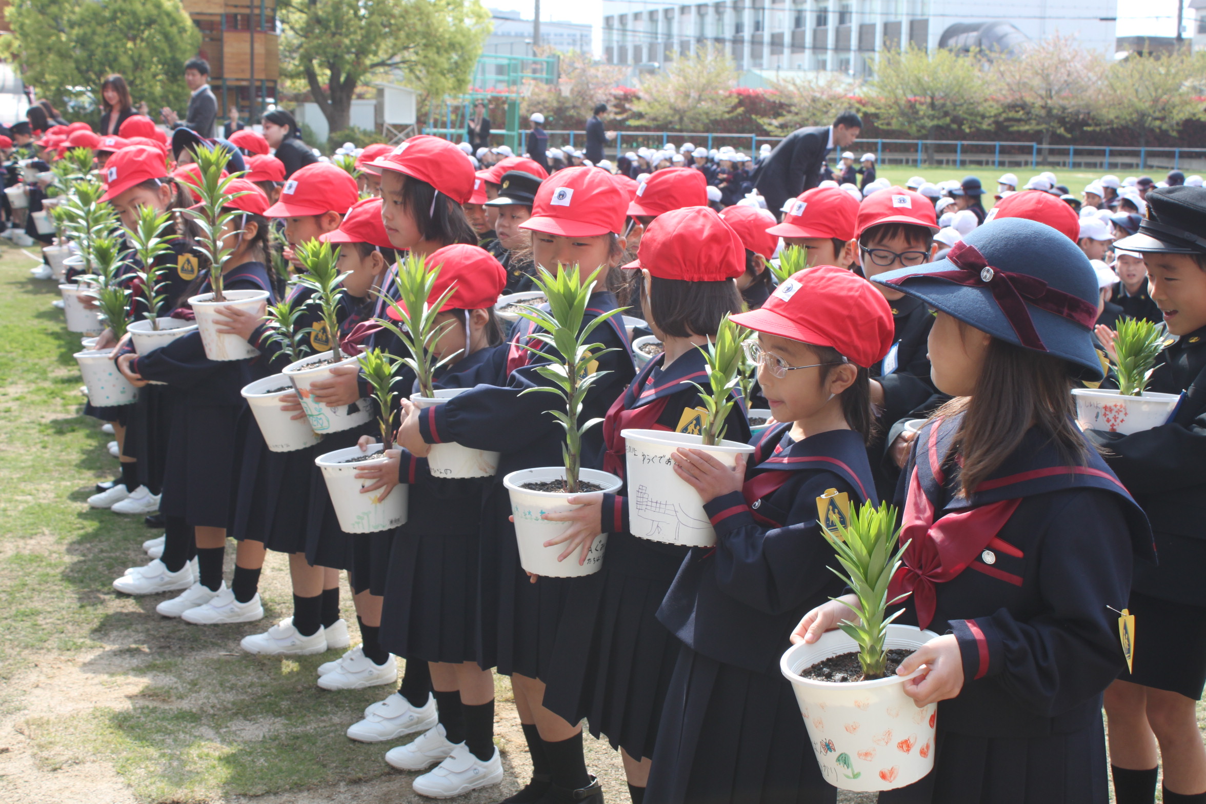 ユリの鉢をもらった新入生は、少し照れていましたが、喜んでいました。