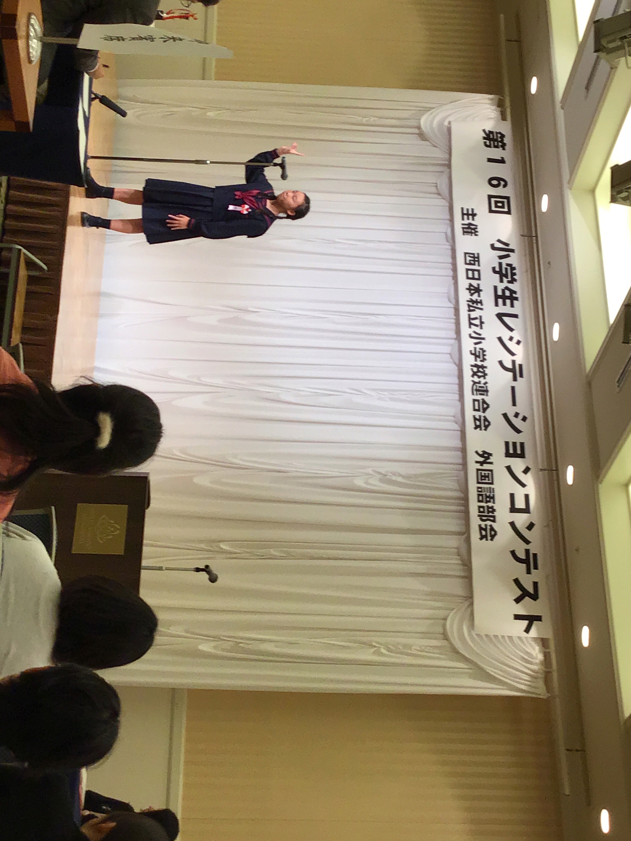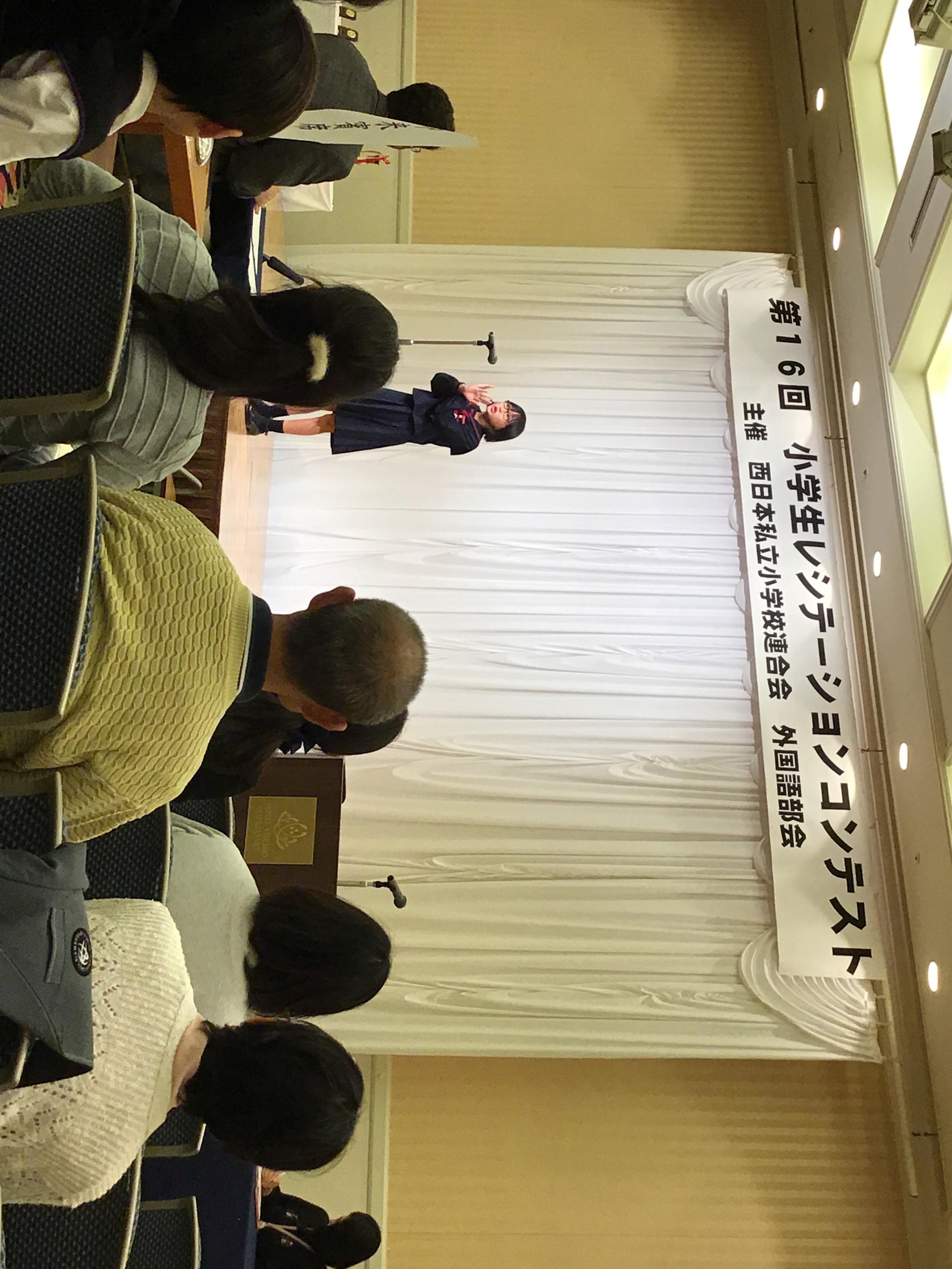 本日、西日本私小連主催の英語レシテーションコンテストが行われました。 本校からは校内コンテストの入賞者2名が出場し、うち1名が3位に入賞しました。