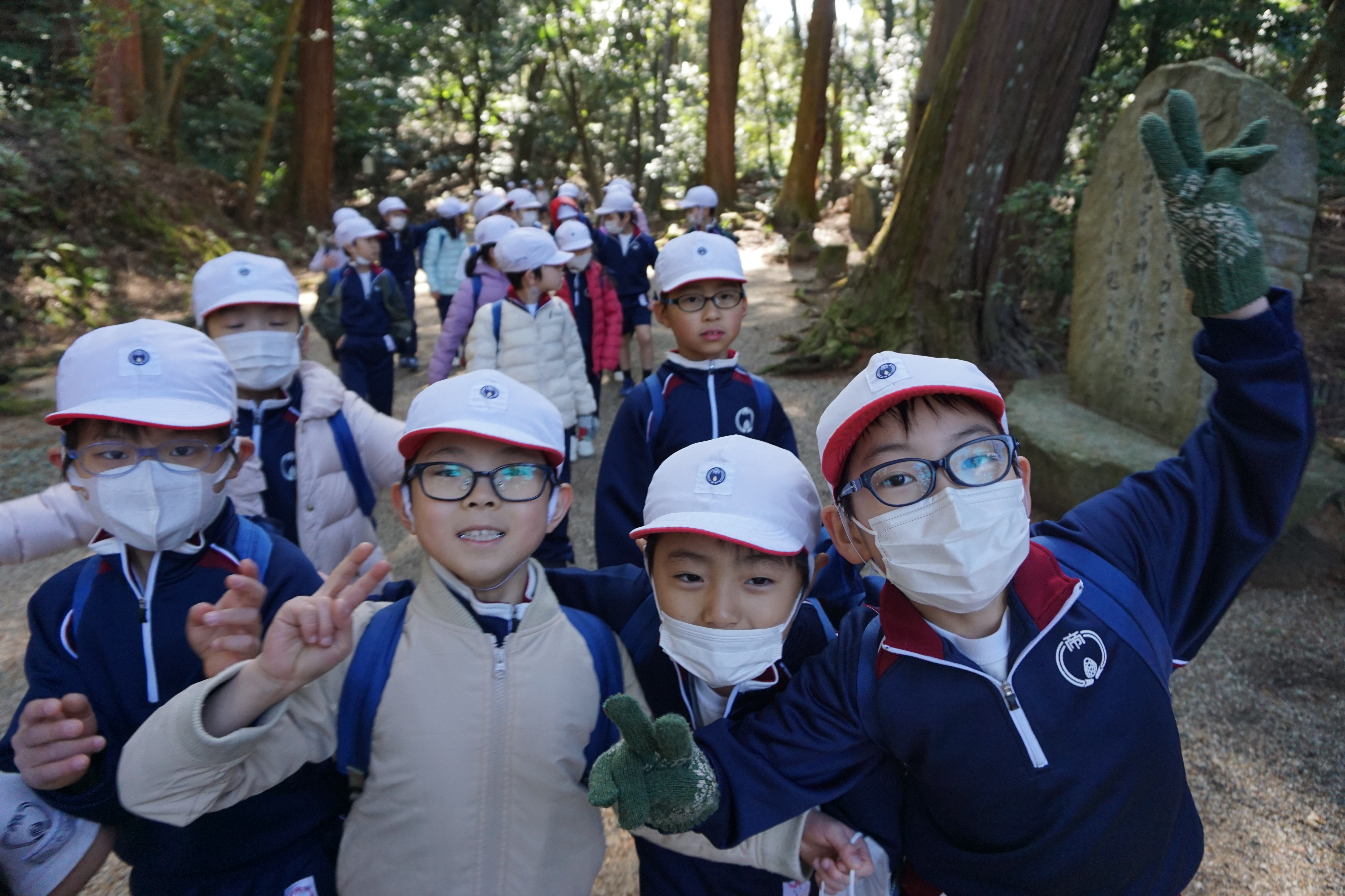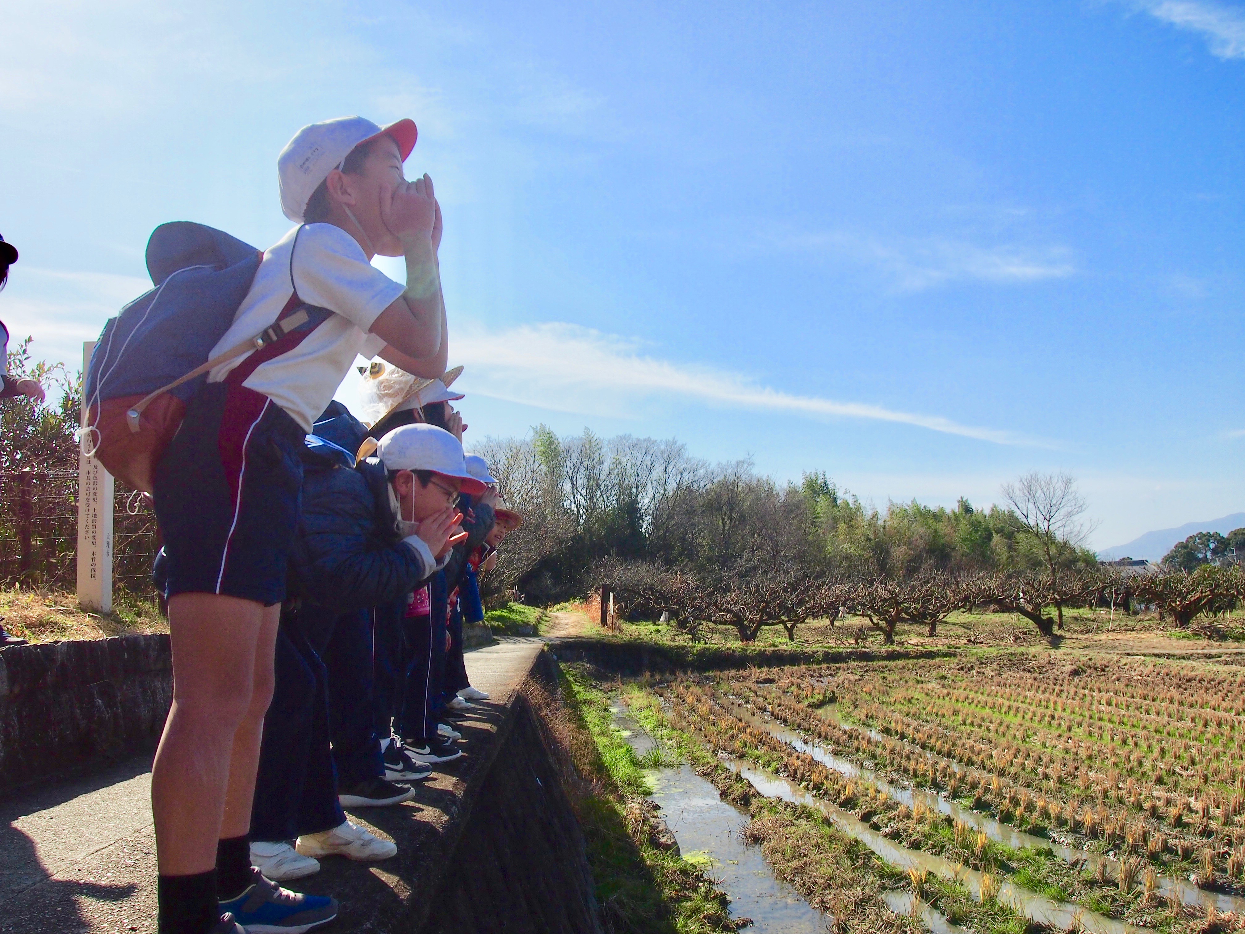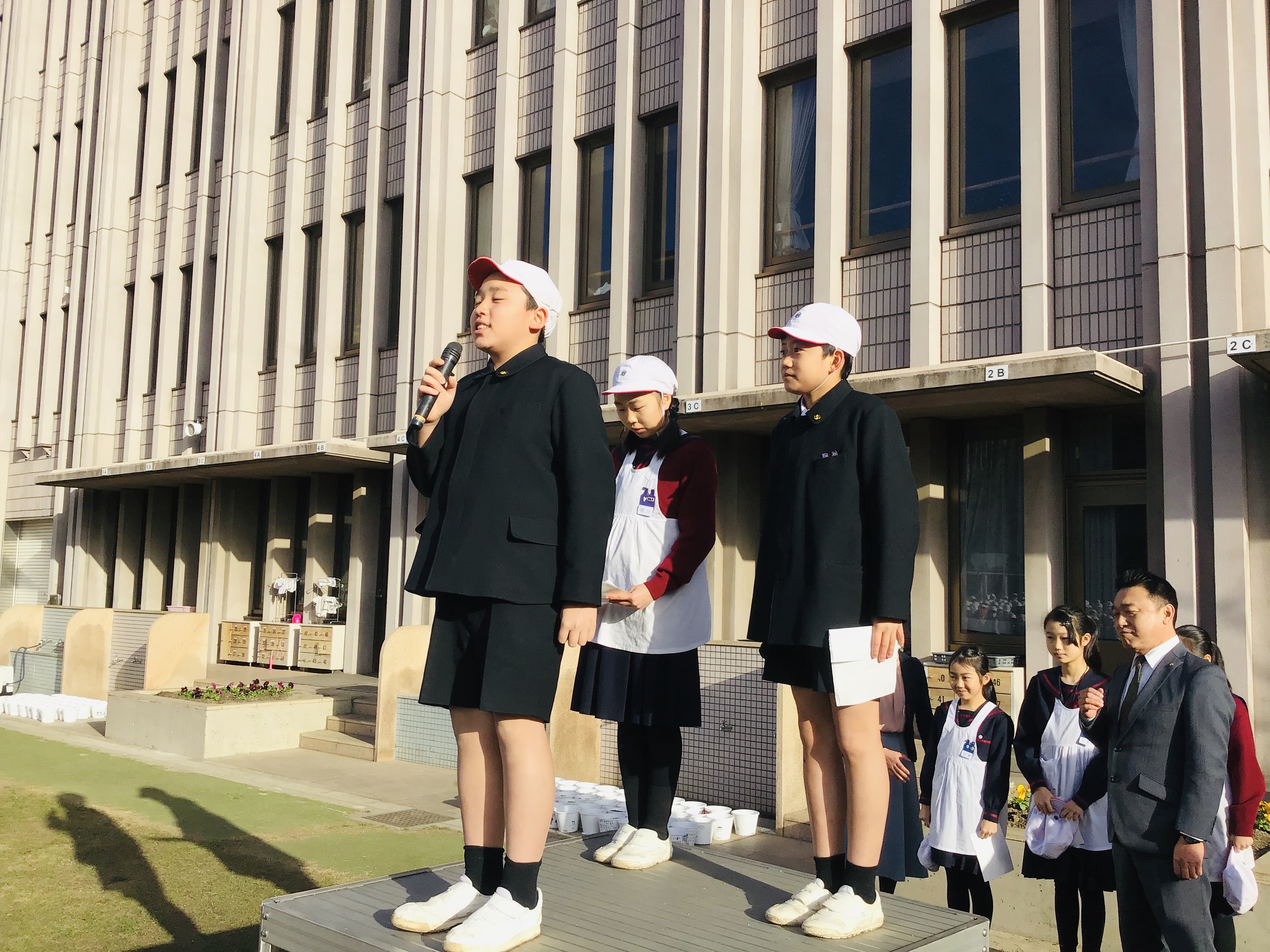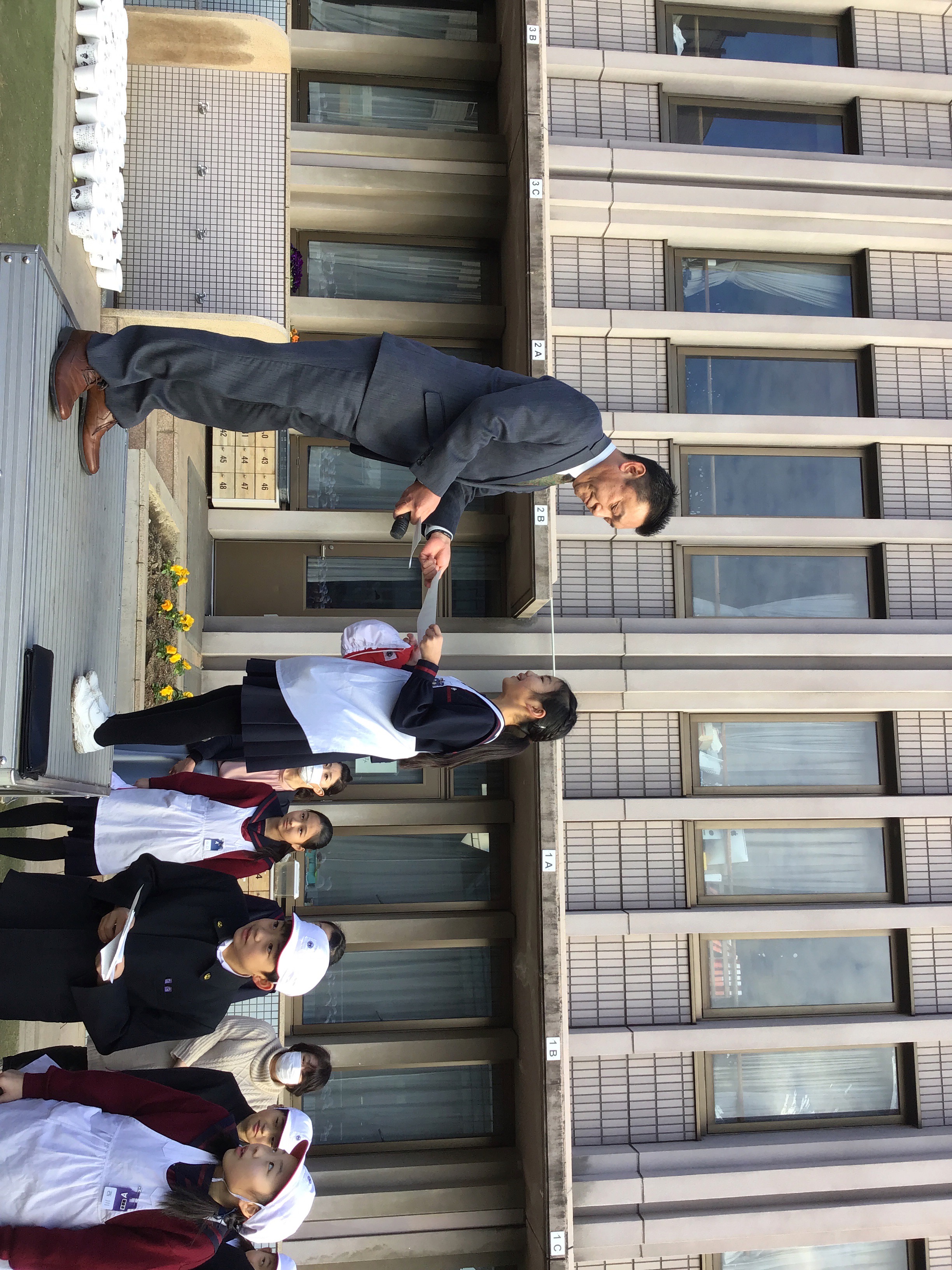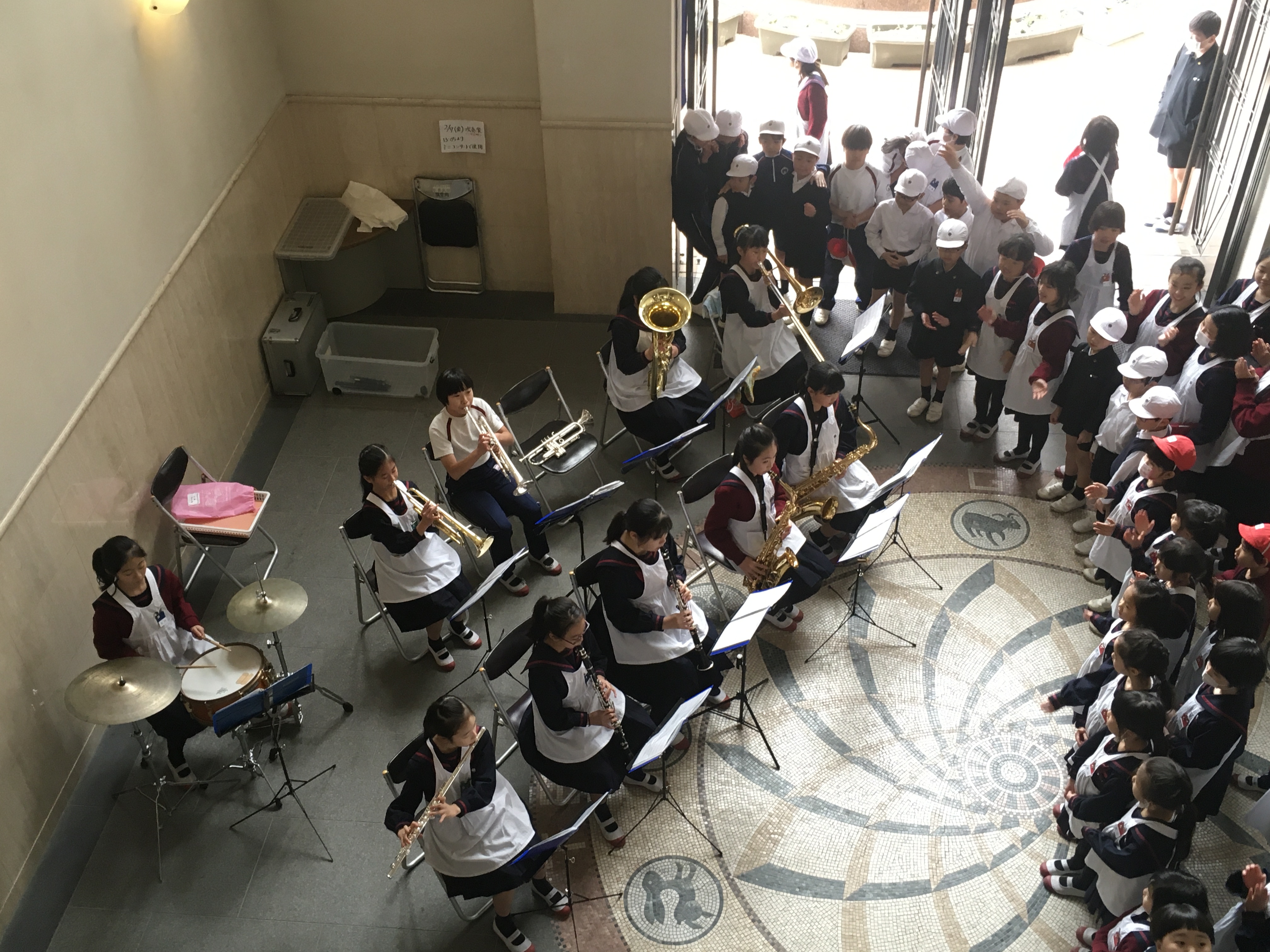 低学年の児童たちは早くから正門に集まり、演奏が始まるのを楽しみに待ってくれていました。そして演奏の開始とともに音色につられて、たくさんの児童や教員が集まってくれました。