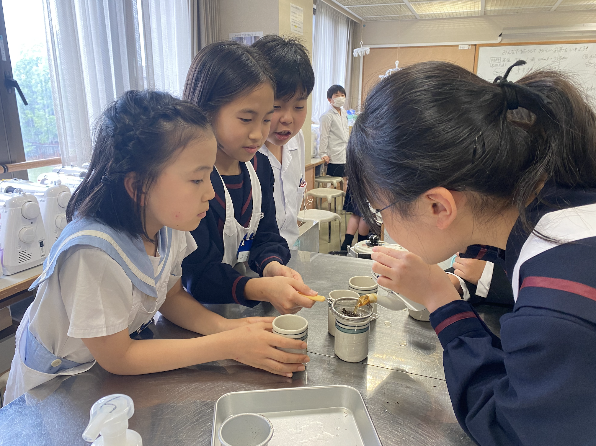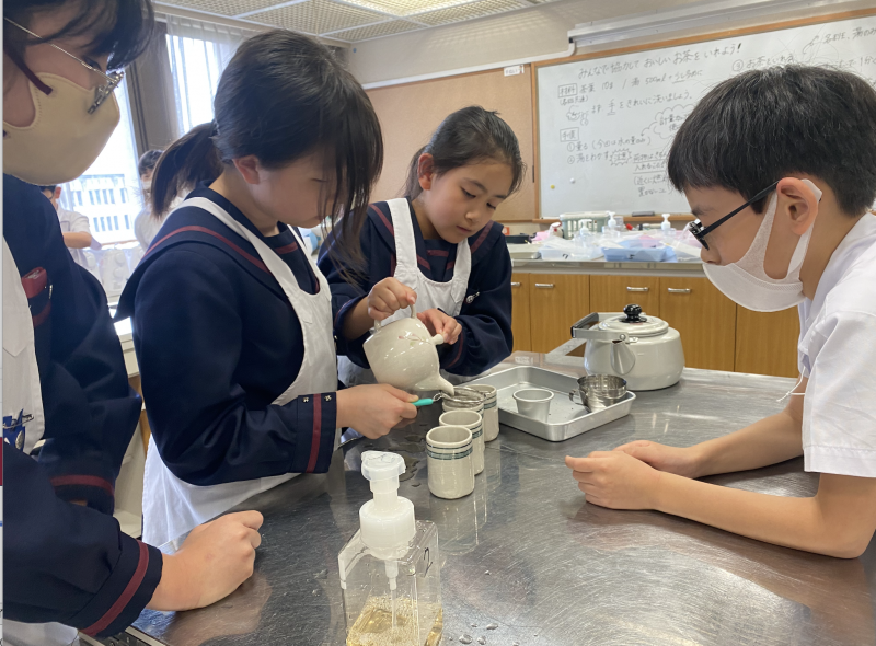 5年生から始まった家庭科。今日は家庭科室で、お茶を淹れました。