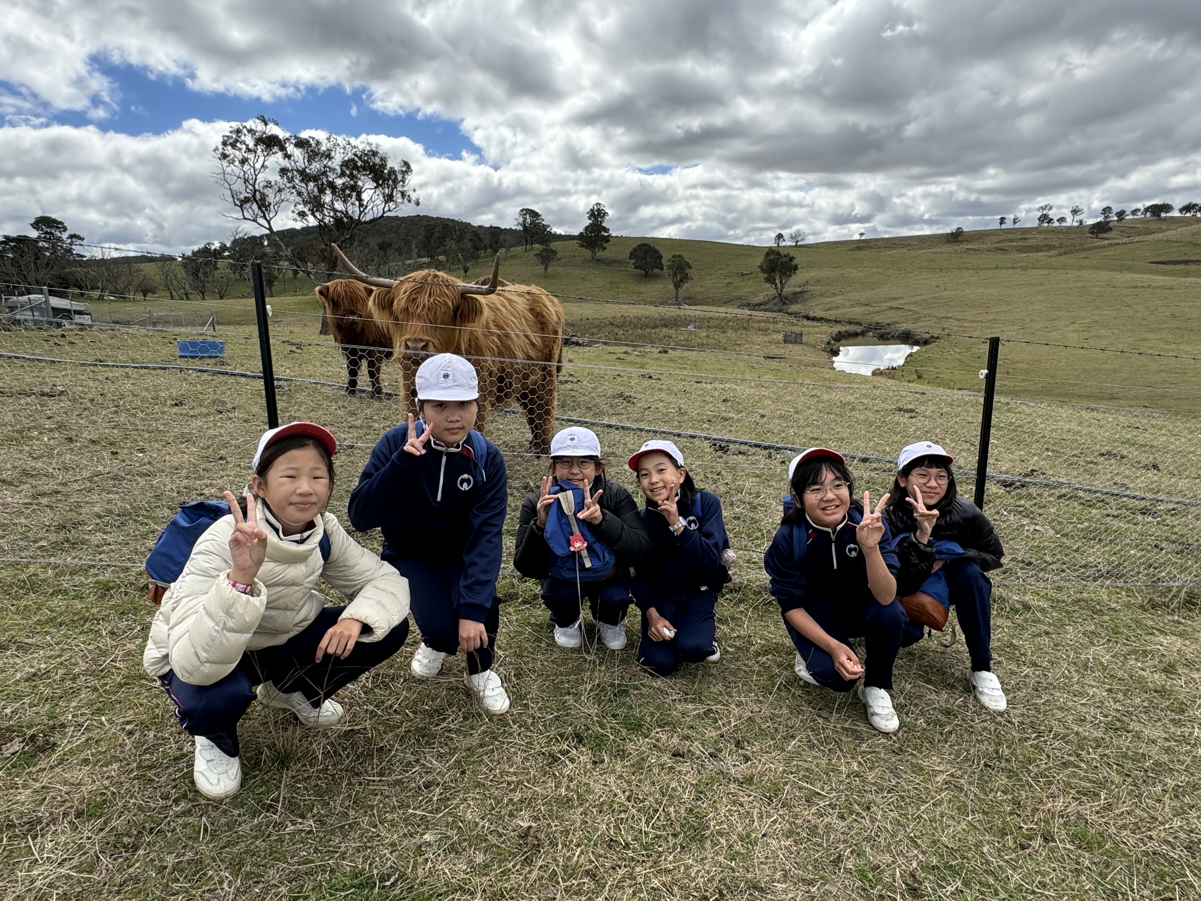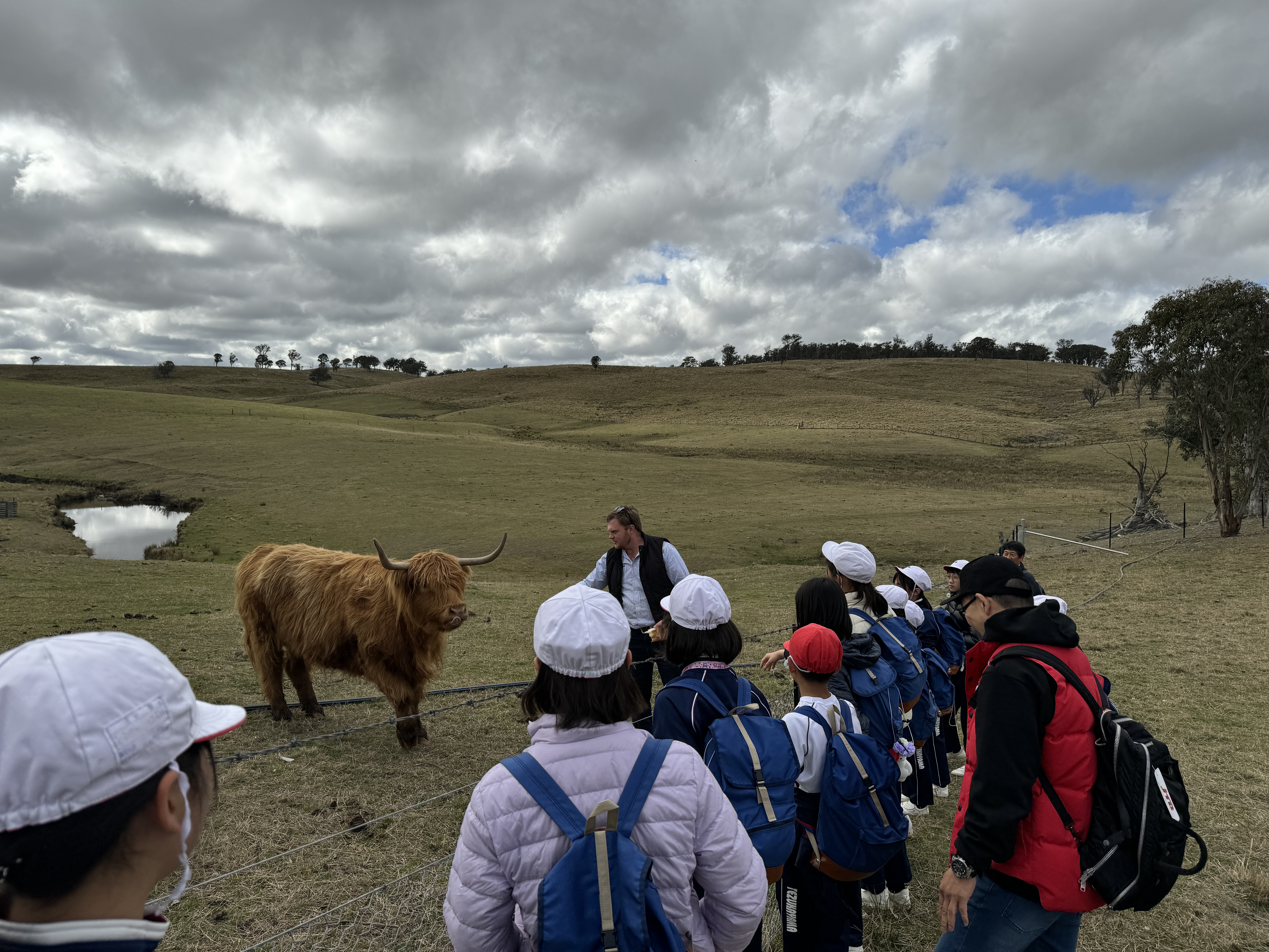 その後は、近くの牧場に見学にいきました。日本ではなかなか見られない、広大な土地に驚いていました。