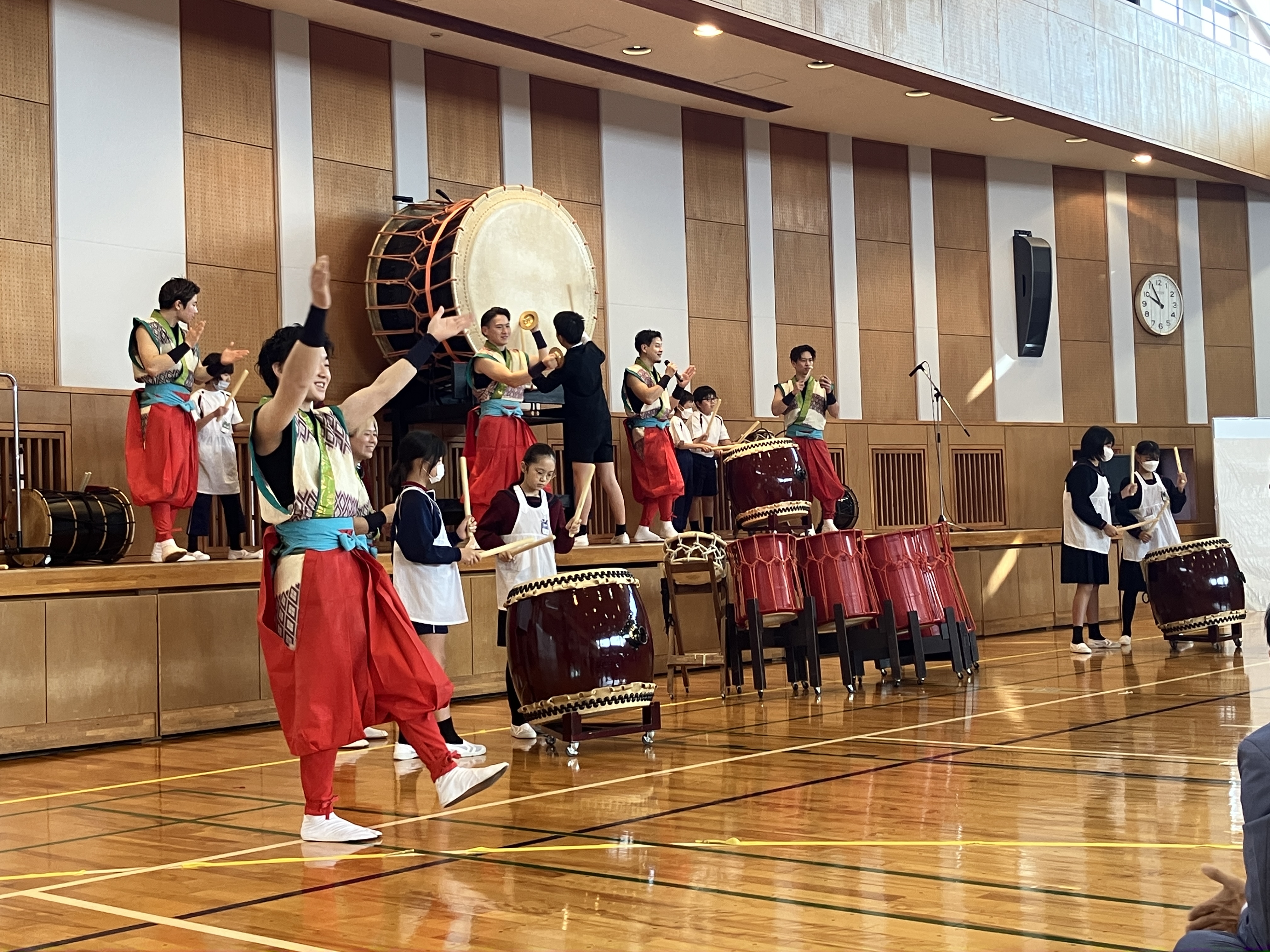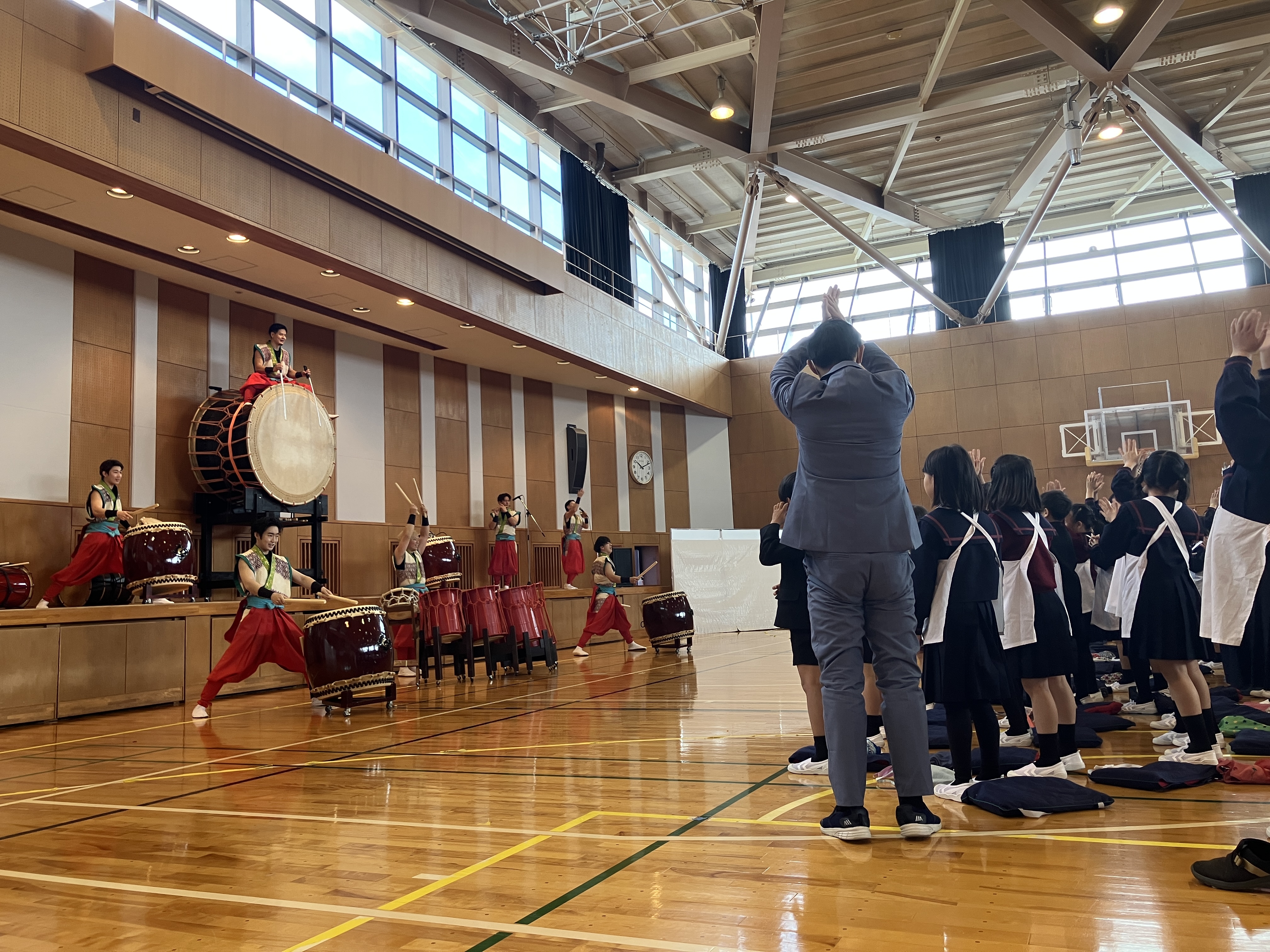 演奏が始まると、児童たちはみんな一気に和太鼓の世界に引き込まれたようです。