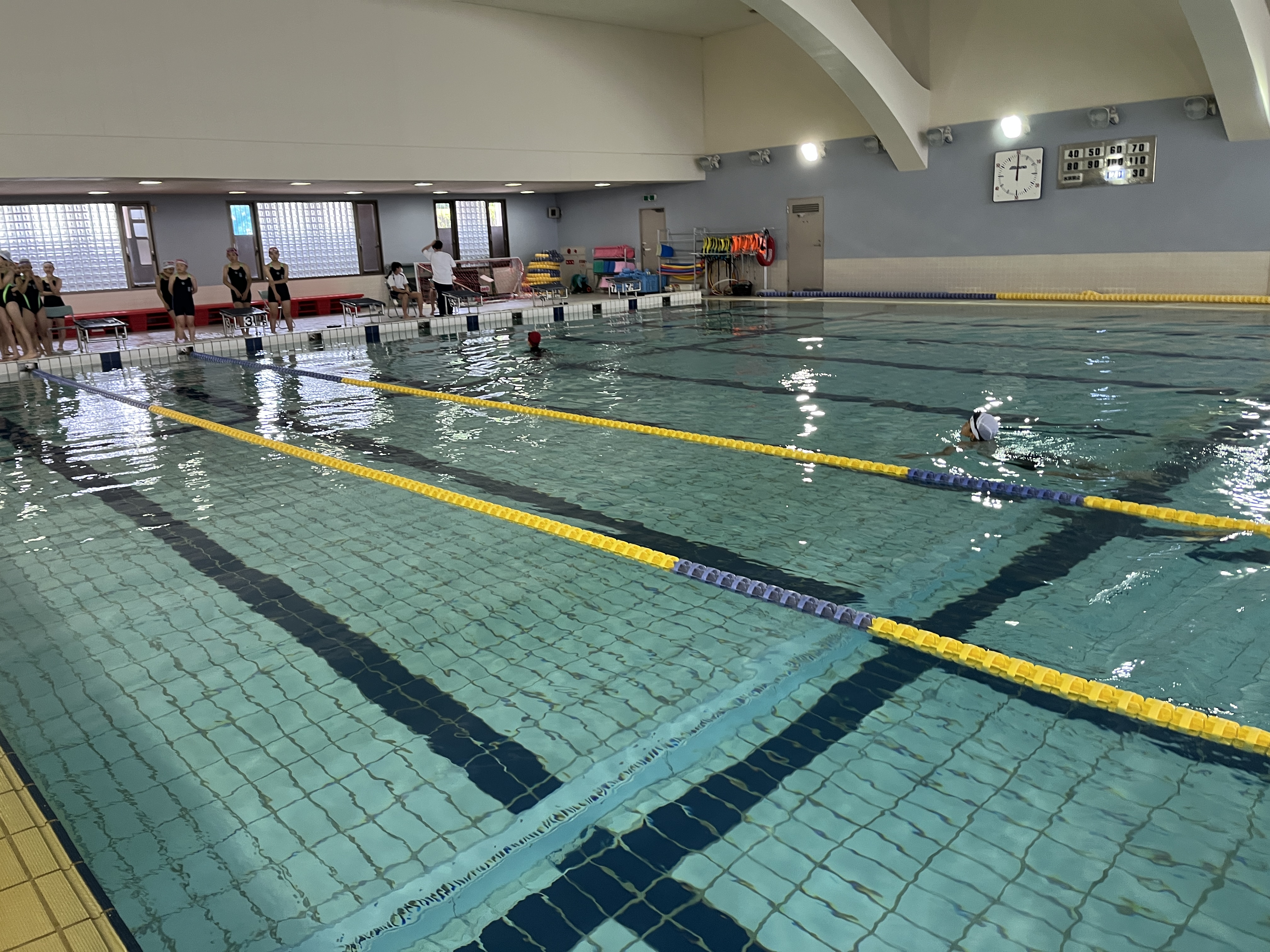 6年生の泳力テストは遠泳(顔上げ)平泳ぎ、最長100mです。