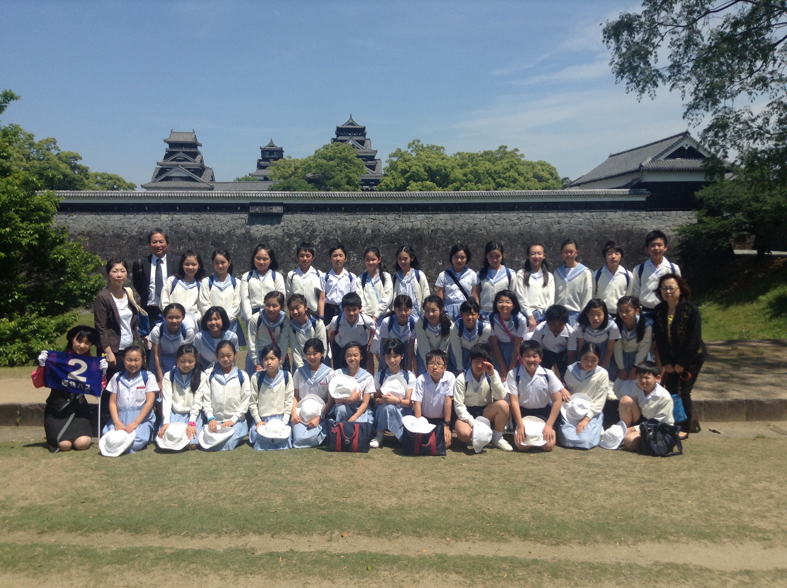 青空の広がる快晴の中、地元ボランティアの方々について、6名程度の班で、熊本城を案内してもらいました。