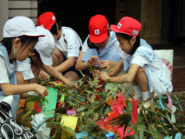 児童たちは、各姉妹学級に分かれ、願い事を書いた短冊や飾りをたくさんつけました。