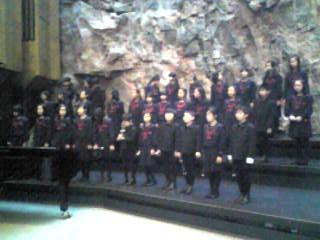 今日は、今回のメインイベントの一つ、ヘルシンキのテンペリアウキオ教会(ロックチャーチ)でのコンサートでした。300人ものお客様が来てくださり、立見がでるほどの盛況でした。子どもたちは大勢の人の前で、堂々と演奏しました。(現地時間12/25 12時半)