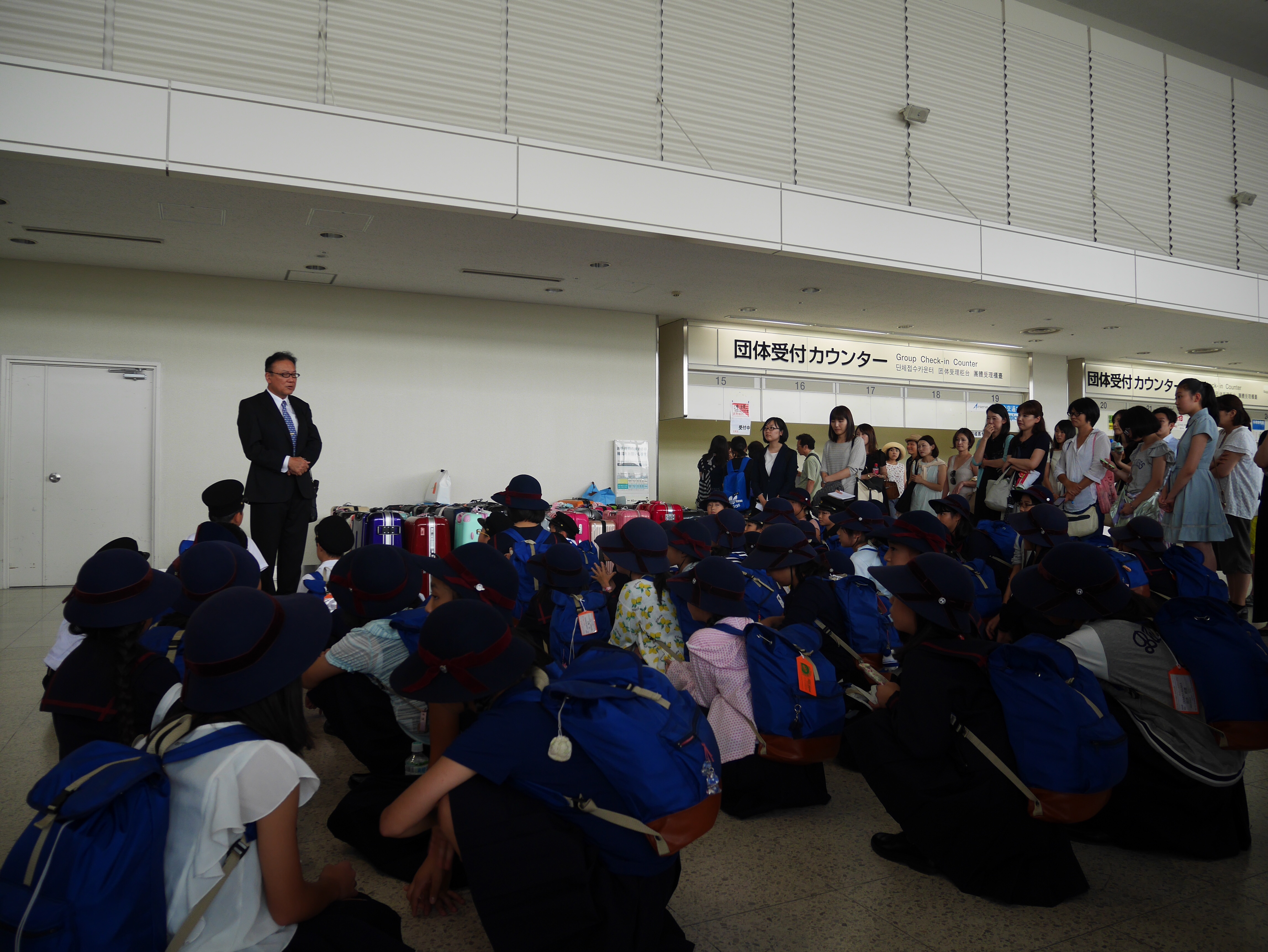 2015年08月18日(火) オーストラリア研修 2日目? 先程、児童46名無事にアーミデールに到着し、ホストファミリーの方と対面しました。 初めは緊張した様子もありましたが、あたたかく迎えてくださったホストファミリーの方の笑顔に、すこし緊張感もほぐれた様子でした。 ホームステイ1日目のスタートです。