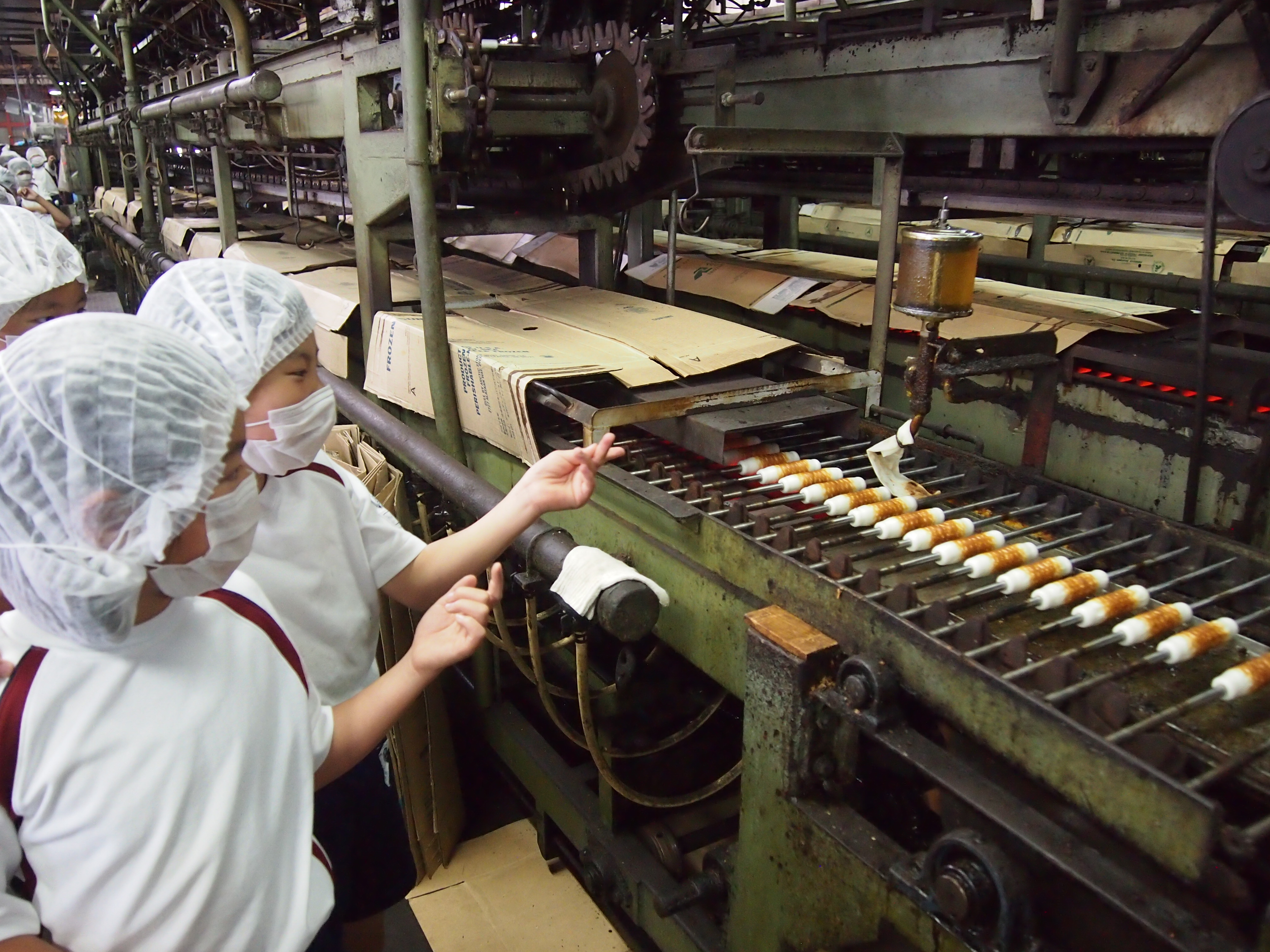 袋に詰められ売っているところしか見たことがなかった商品が人の手と機械で手間隙をかけて、工夫されて作られていることが分かりました。
