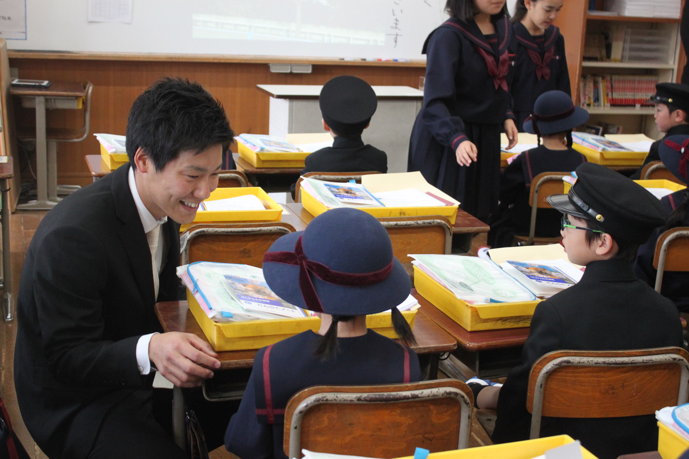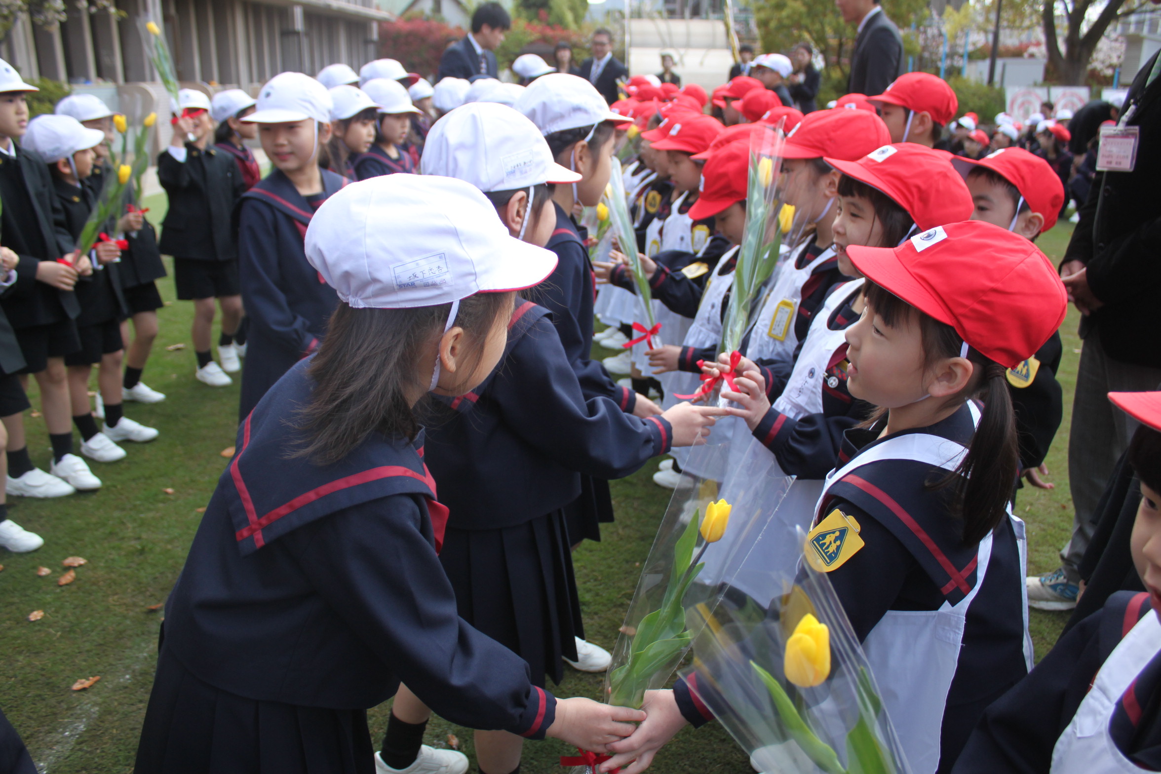 チューリップの花をもらった新入生は、少し照れていましたが、喜んでいました。