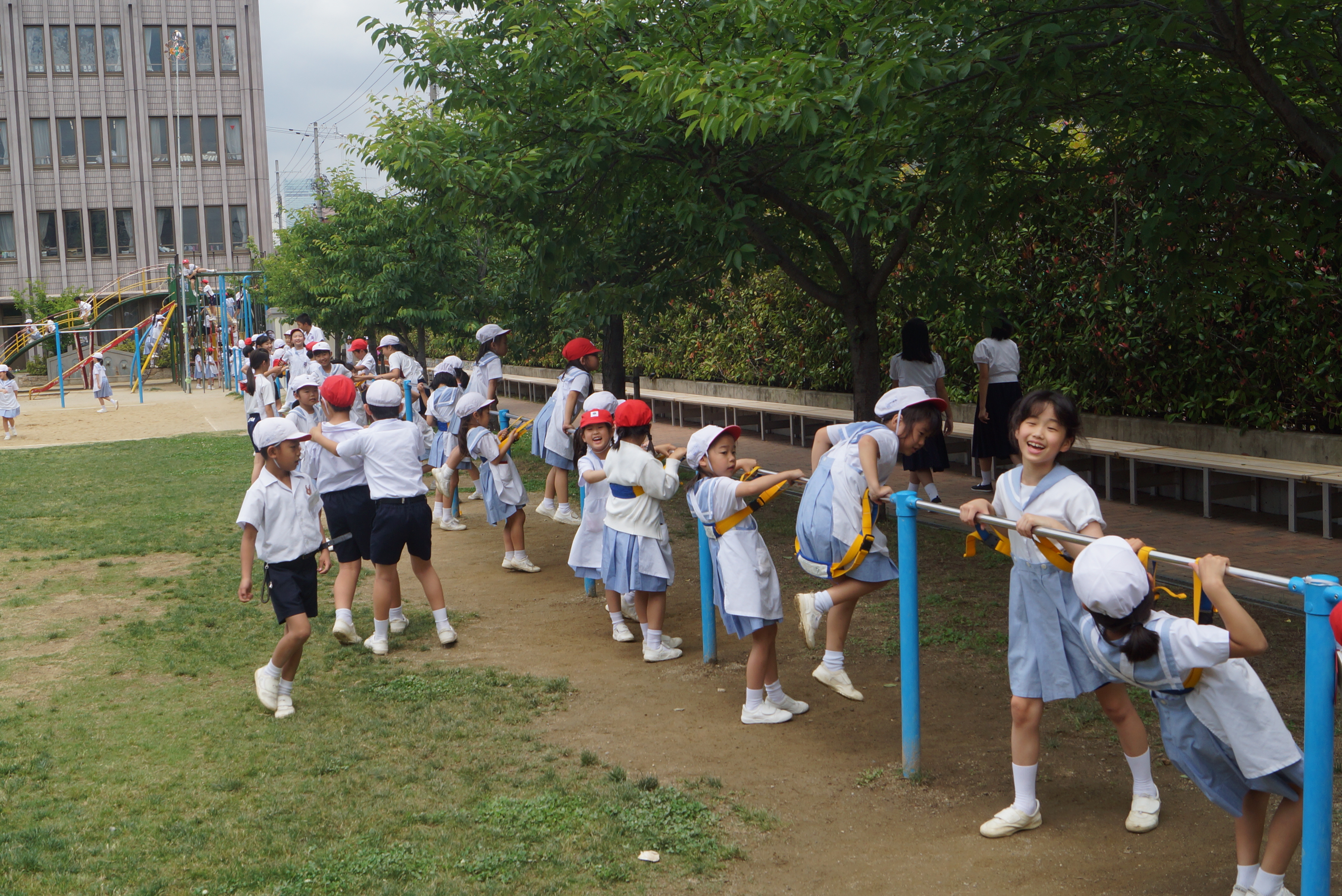 朝礼で声を掛け、毎日昼休み、鉄棒を教えてくれています。