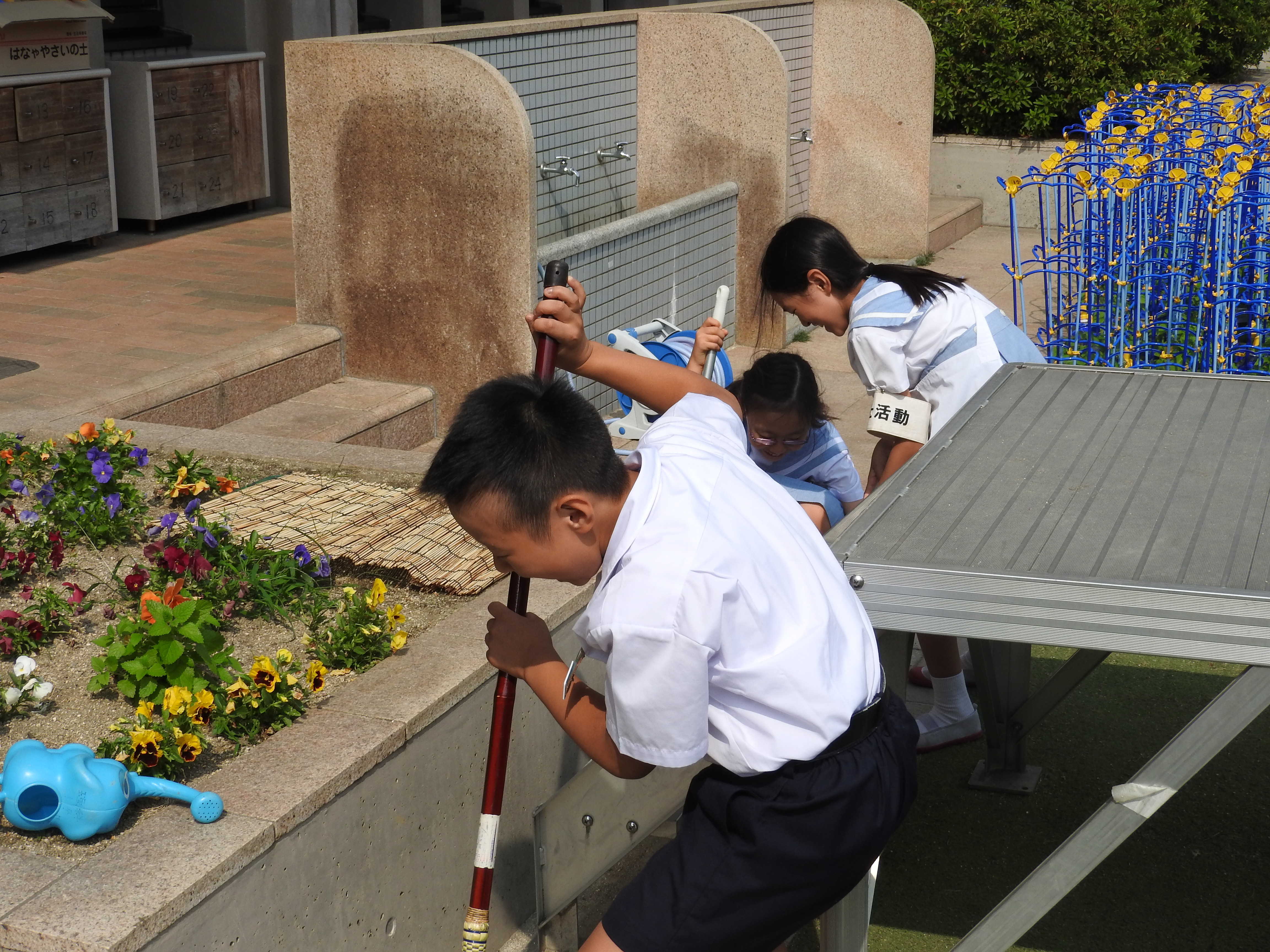 普段、行う清掃活動と違い他学年のフロアや体育倉庫、学院外の跨線橋など様々な場所へ向かいました。
