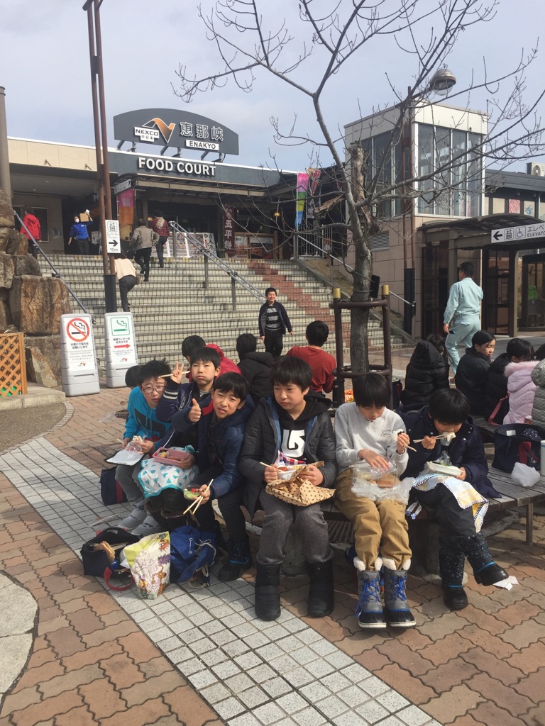 予定通り、恵那峡サービスエリアで昼食をとり、 全員無事に小丸山スキー場に到着しました。 今日は、スキーの靴と板合わせをしました。 明日からのスキー練習の楽しみが増したようです! これから、お風呂と夕食です。