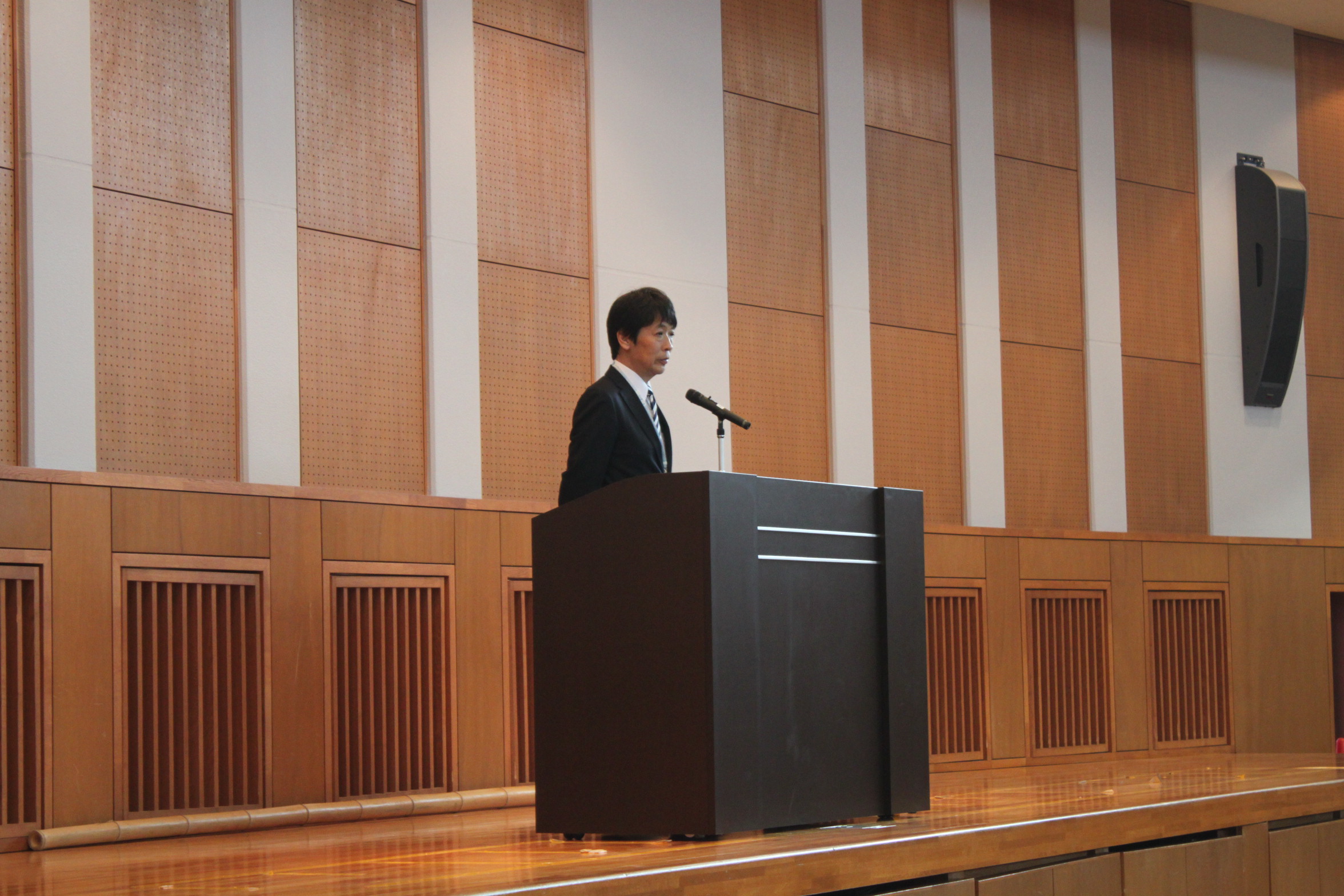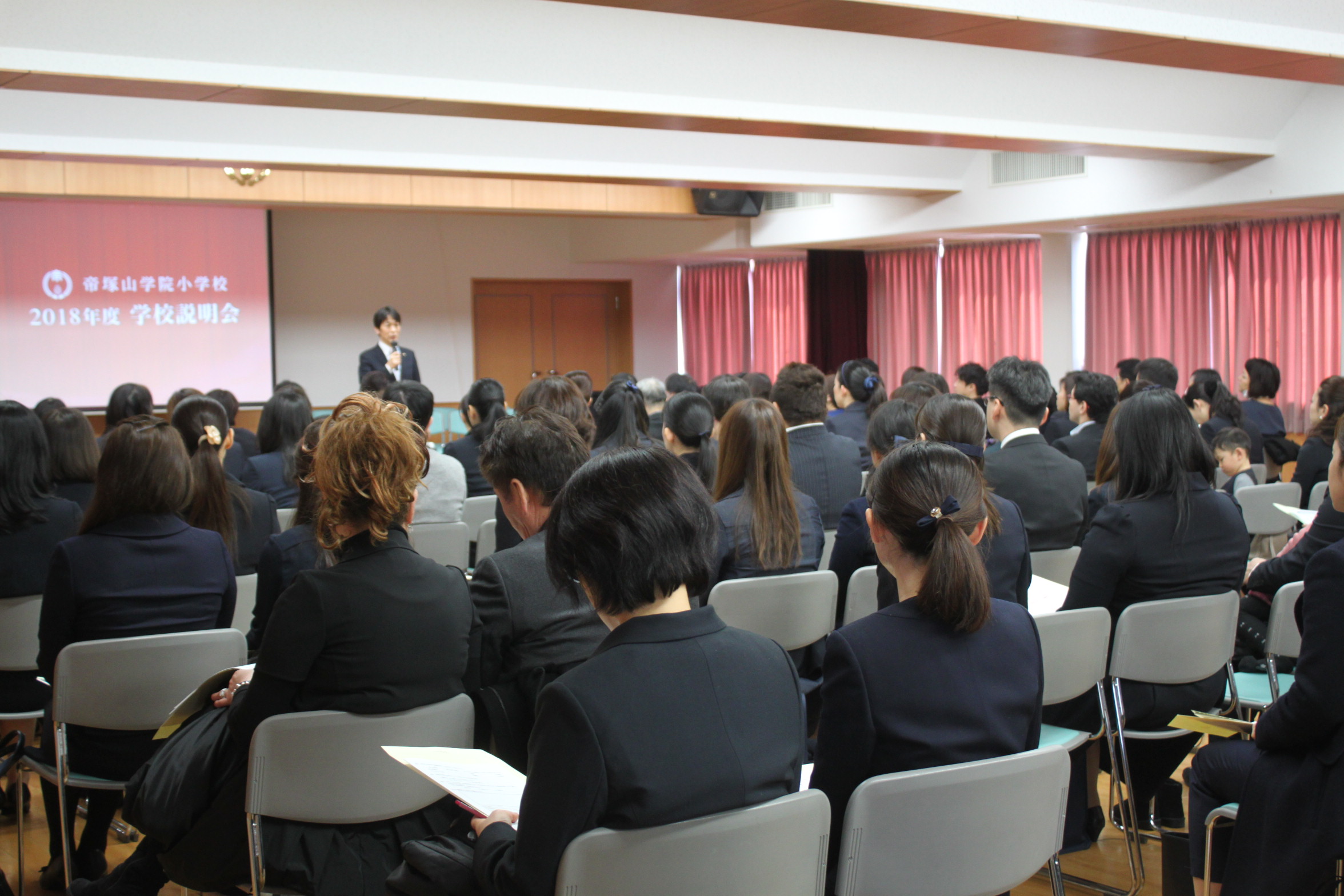 同窓会ホールでは、入試や学校についての説明があり、保護者の方々は熱心に聞いておられました。
