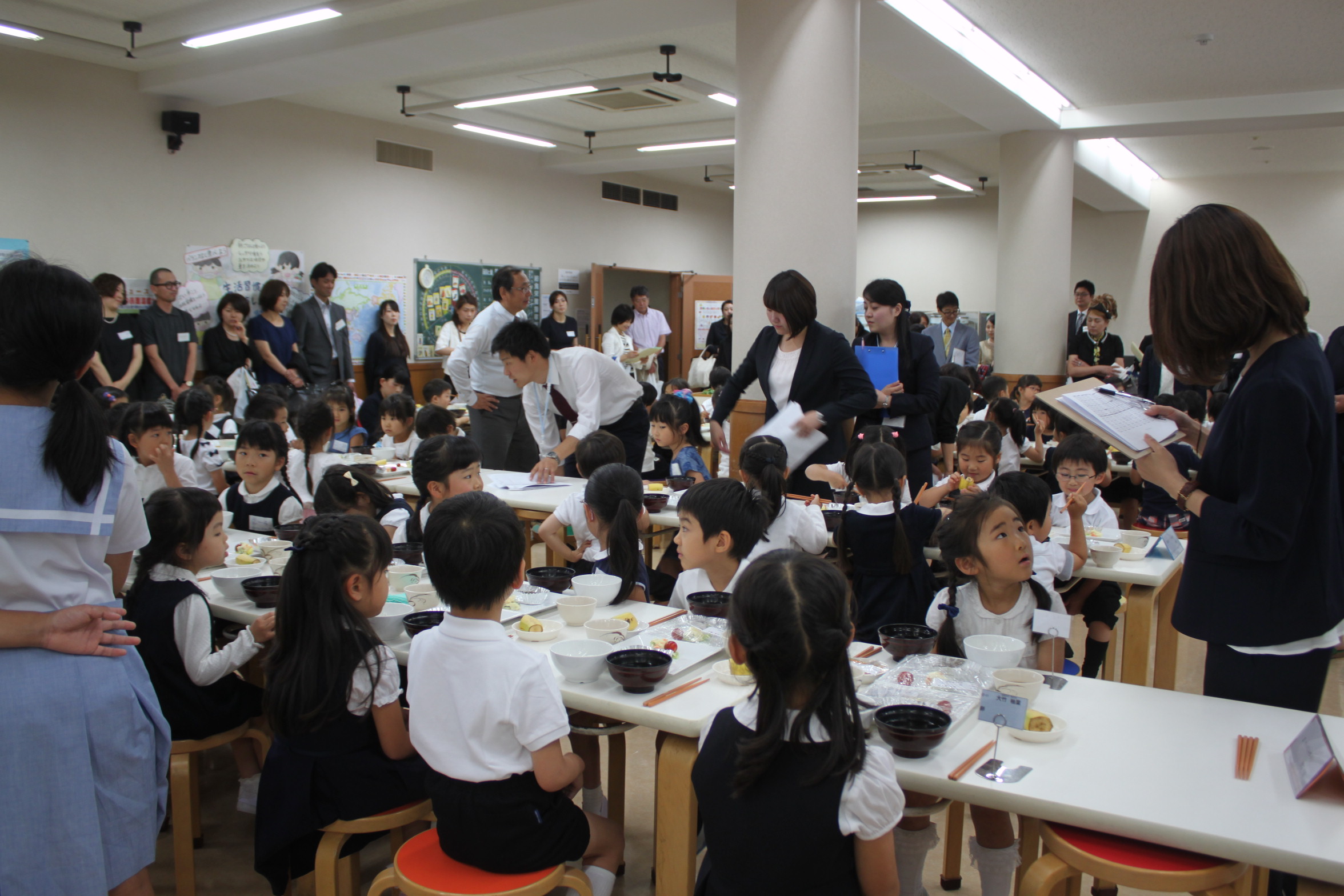 体験給食では、おいしそうにいただく園児たちの笑顔が印象的でした。