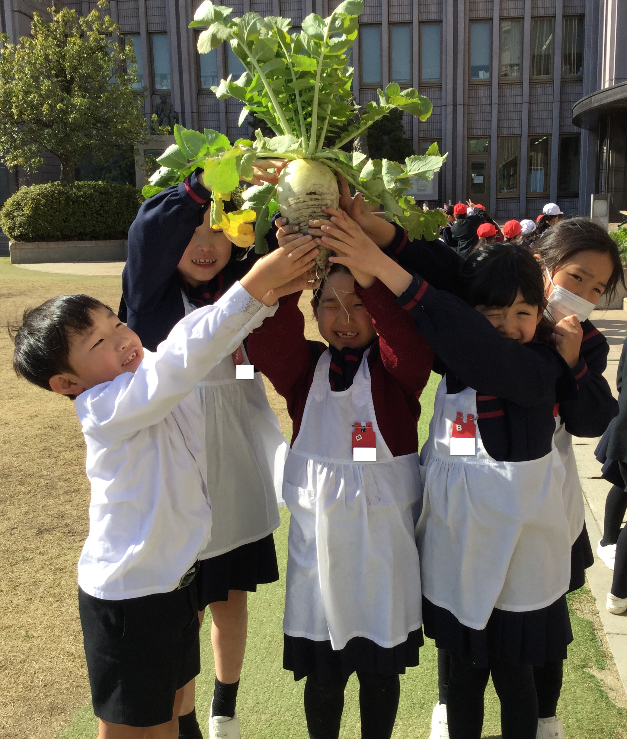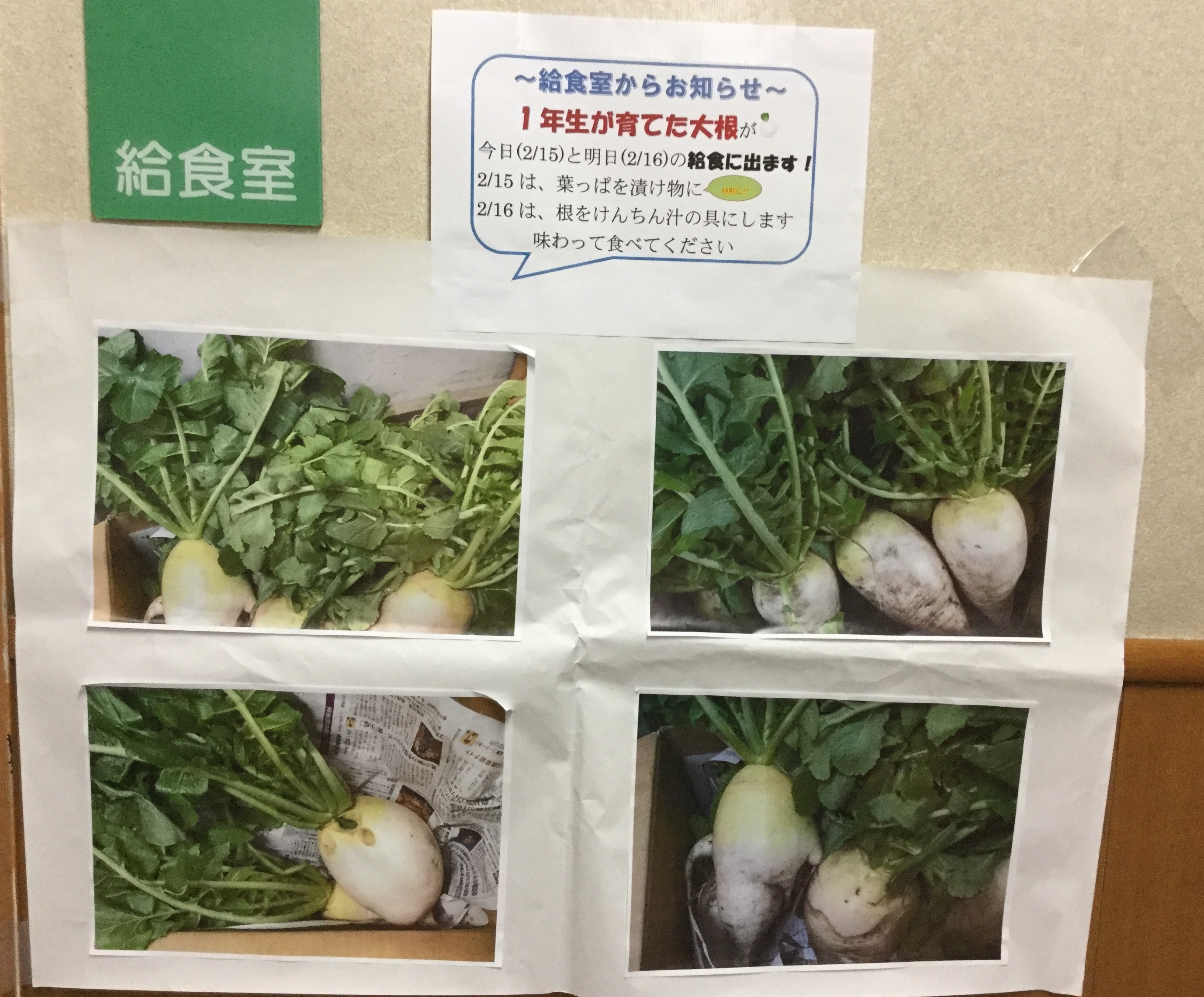 1年生が心をこめて育てた大根がついに給食に登場しました!