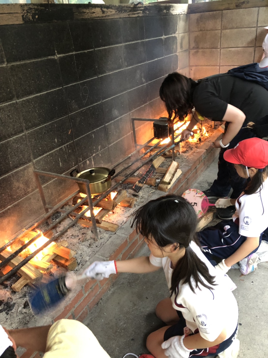 各班役割分担して、材料を切ったり、火を起こしたりと、自分たちで考えながら夕飯作りを頑張っています。