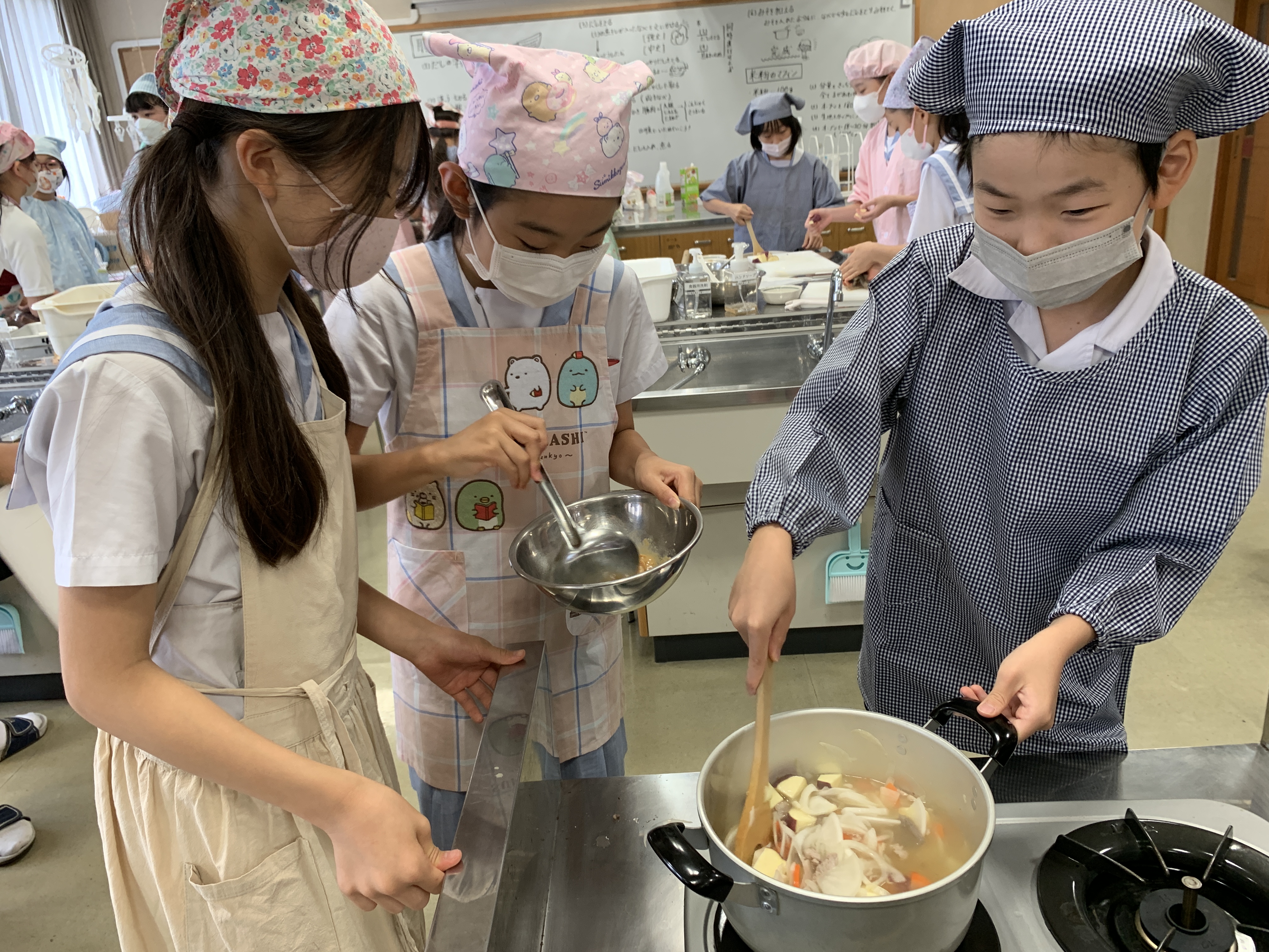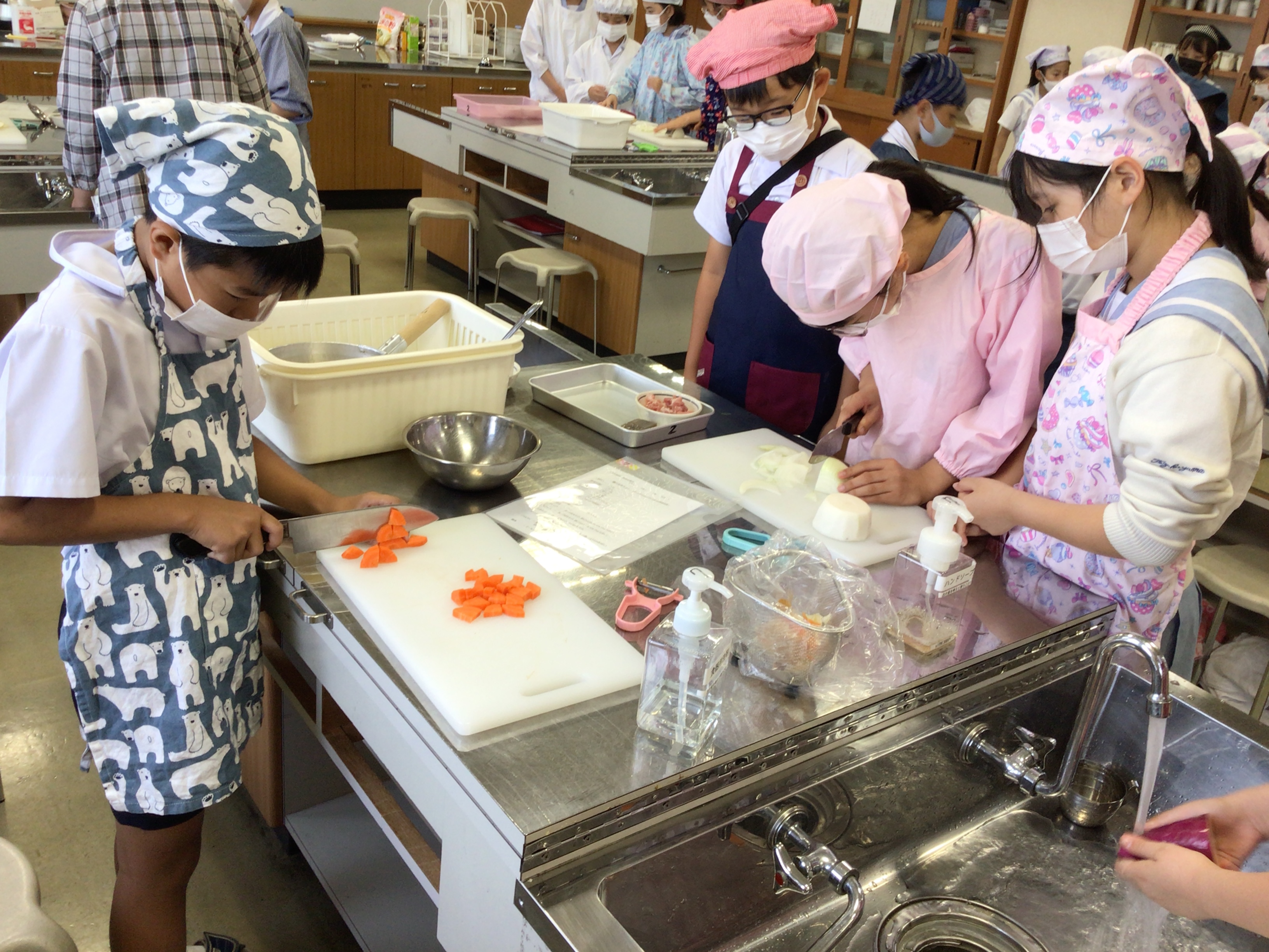 の実習を経て、火の使い方、包丁の使い方、お湯の沸かし方などを学んできた5年生。
