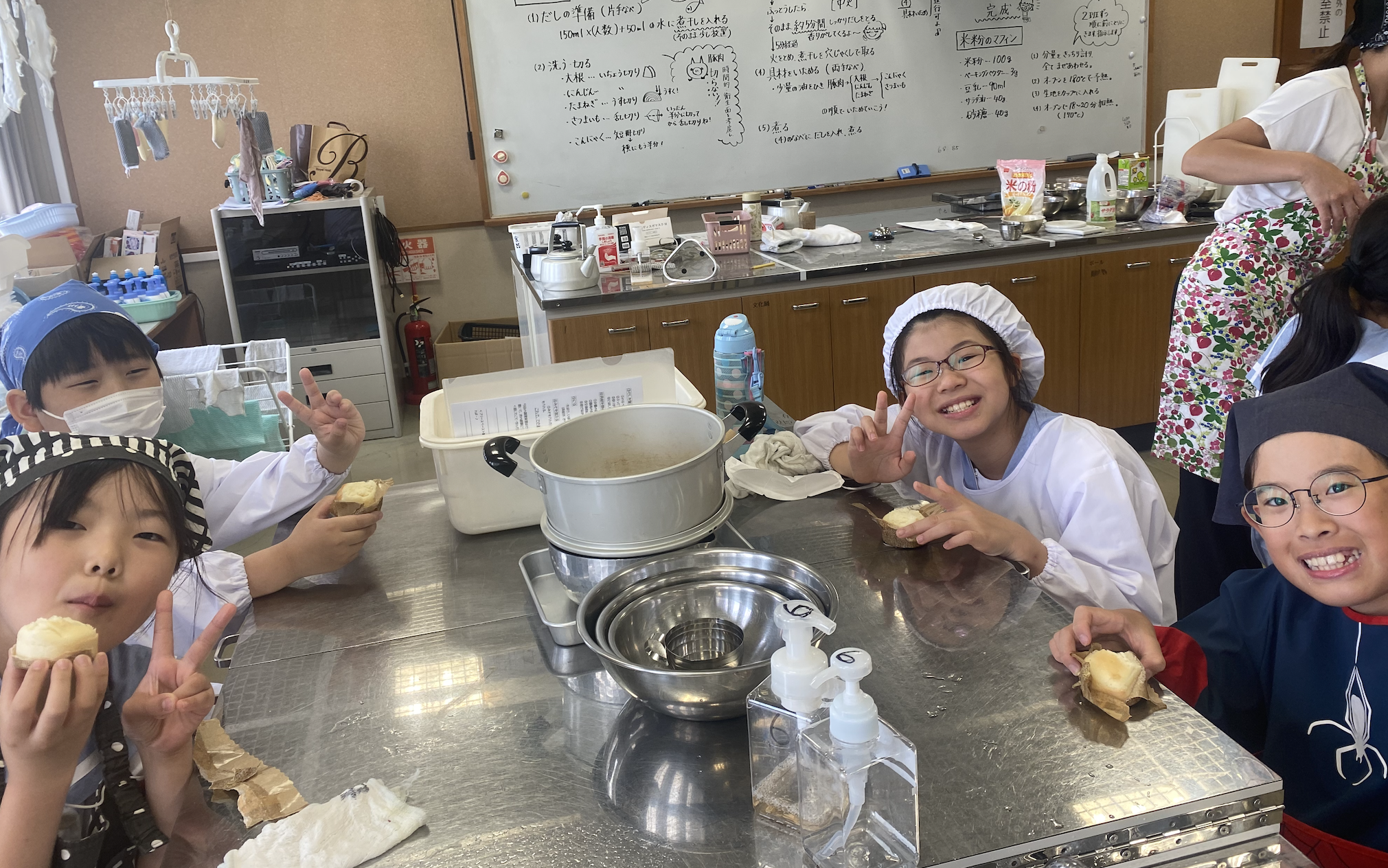 デザートのマフィンも、良い色に焼けて、お腹いっぱい、満足の調理実習になりました。