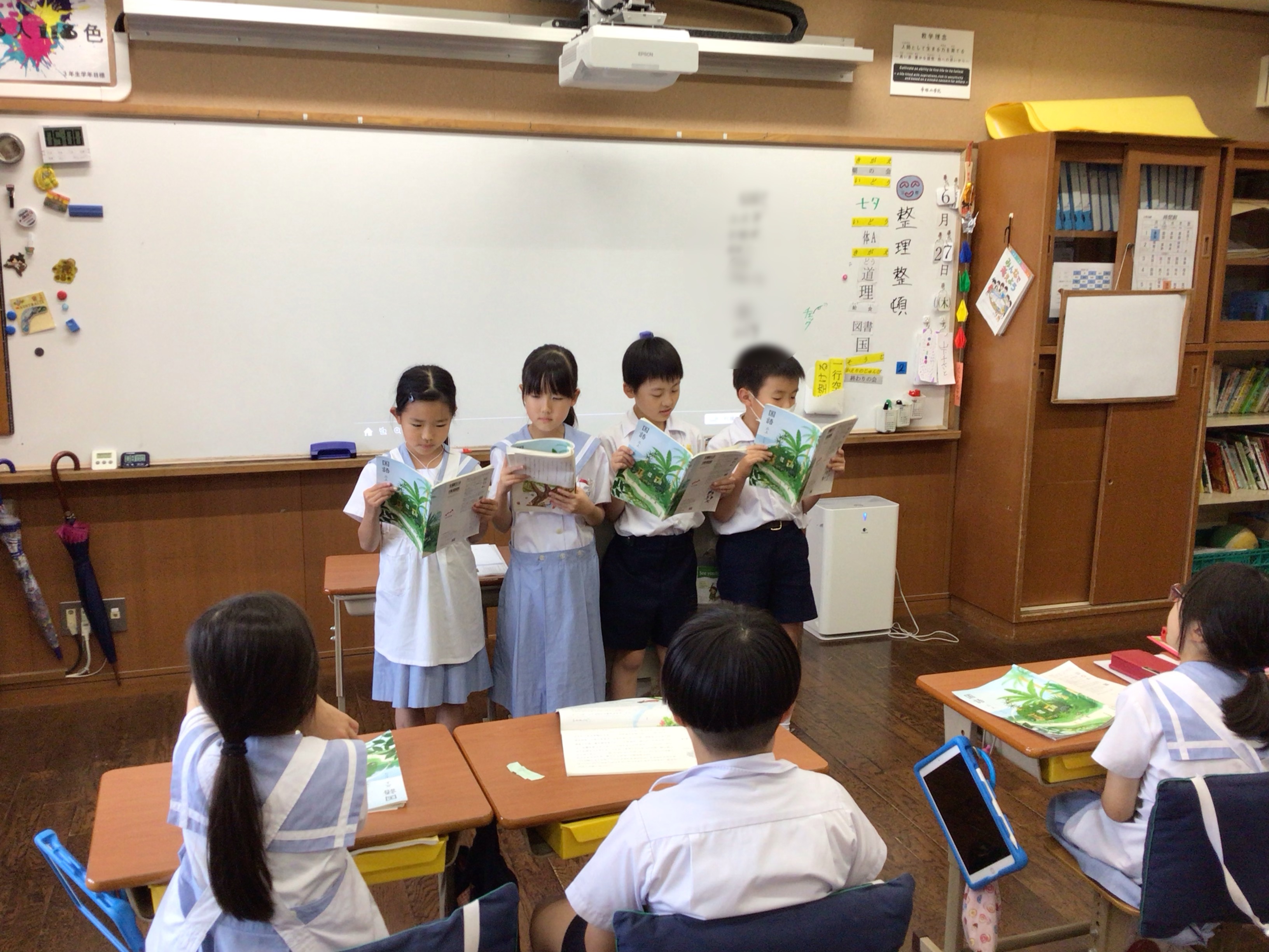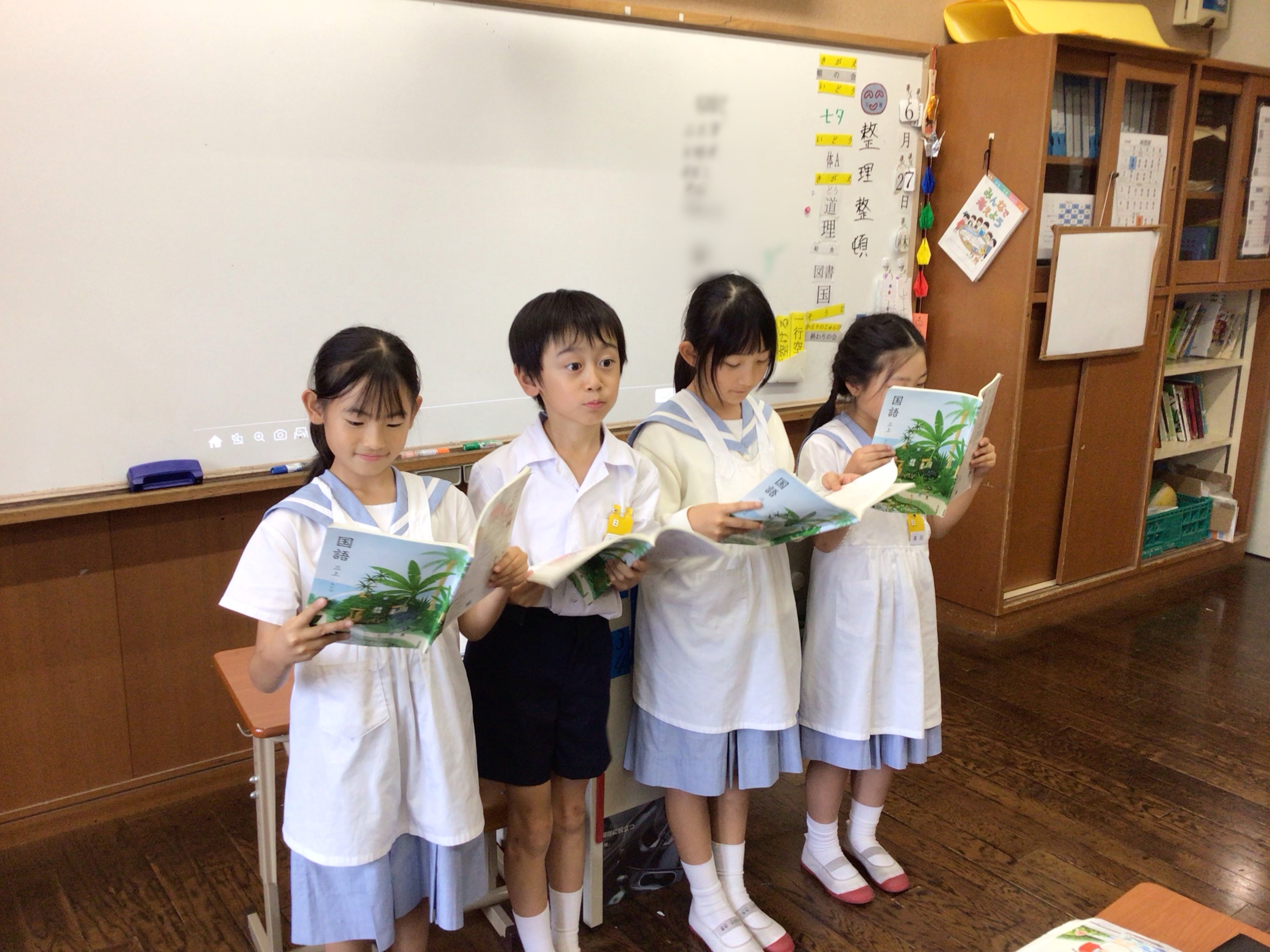 国語科「まいごのかぎ」の単元で音読発表会をしました。それぞれの班で、自分の担当を決め、練習を重ね全員の前で発表をしました。みんなで協力して、気持ちを込めて堂々と音読することができました。