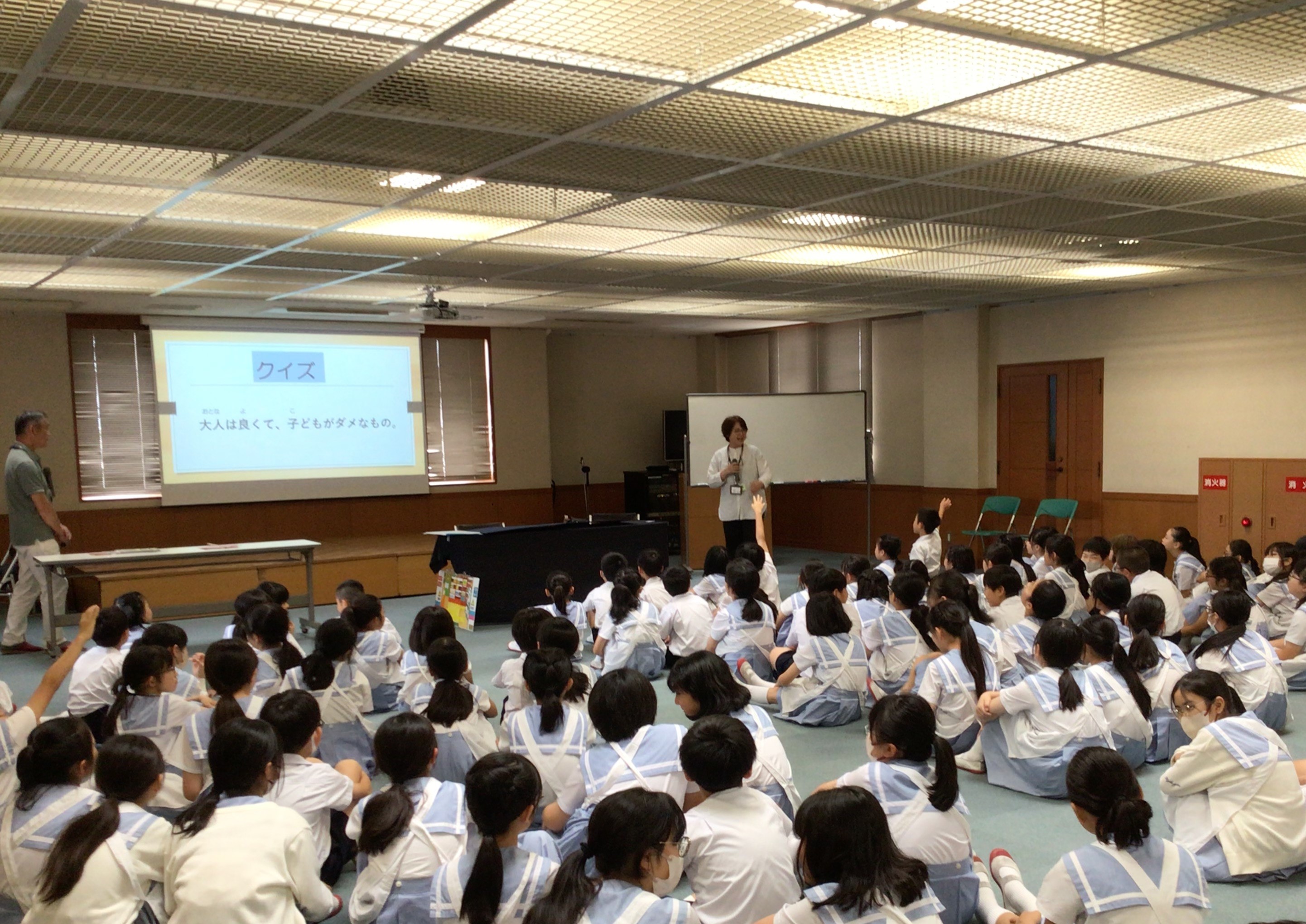 知らないうちに犯罪に巻き込まれないために、身近な例をあげて、わかりやすく教えていただきました。自分が冗談でやっていることでも、相手がいじめと感じたらそれも犯罪になることがあるということも教えていただきました。子供たちは熱心に劇をみたり、お話を聞いたりしてくれていました。