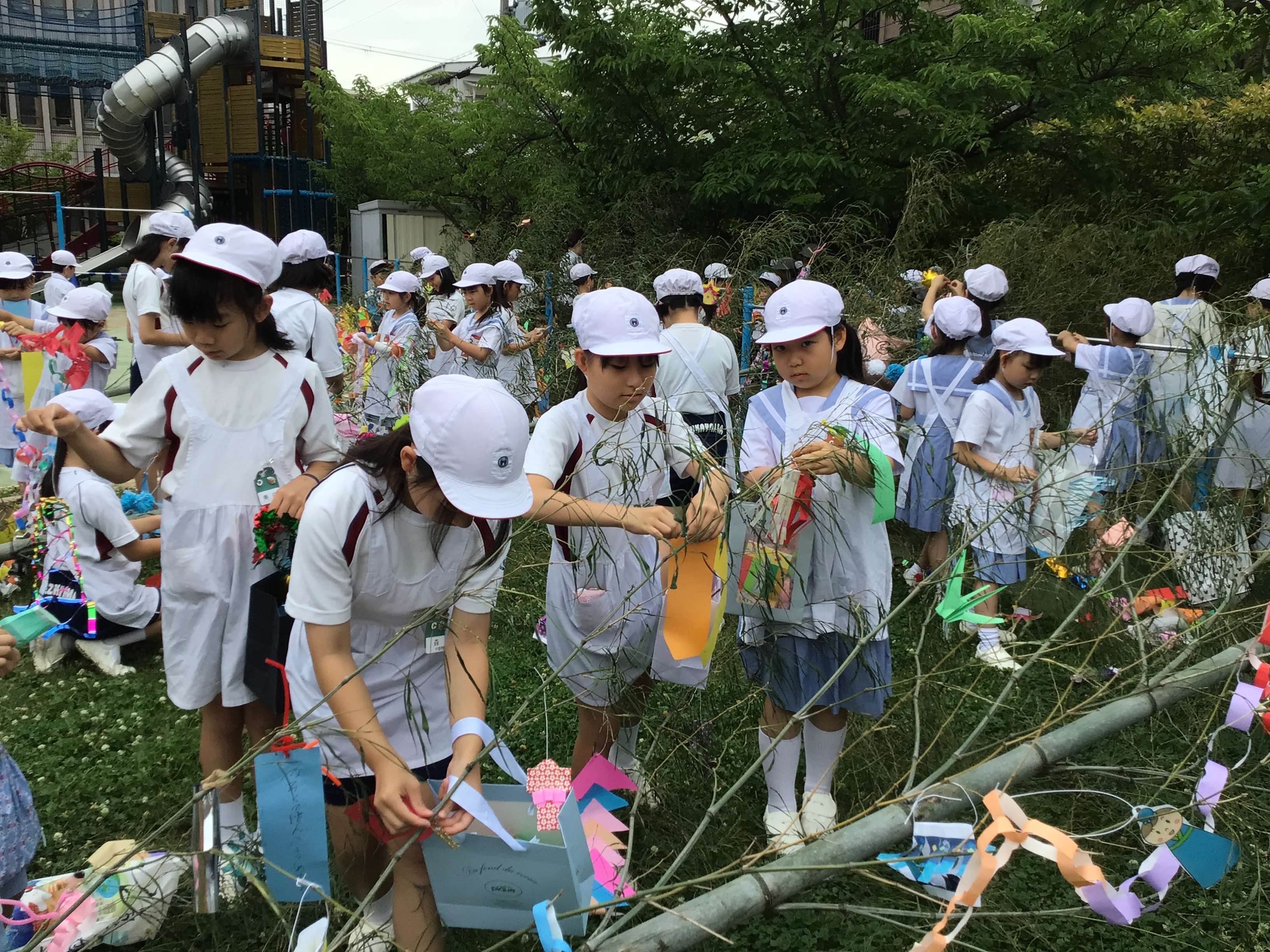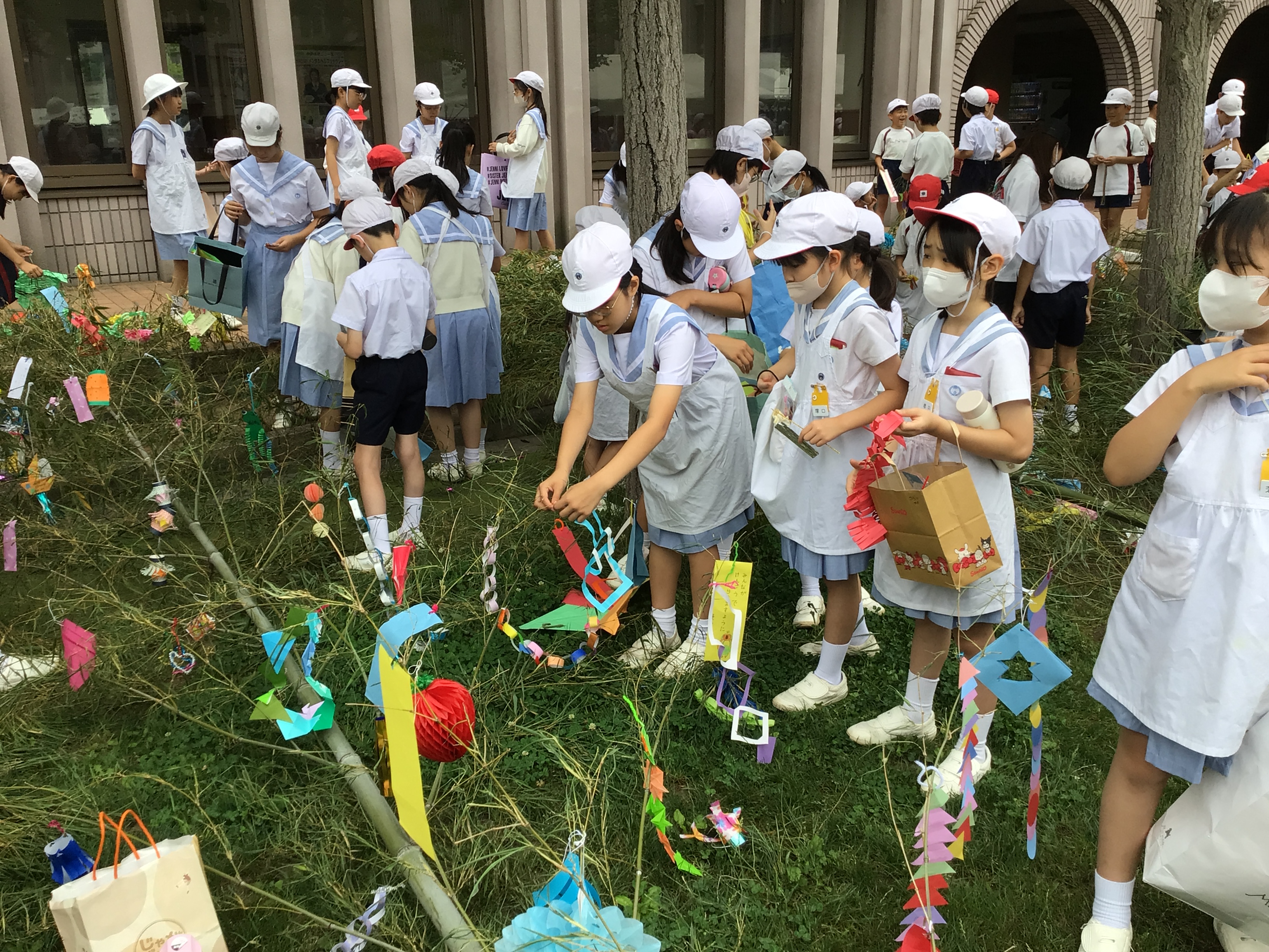 本日、七夕まつりの笹飾りを行いました。