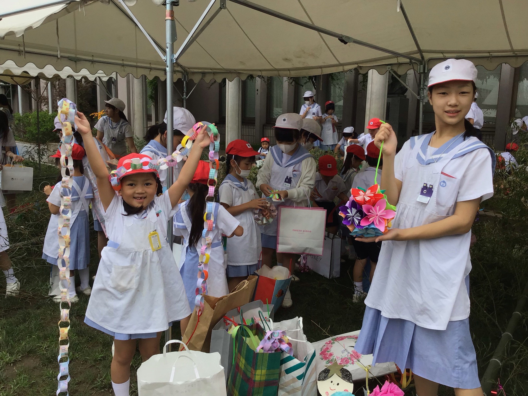 子どもたちは、兄弟学級に分かれ、きれいな飾りや