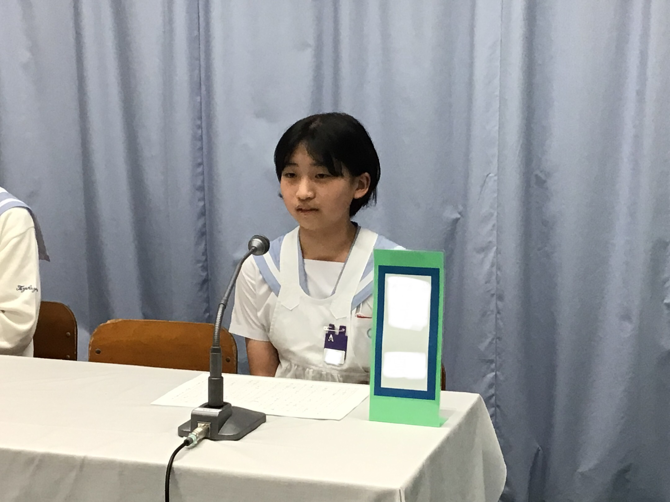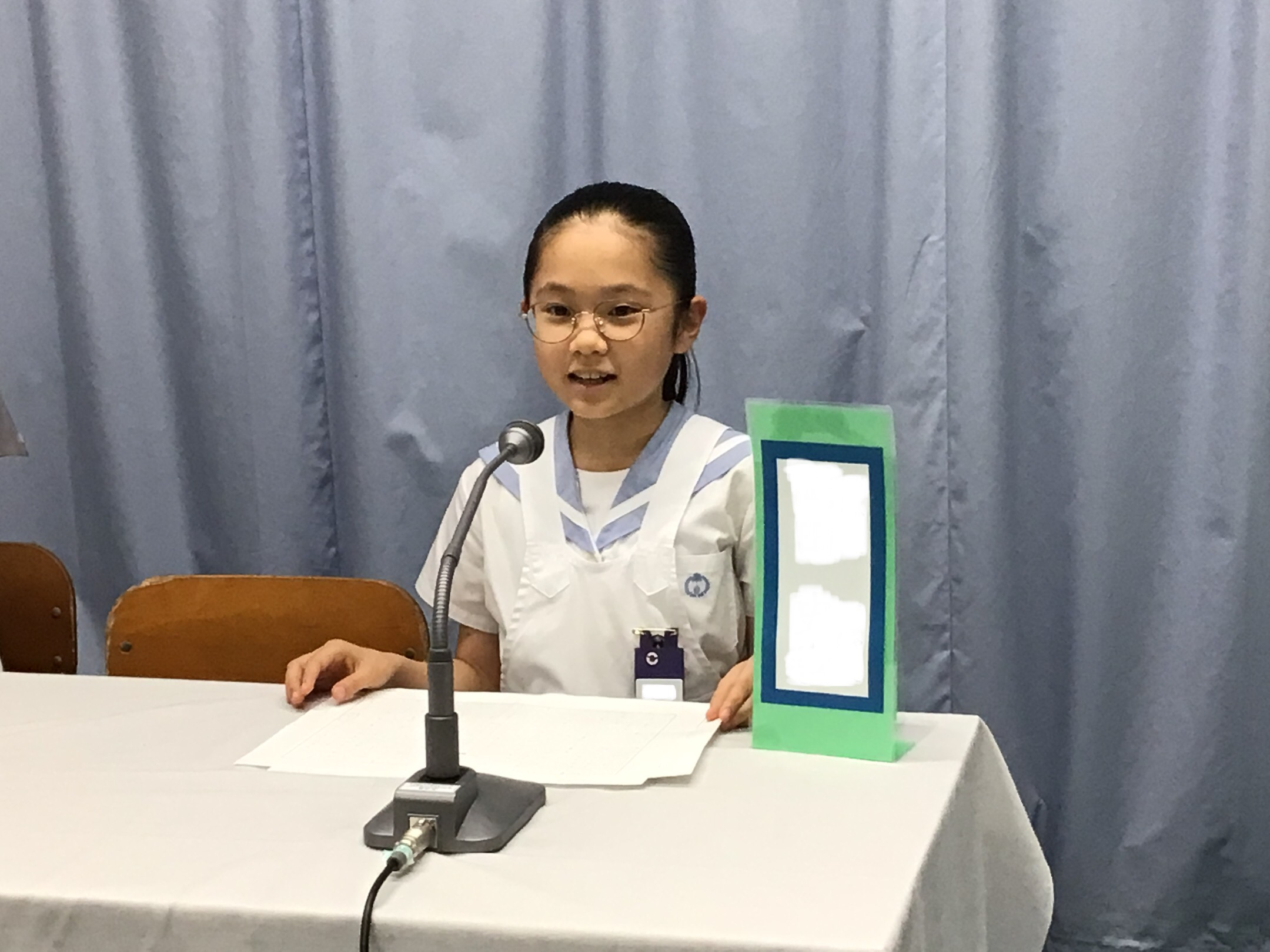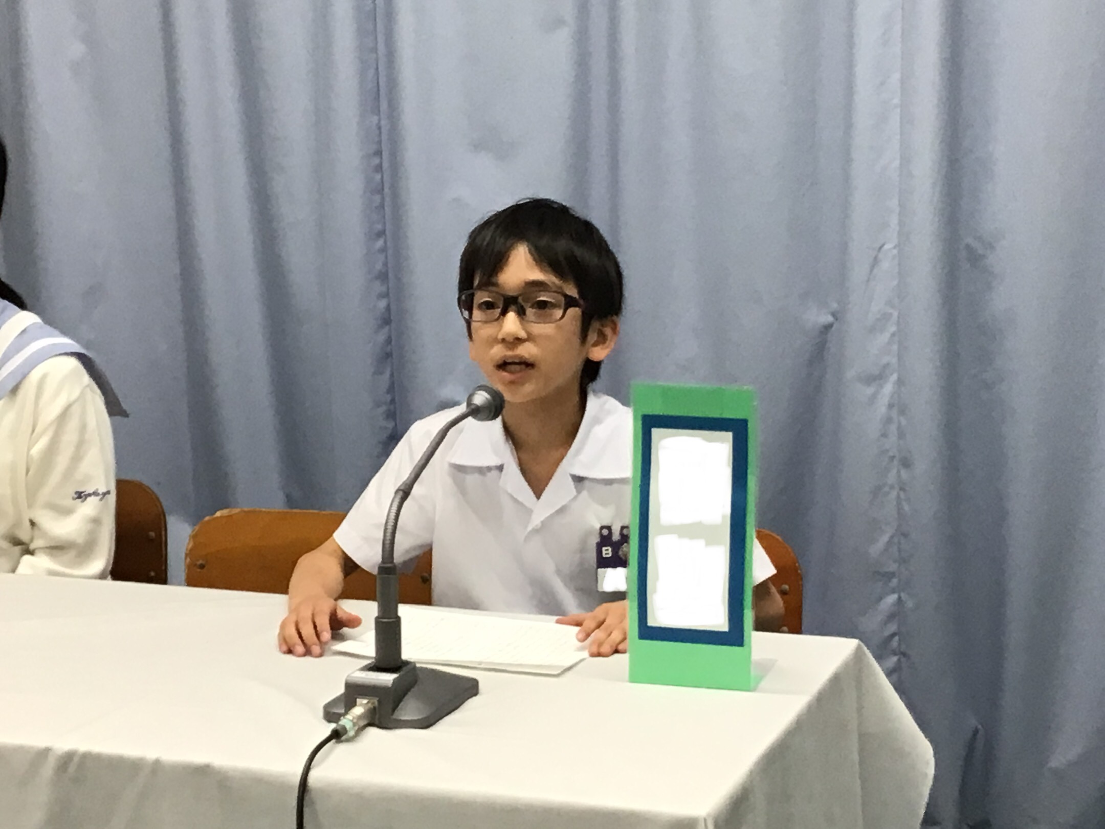 各クラスからの立候補者が、それぞれの公約を掲げながら演説を行いました。自分自身が考える楽しい学校とは、また、自分が会長になりたい理由など、3人ともしっかり落ち着いて自分の思いを語っていました。