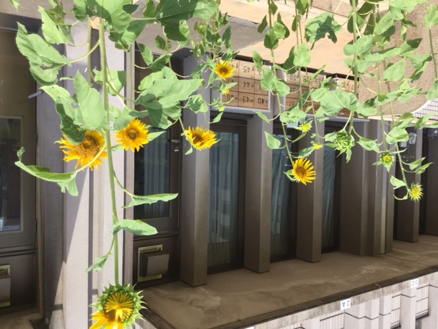 6月に1年生と説明会に来てくれた幼稚園児のみなさんがひまわりの種をまきました。