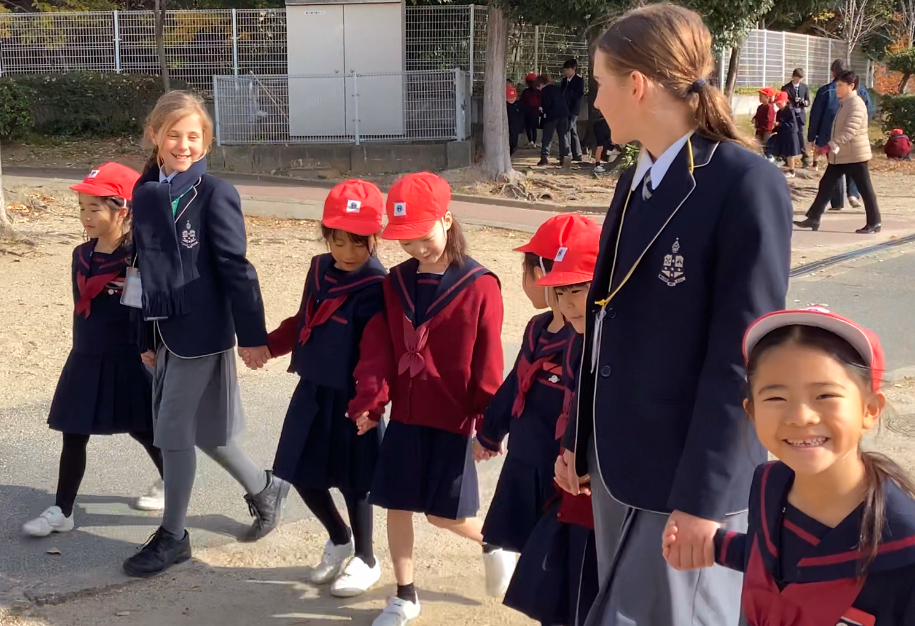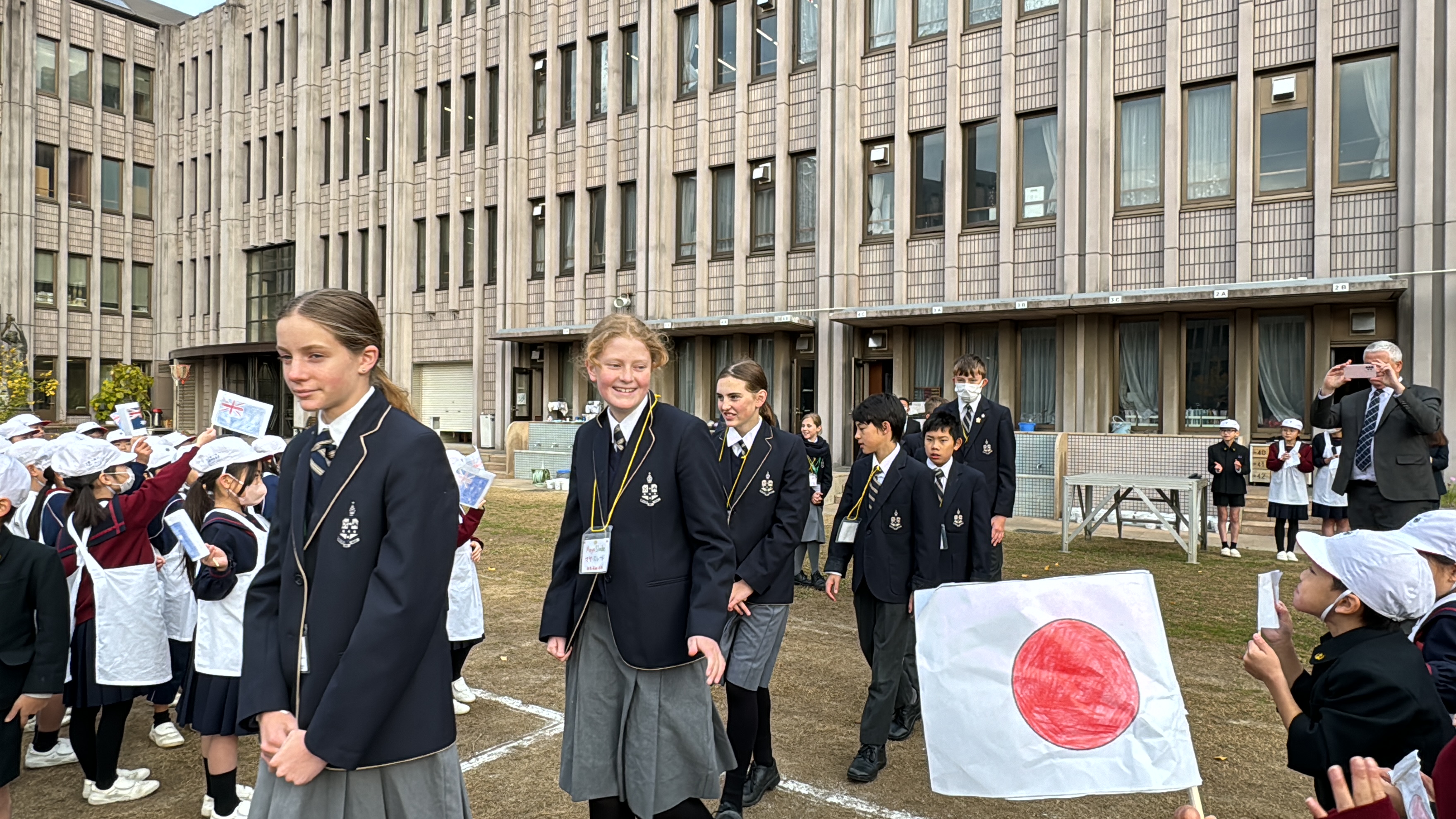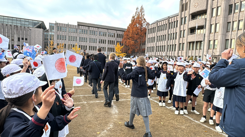 国際交流最終日には、朝礼の時間に校庭でフェアウェルセレモニーを行いました。