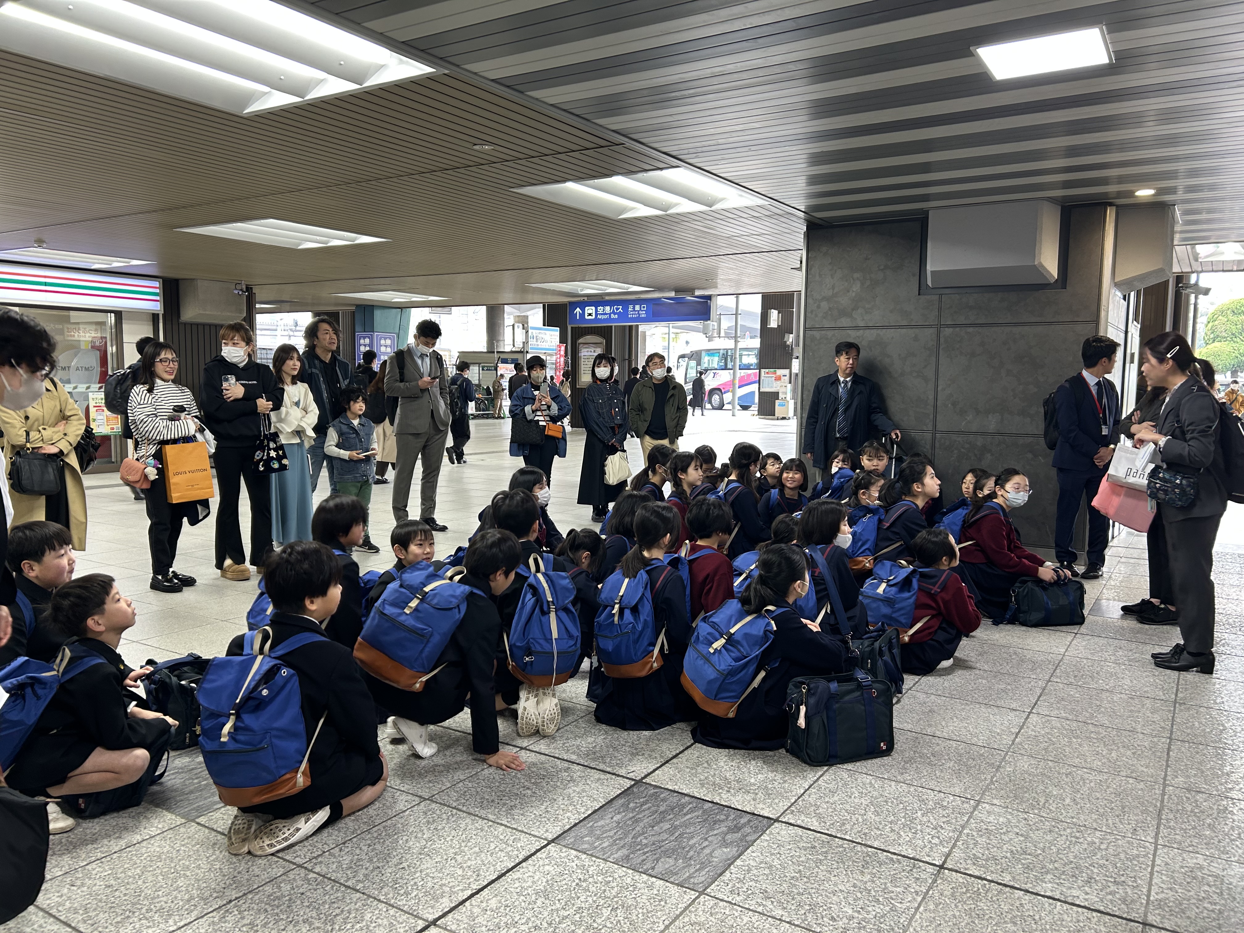 4年生にとっては初めての宿泊行事ですので、少し不安げな表情の児童もいましたが、往路の新幹線で早速海外からの旅行者の人と会話を交わしたりと、出発後からはリラックスした様子も見られました。
