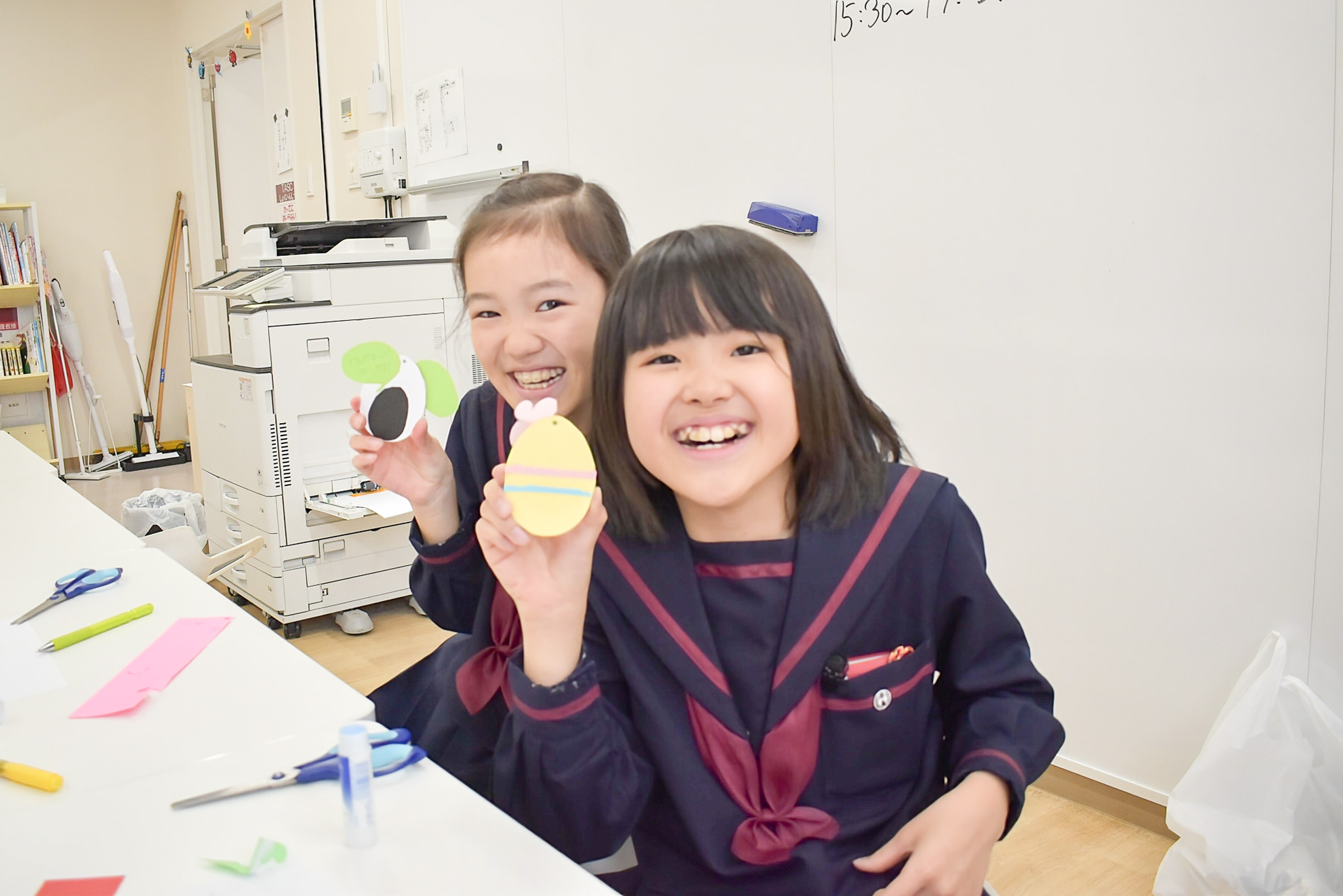 長期休みのTASCでは季節にちなんだイベントや工作を行っています。来月にはイースターがあるので、工作の時間に卵型のオーナメントにペイントしました。