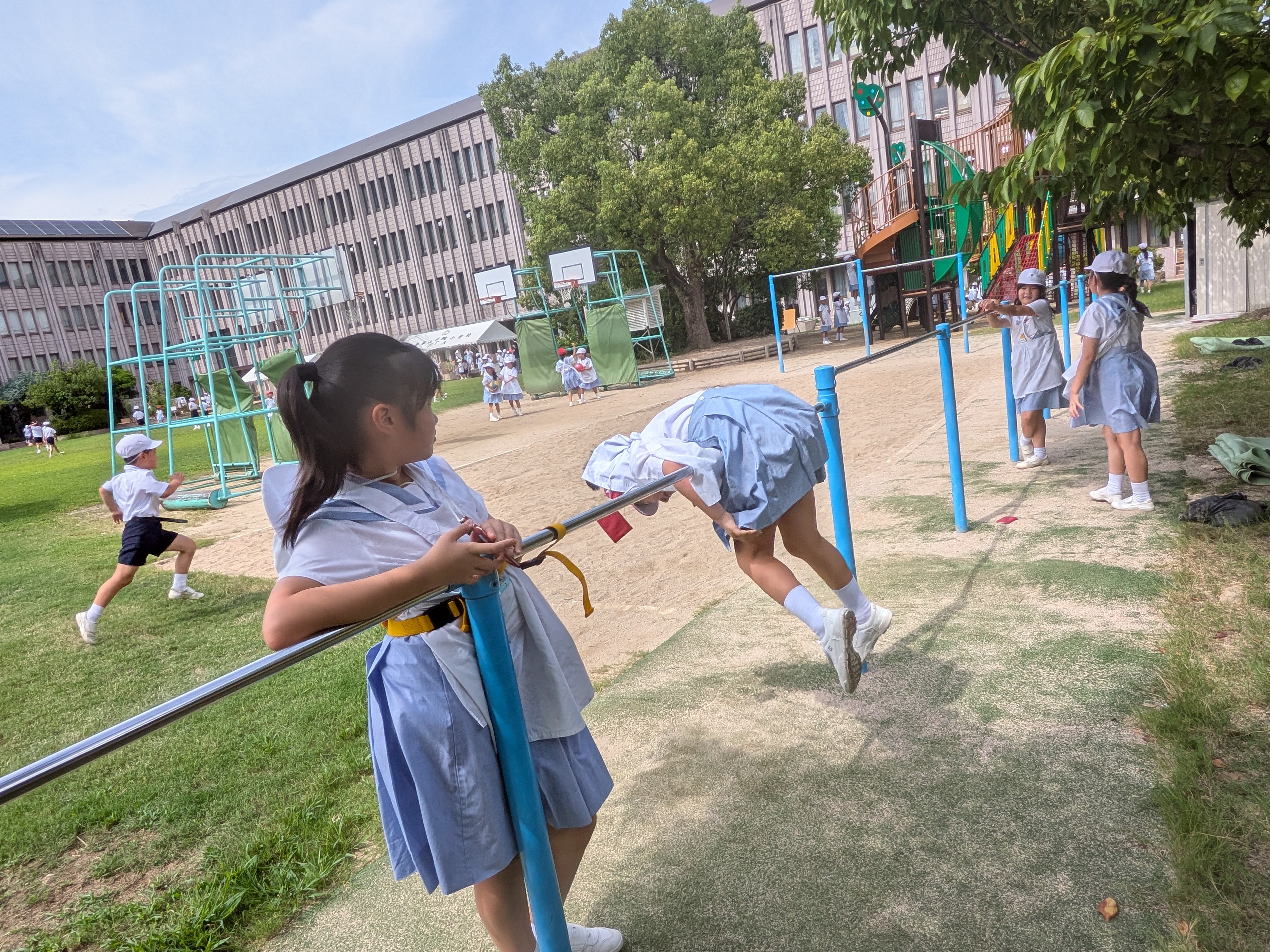 逆上がりやダルマ回りの練習をしたり、先生方とおにごっこをしたり、ボール遊びをしたりと、汗をいっぱい流して元気いっぱい遊んでいました。