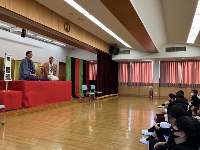 12月8日(木)、2、3、4時間目に、落語家の桂かい枝さんと桂福龍さんによる6年生対象の英語落語鑑賞会を行いました。
