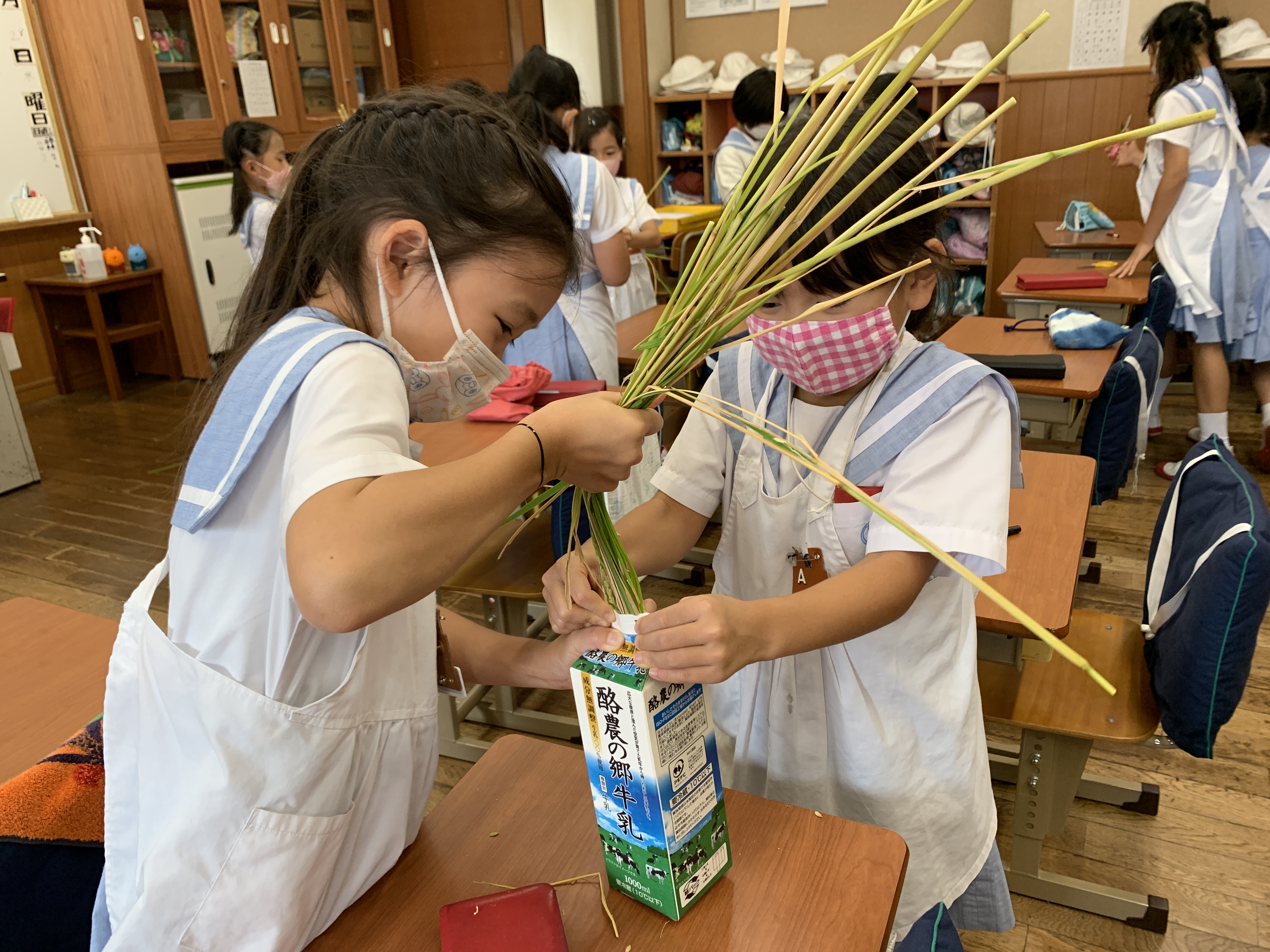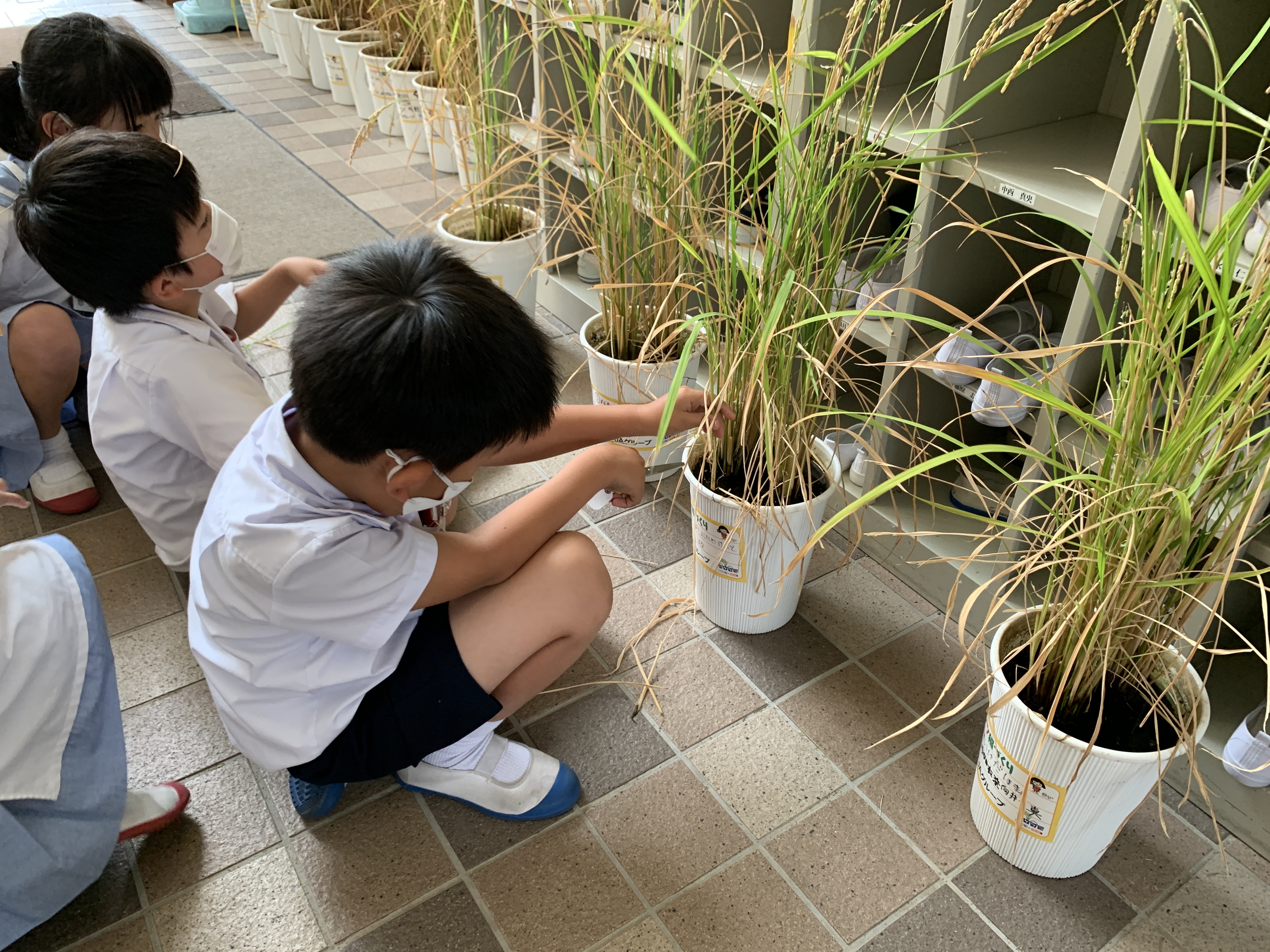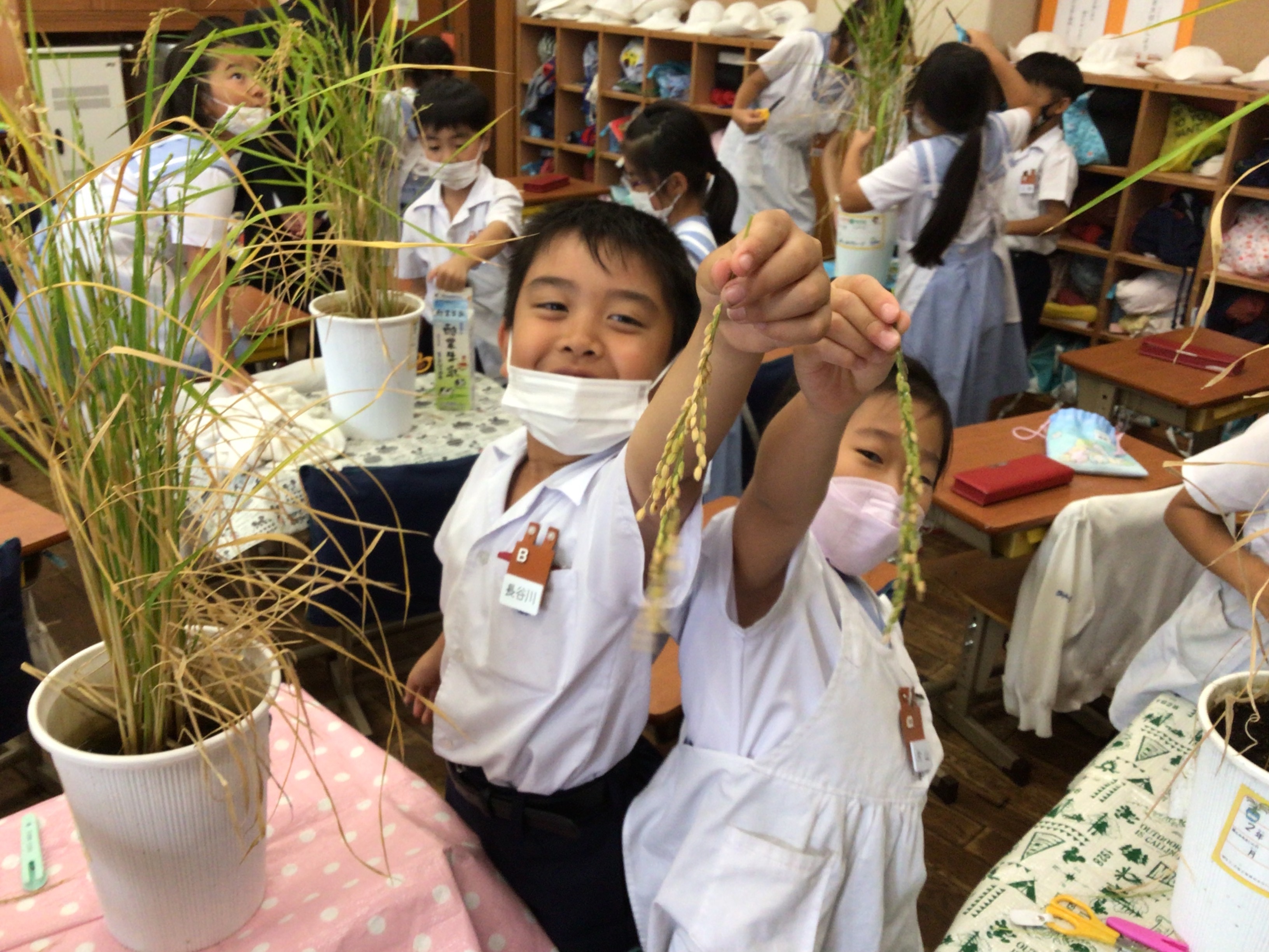 あんなに小さかった粒から芽が出て、どんどん葉が伸び、背が高くなり、穂をつけて、ついにお米ができました。
