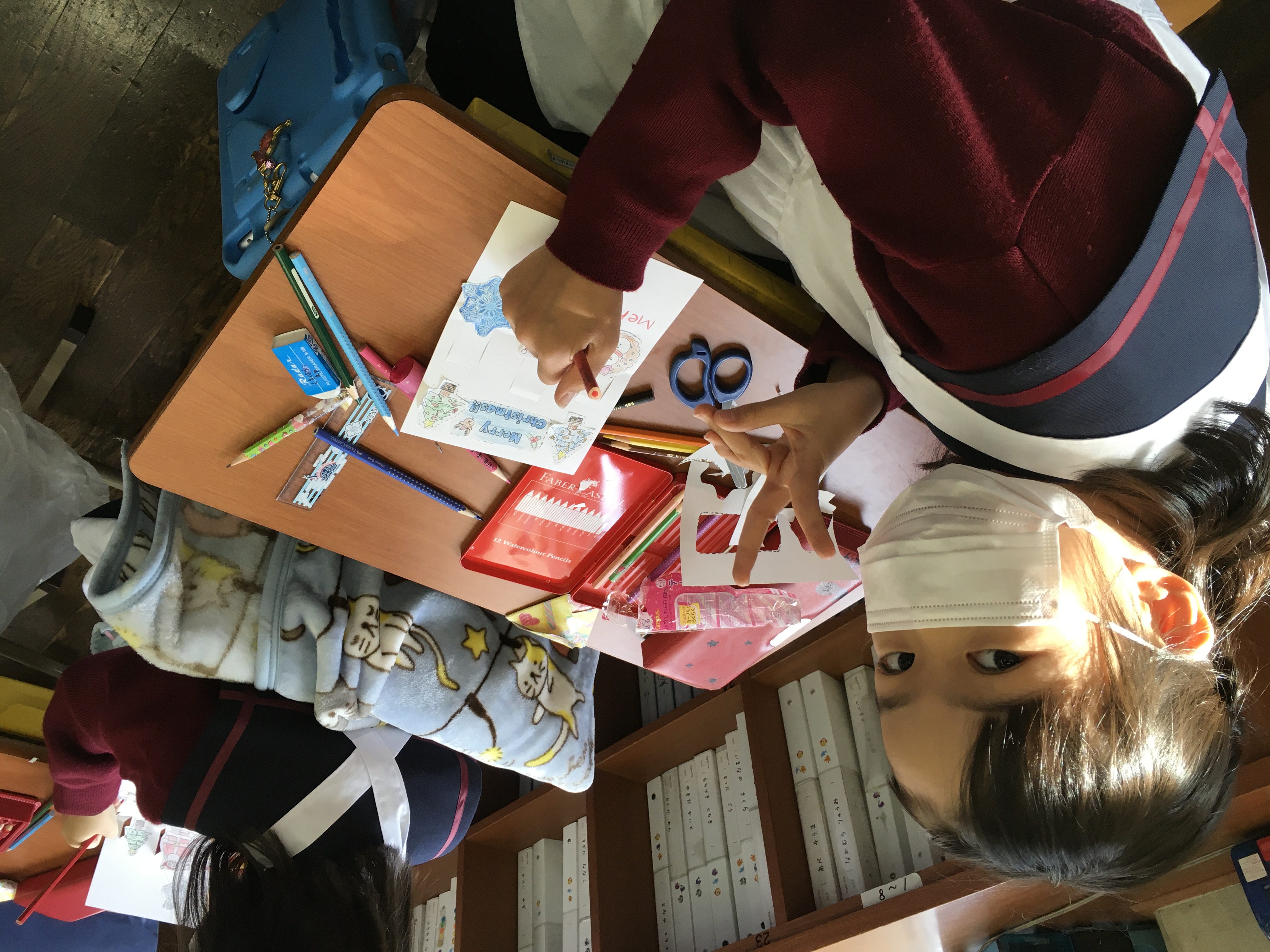 1年生から4年生では、毎年2学期最後の英語の授業内で、クリスマスカード作りをしています。