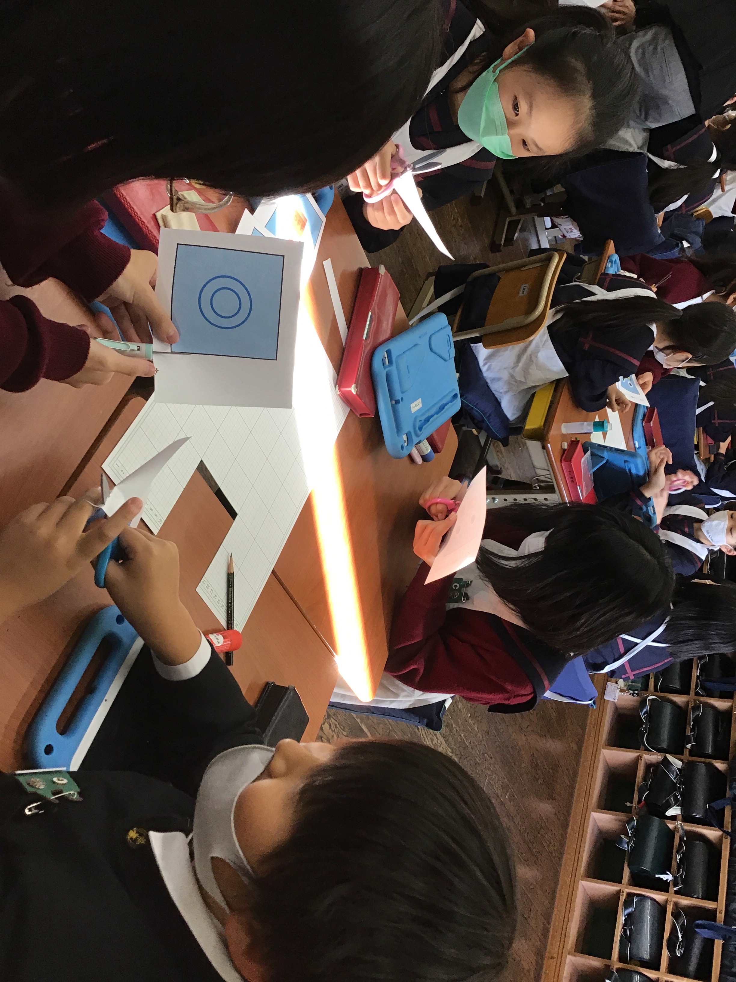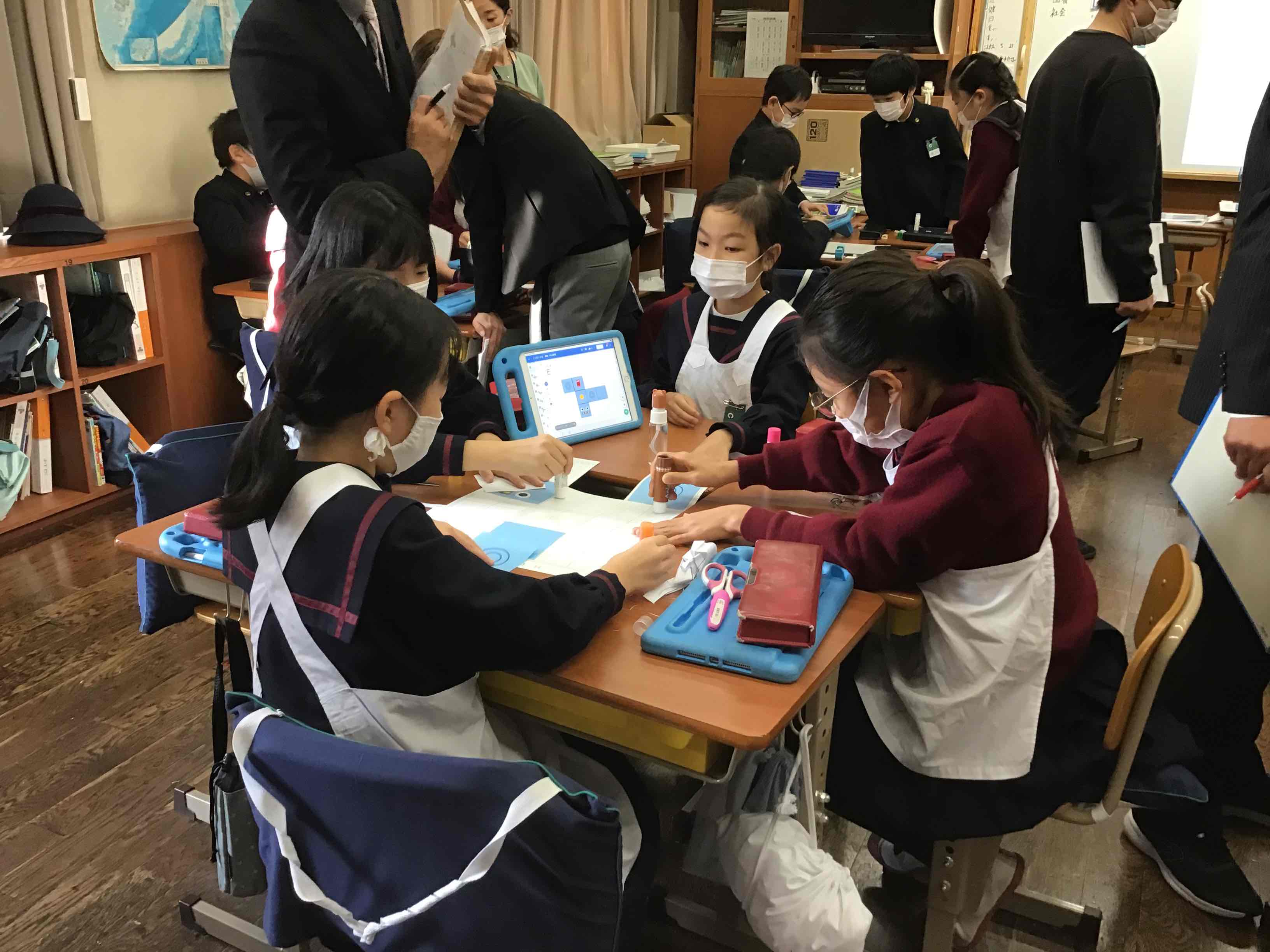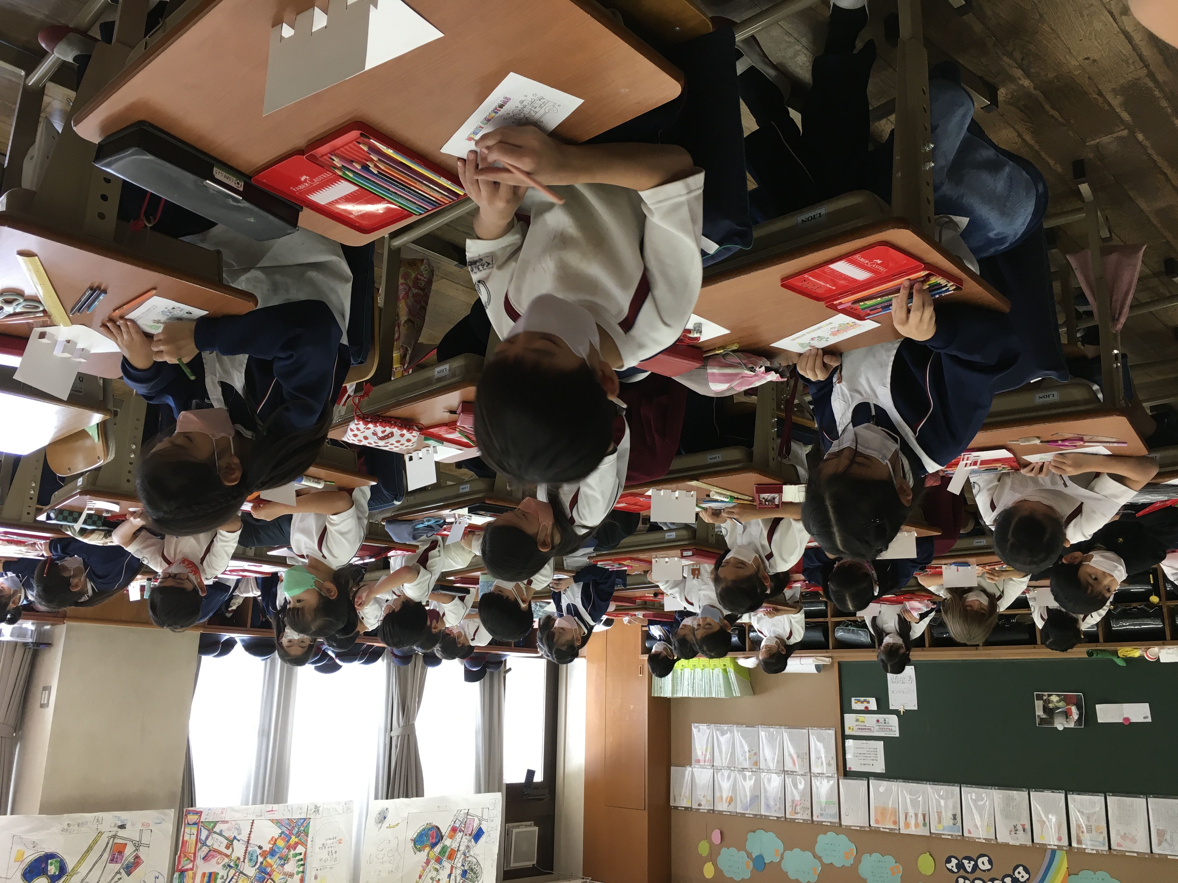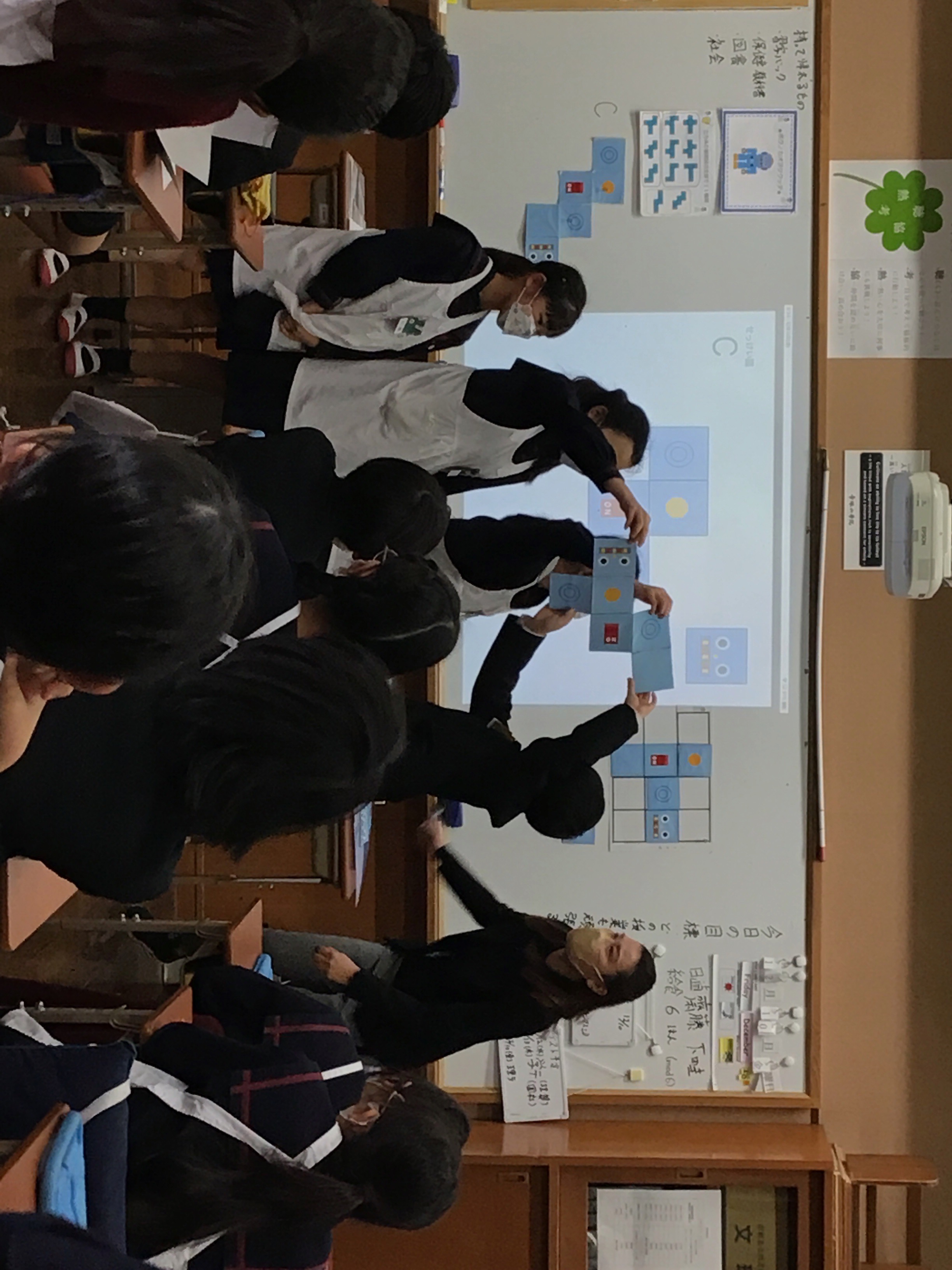 12月10日(金)4年C組にて、算数「直方体と立方体」の単元で算数専科教員と担任によるTTの研究授業を行いました。限られた材料でロボットの頭の展開図を作るという課題に取り組みました。