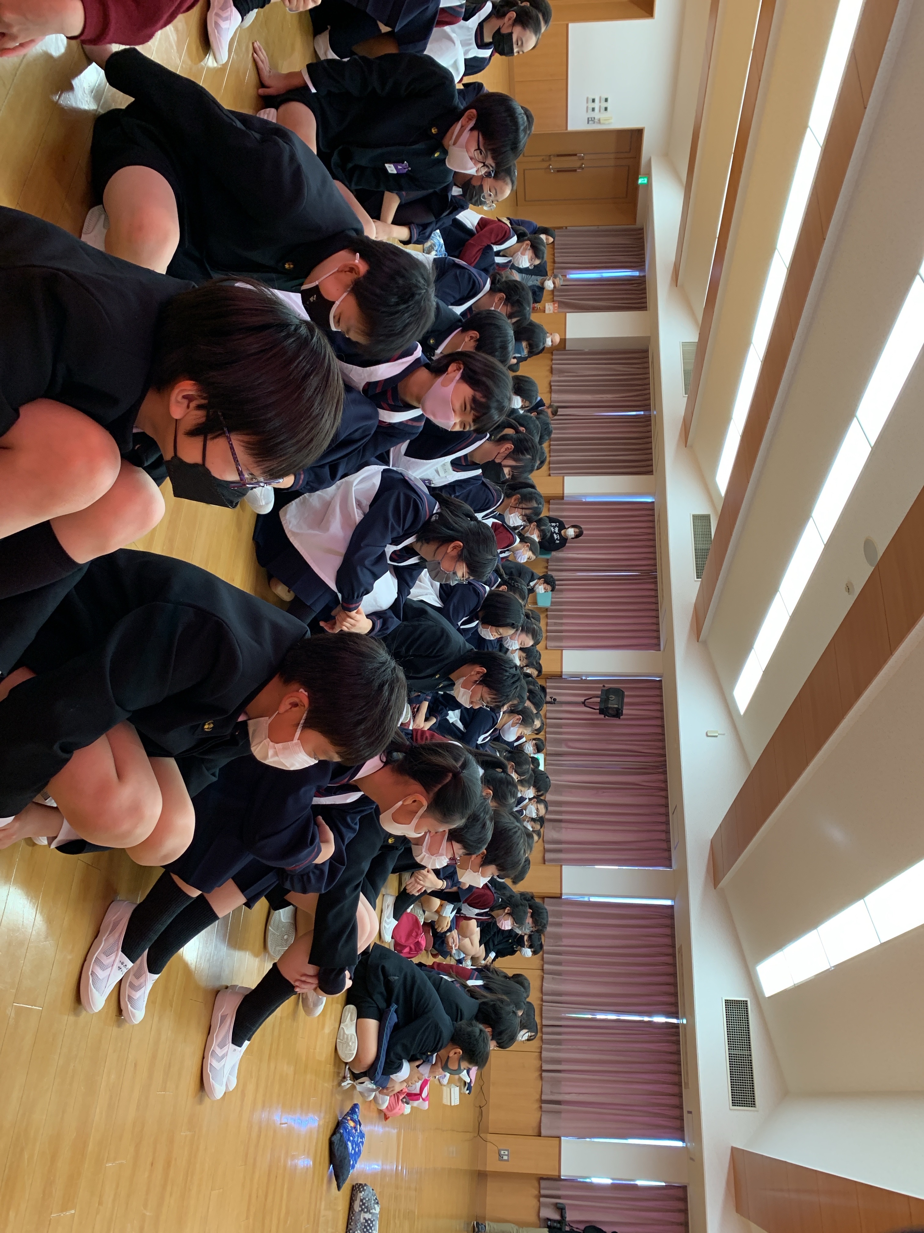 校長先生から二学期の学校生活の振り返りのお話があった後、生徒指導の先生より、冬休みの過ごし方についての説明がありました。
