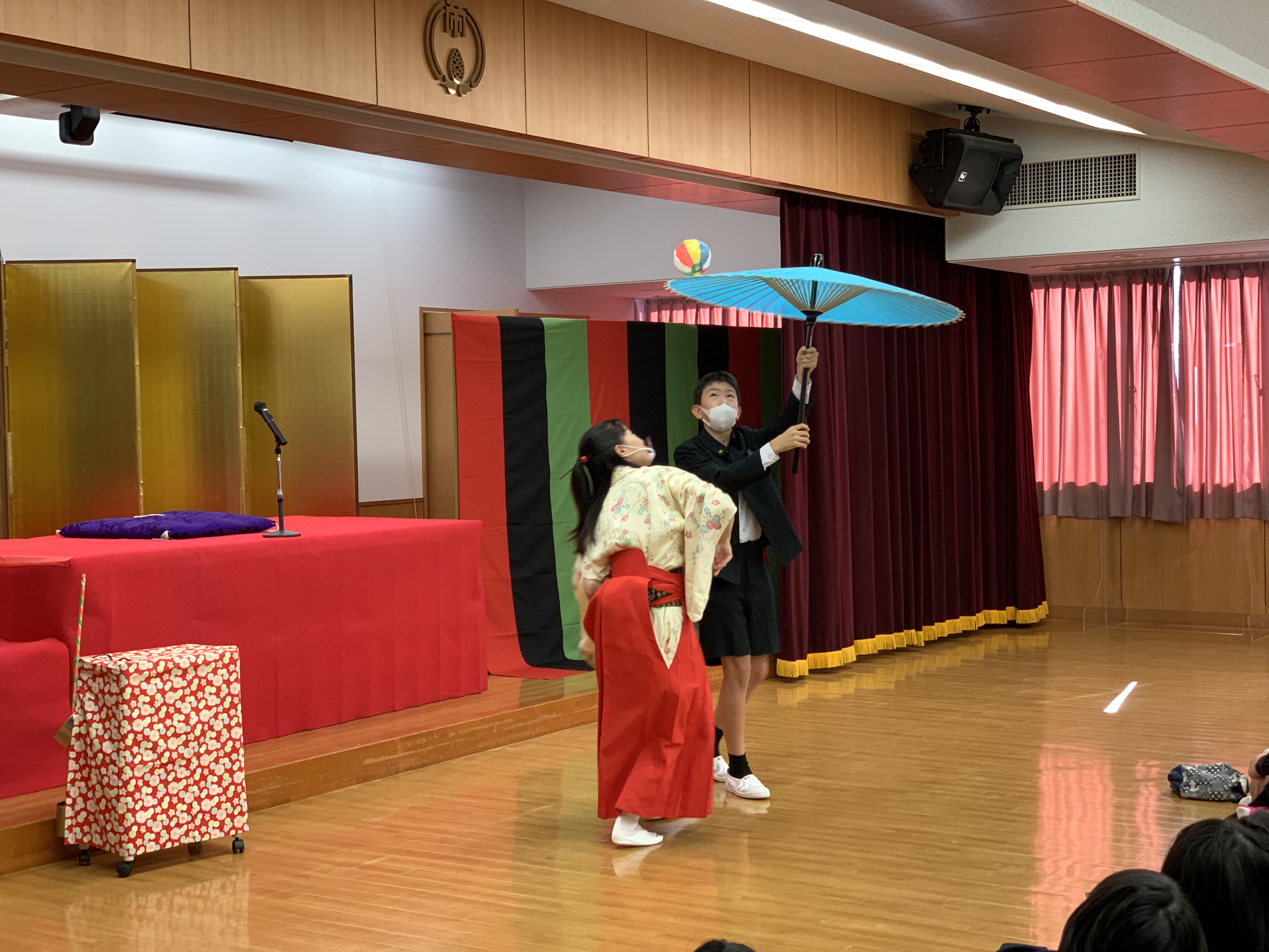 また、今回は初めての取り組みとして、児童が事前に練習してから披露する「英語小噺コンテスト」も行いました。参加した児童たちは緊張しながらも堂々と落語を演じ、みんなを盛り上げてくれました。