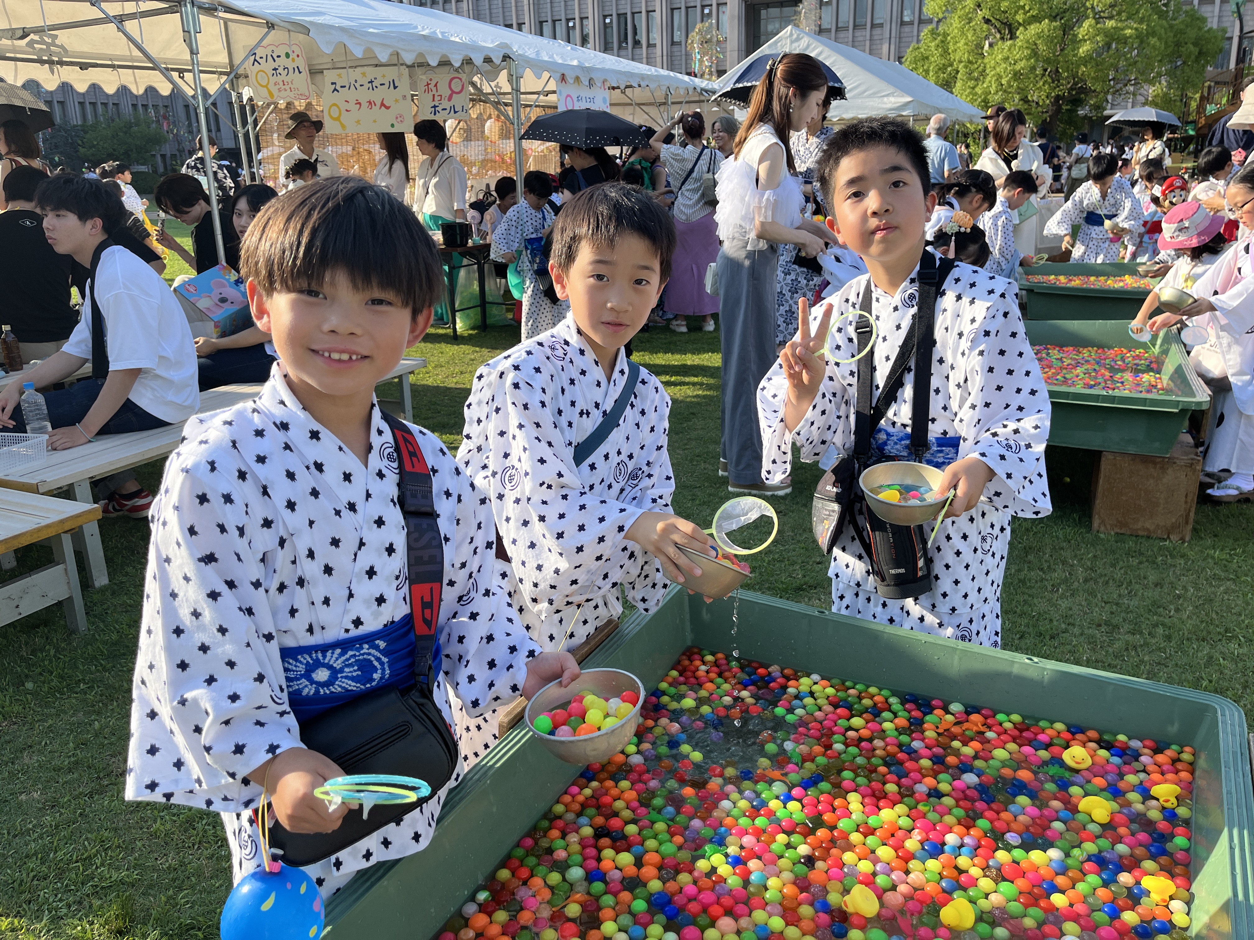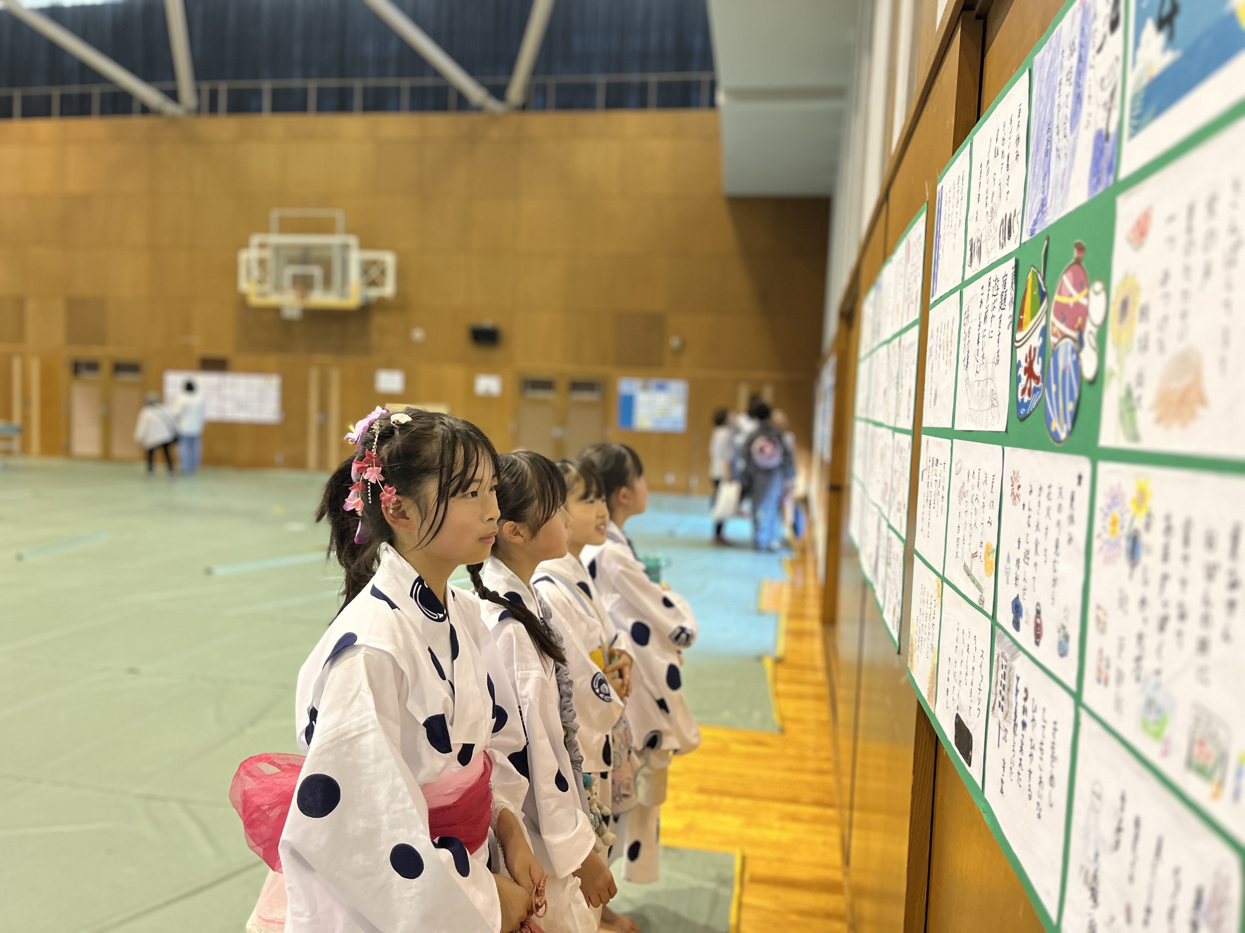 アリーナには、全児童による七夕や夏をテーマにした詩が掲示され、来場された皆さまにご覧いただきました。金魚すくいやヨーヨー釣りなどの出店もにぎわい、子どもたちは笑顔いっぱいで、夏の楽しい思い出をつくることができました。